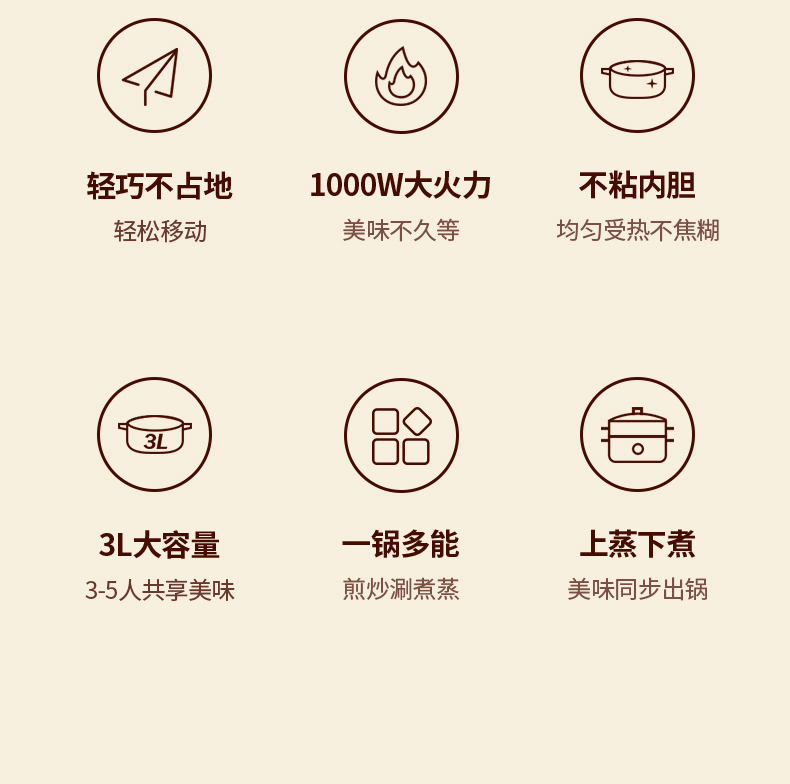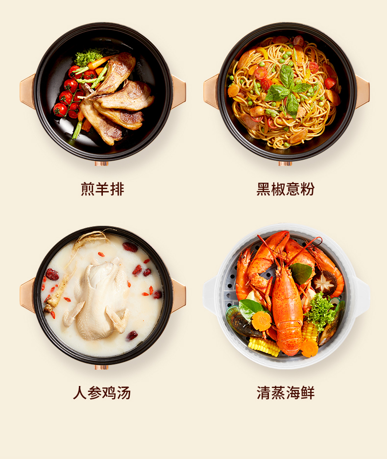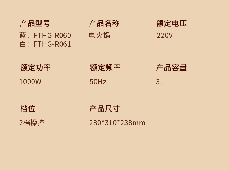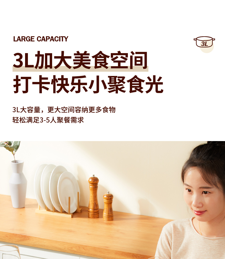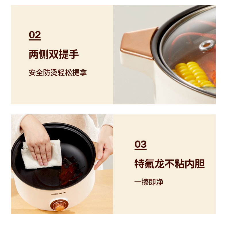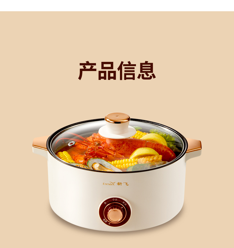 新飞(Frestec) 3L电煮锅电火锅1000W电锅一体多功能锅FTHG-R061(单位:台) 白色