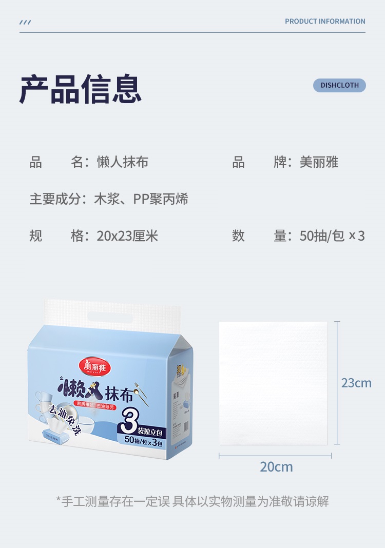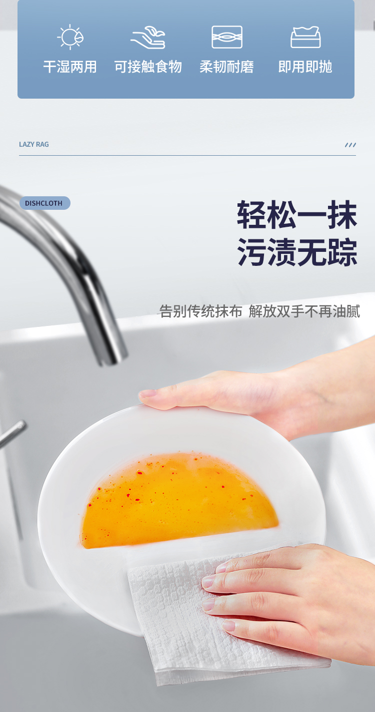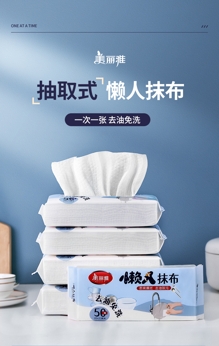 美丽雅抹布洗碗布懒人抹布一次性抹布150张抽取式免洗去油污厨房 白色