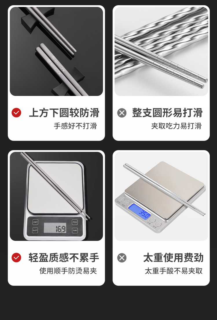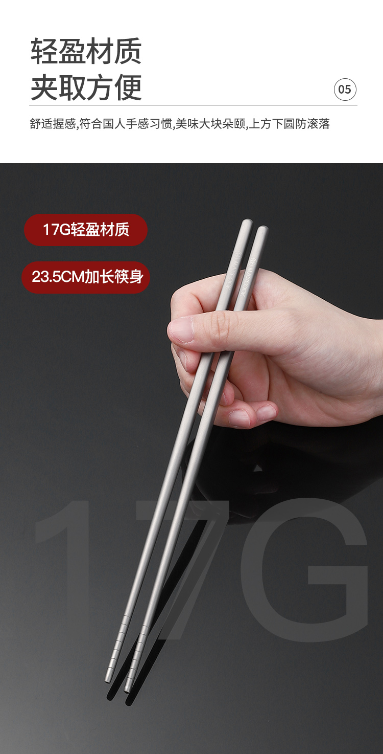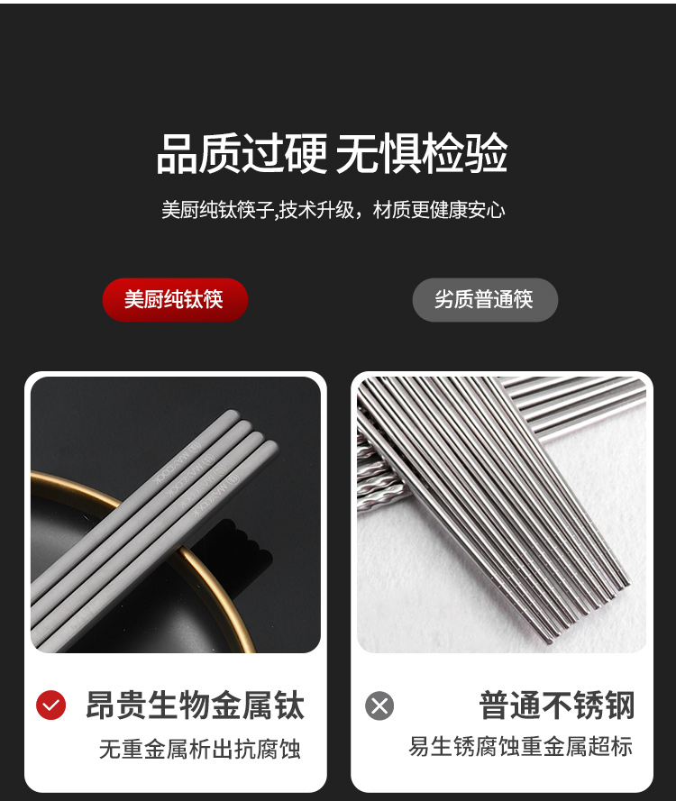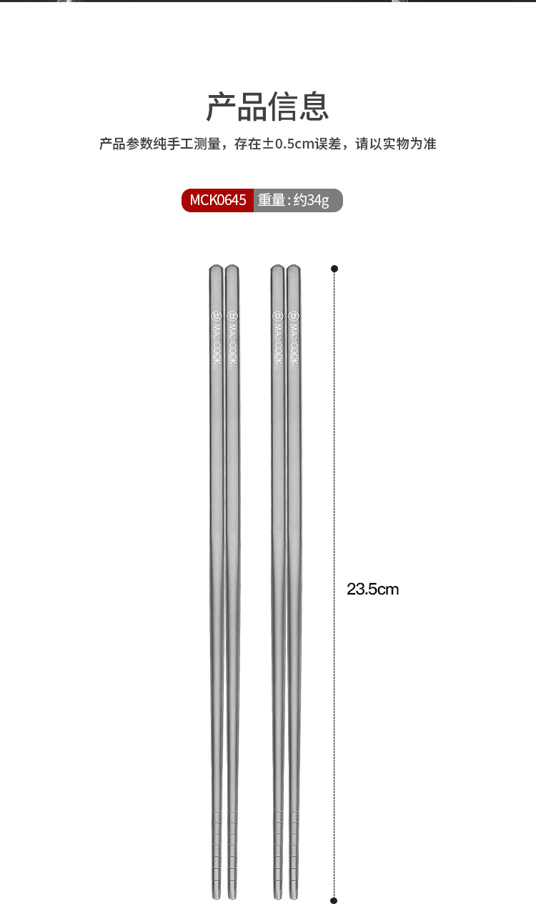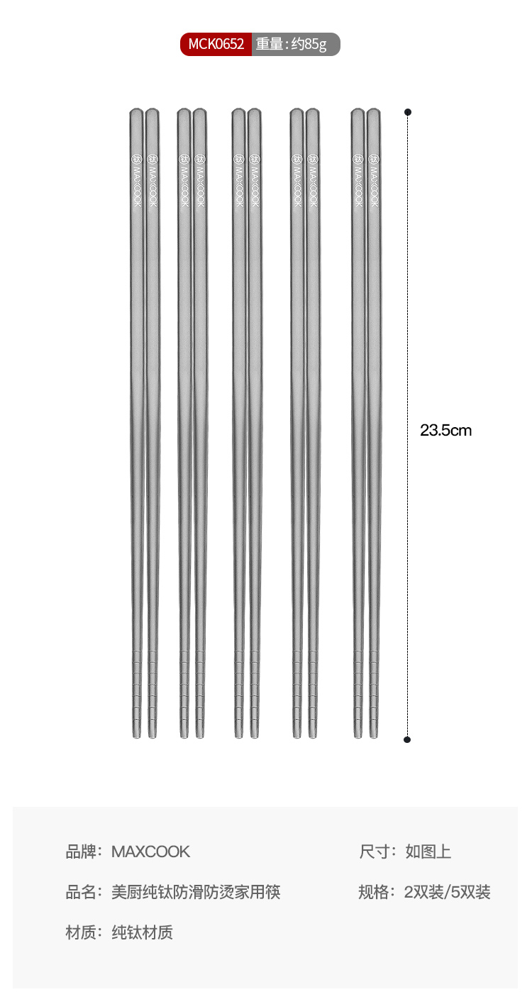 美厨(MAXCOOK)纯钛筷子 抑菌家用筷 中空隔热防烫防滑筷子 5双装 MCK0652 拿铁色