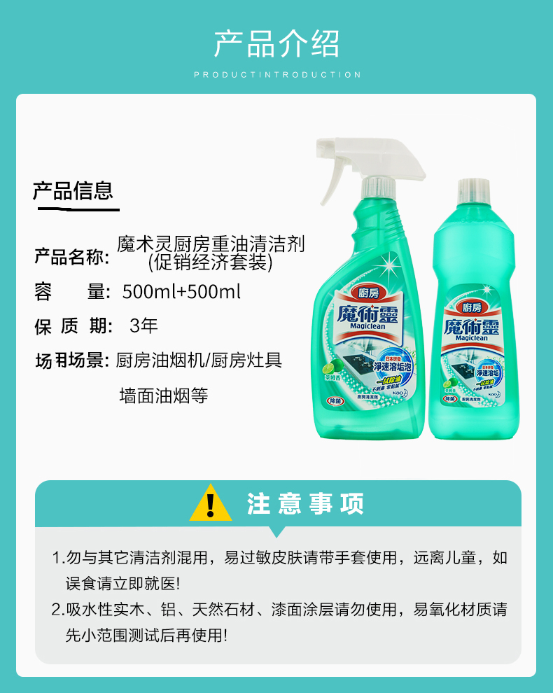 花王(KAO)魔术灵厨房清洁剂莱姆香500ml+补充装500ml 组 蓝色