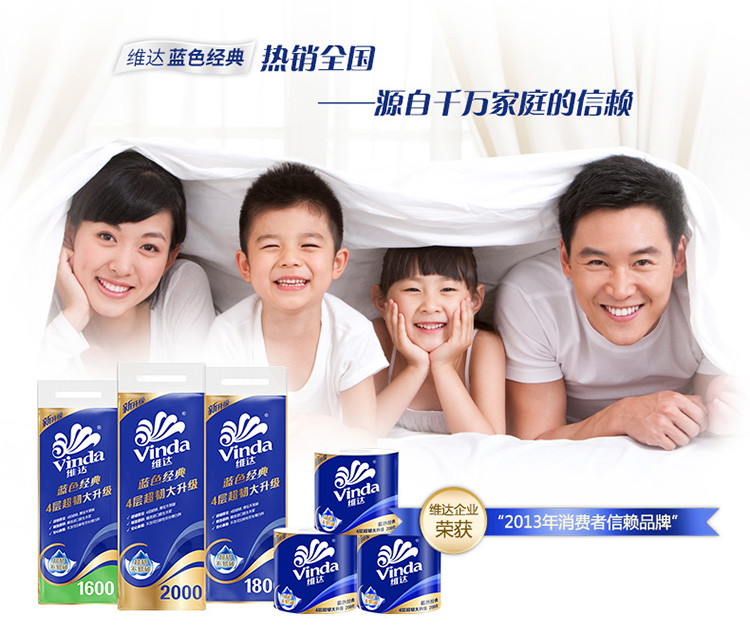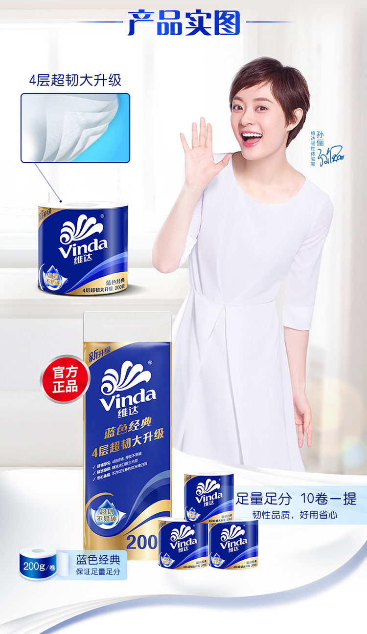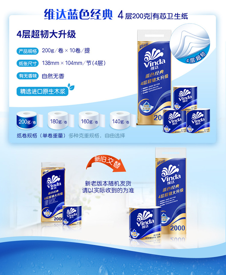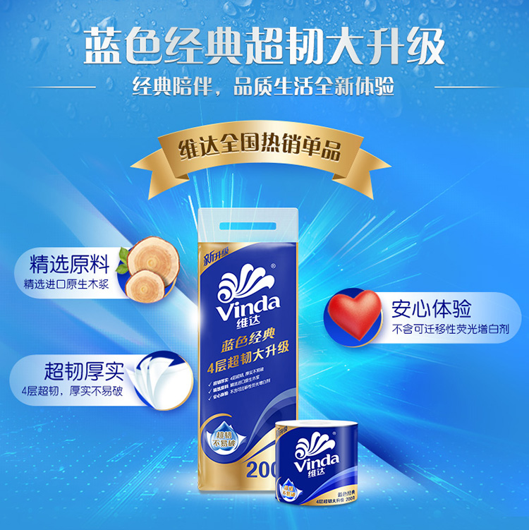 维达 蓝色经典卷纸4层200克×20卷 V4073-20E(单位:提) 蓝色