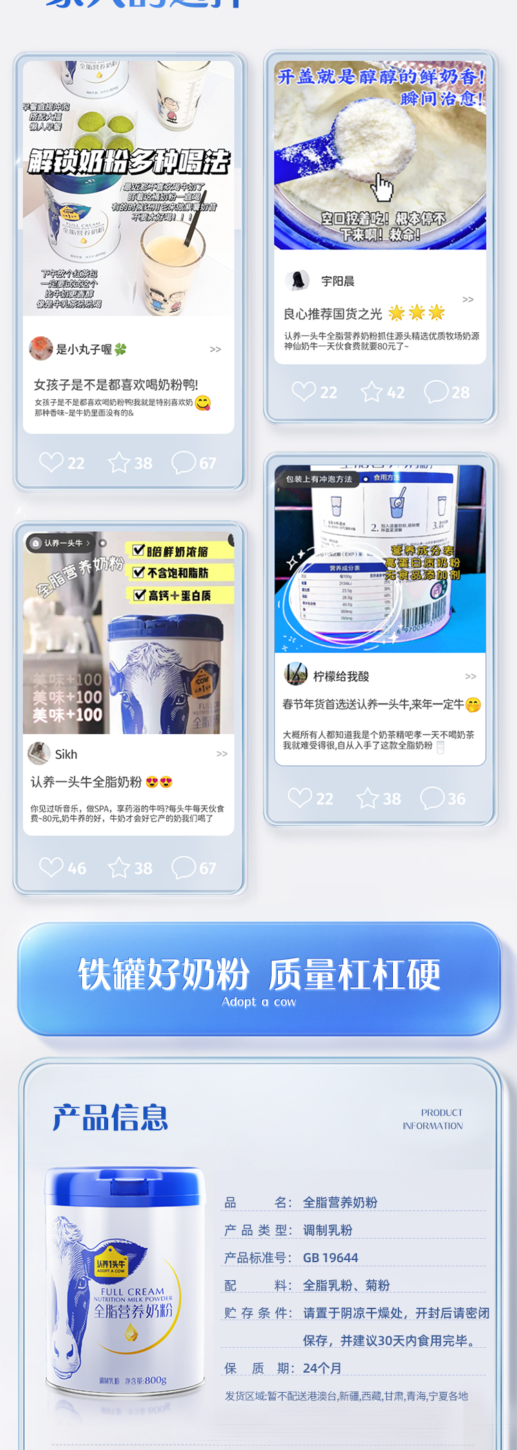 认养一头牛 全脂奶粉 800g/罐 图片色