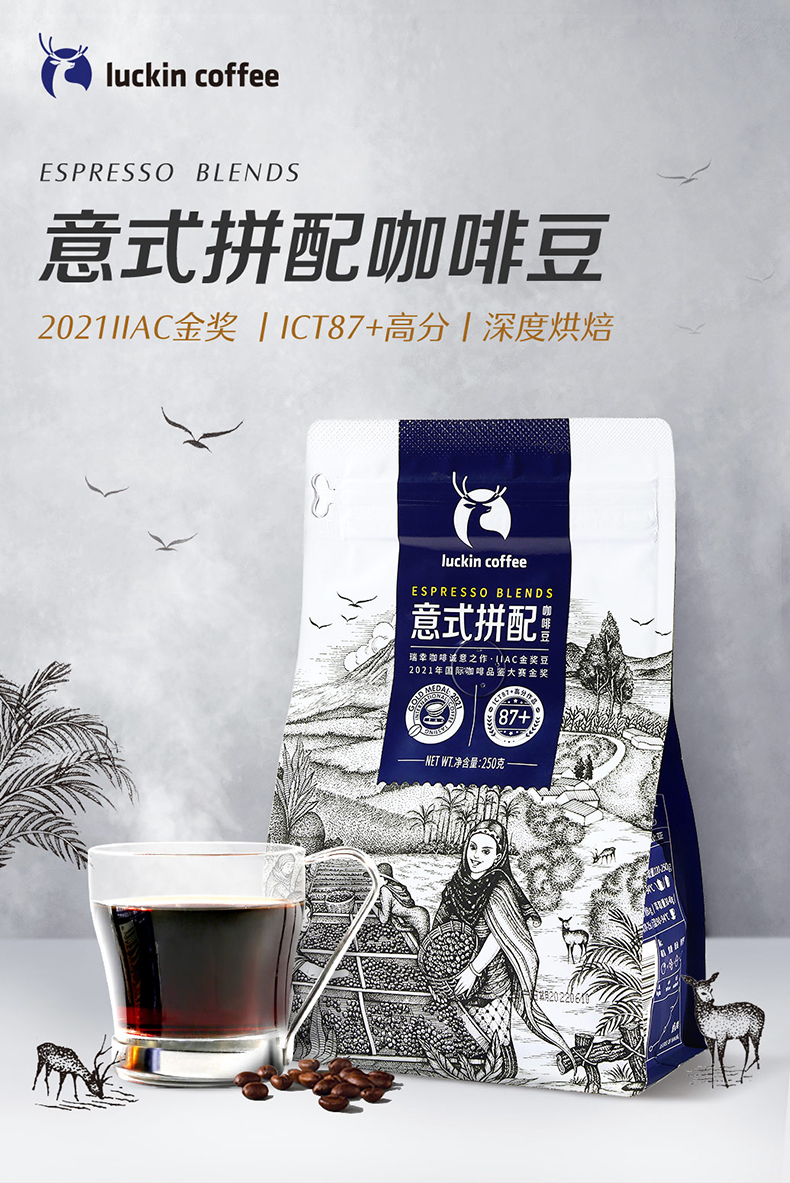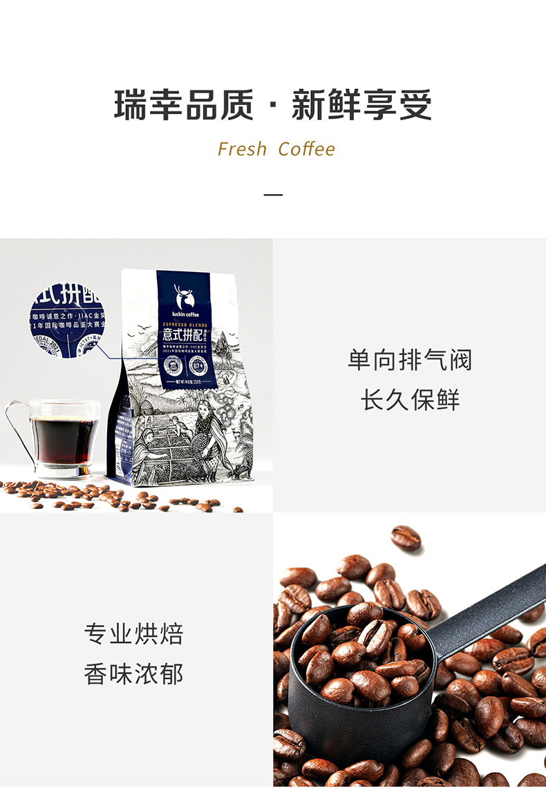 瑞幸咖啡(luckincoffee) 精冲意式拼配阿拉比卡咖啡豆250g/袋 白色