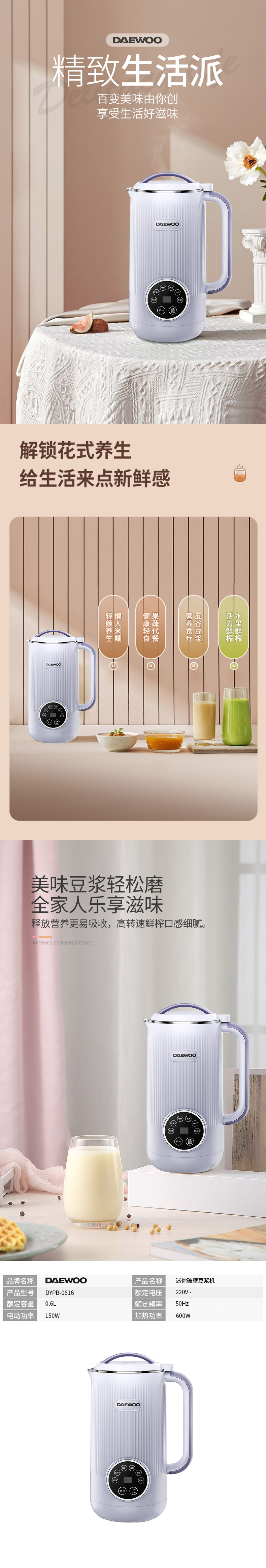 大宇(DAEWOO)破壁机 600ml DYPB-0616(单位:台) 紫色
