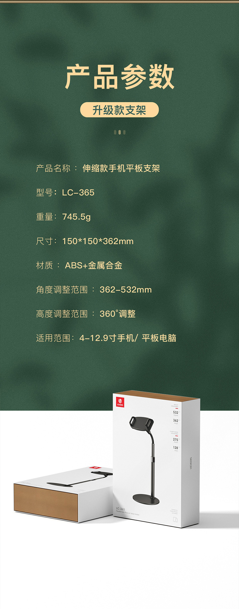 领臣 伸缩款手机平板支架-LC-365 个 黑色