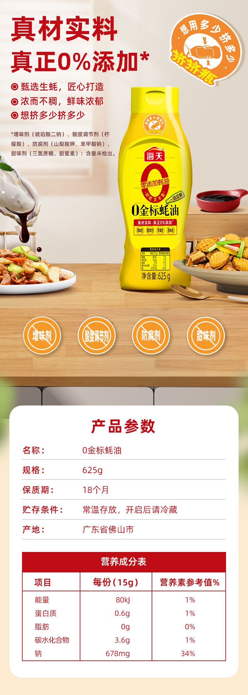 海天0金标蚝油625g*2瓶(中华老字号) 黄色