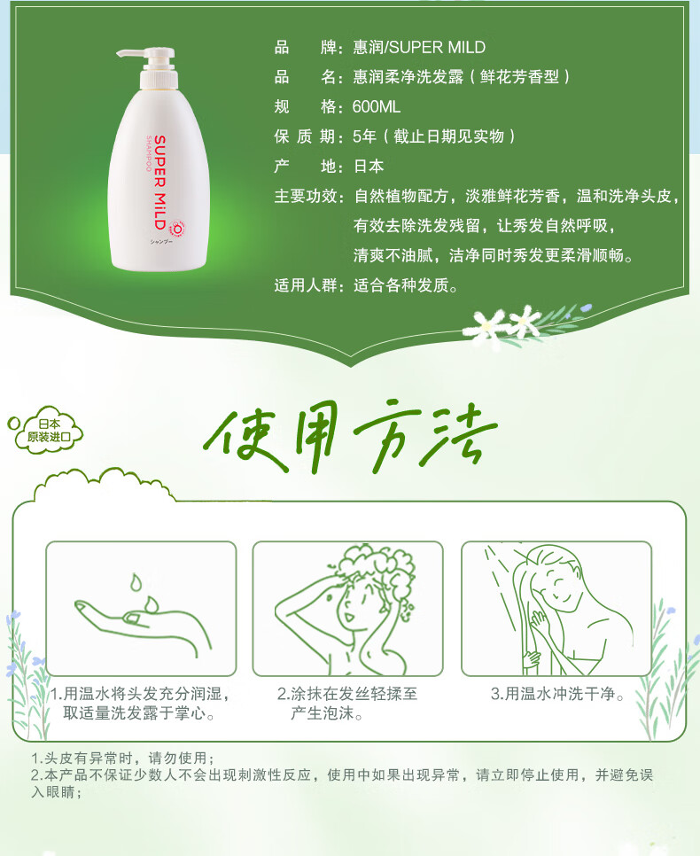 资生堂惠润柔净洗发露(鲜花芳香) 600ml 白色