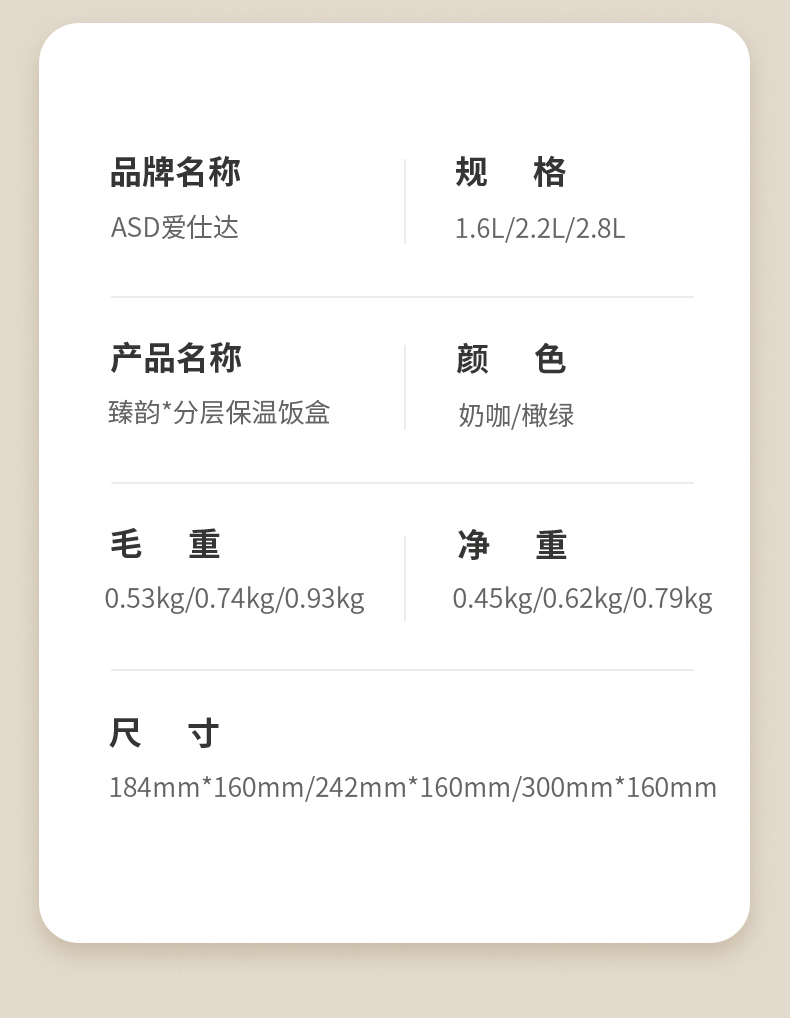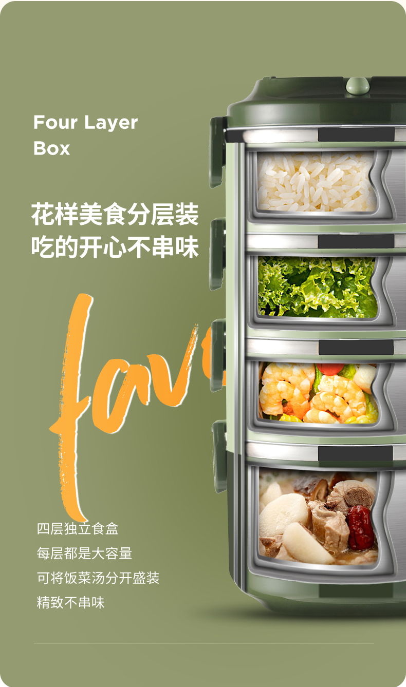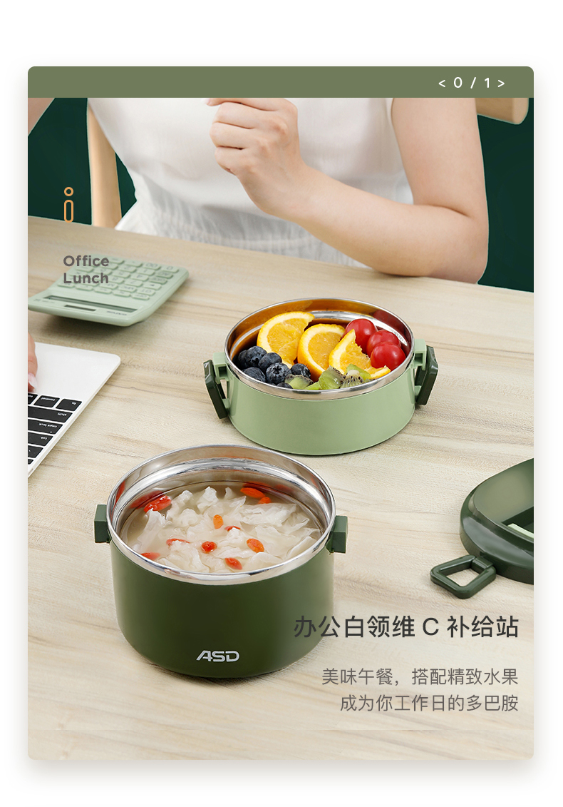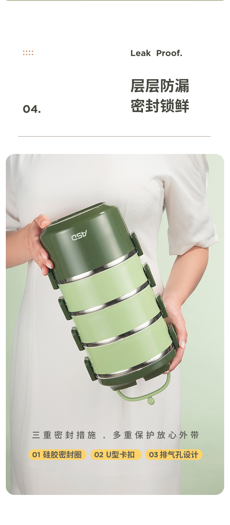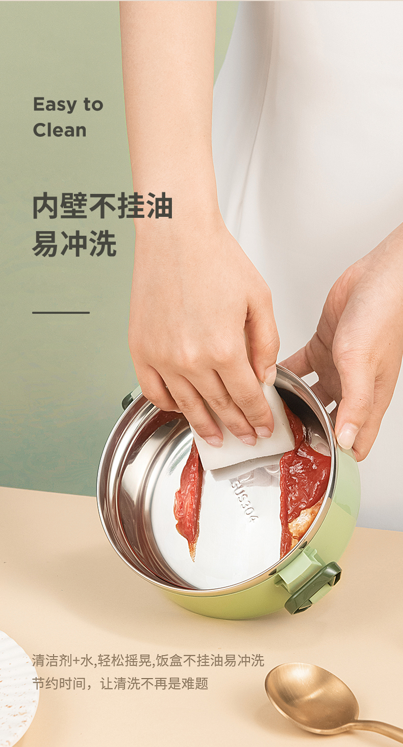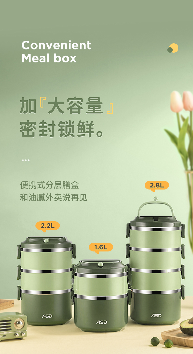 爱仕达臻韵系列分层保温饭盒1.6L RWS16H4WG-G 绿色