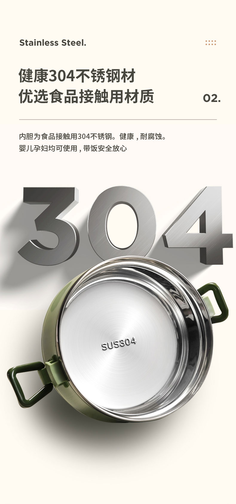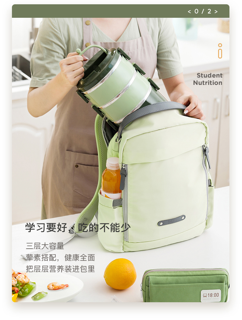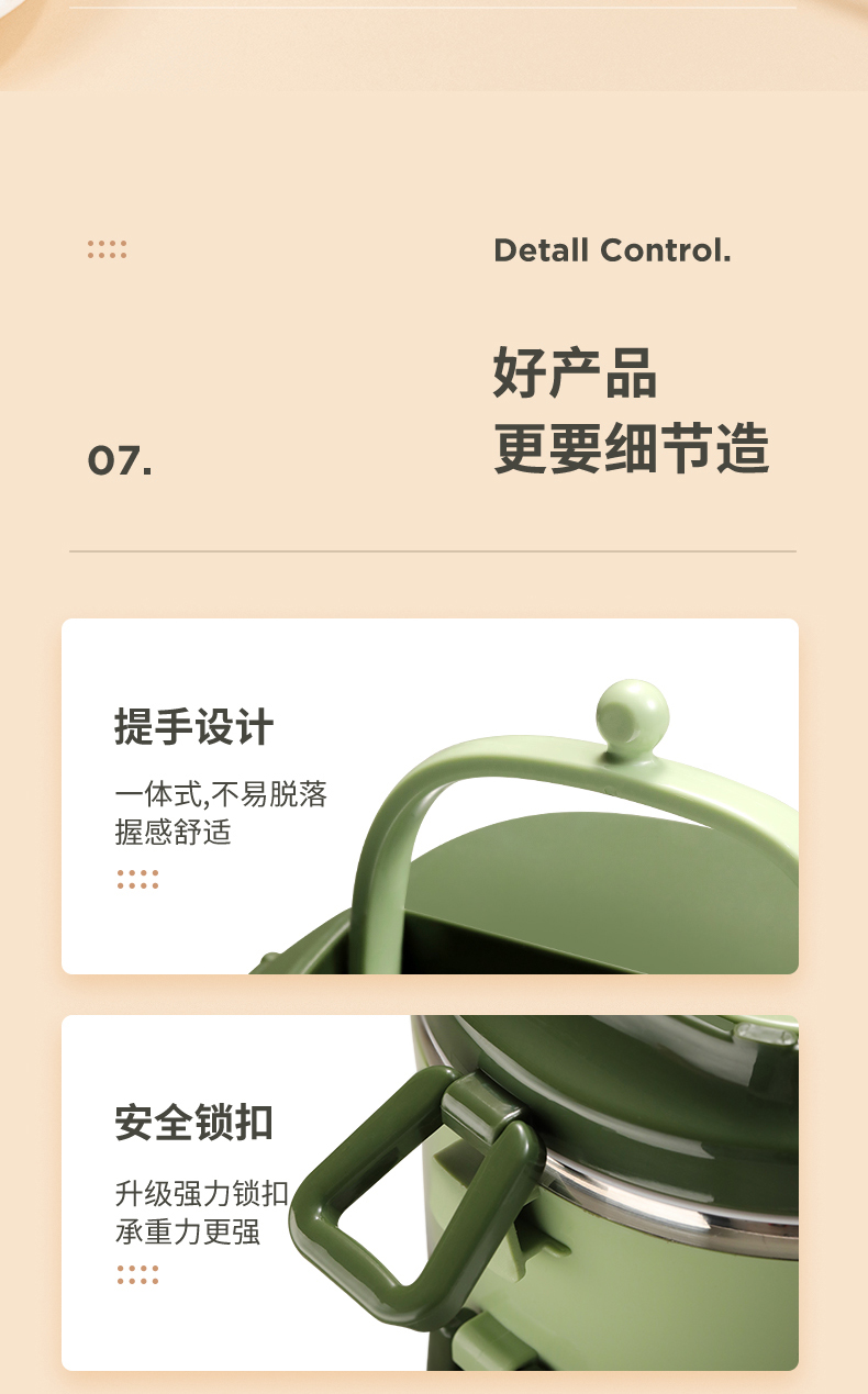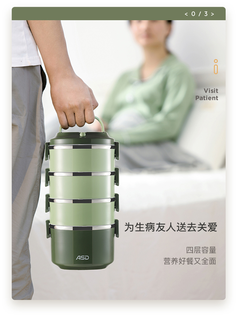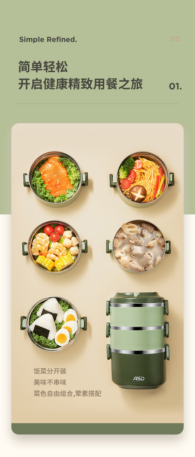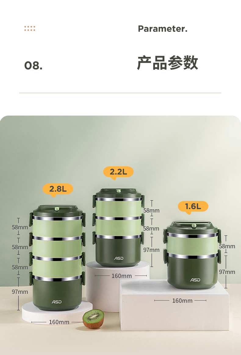 爱仕达臻韵系列分层保温饭盒1.6L RWS16H4WG-G 绿色