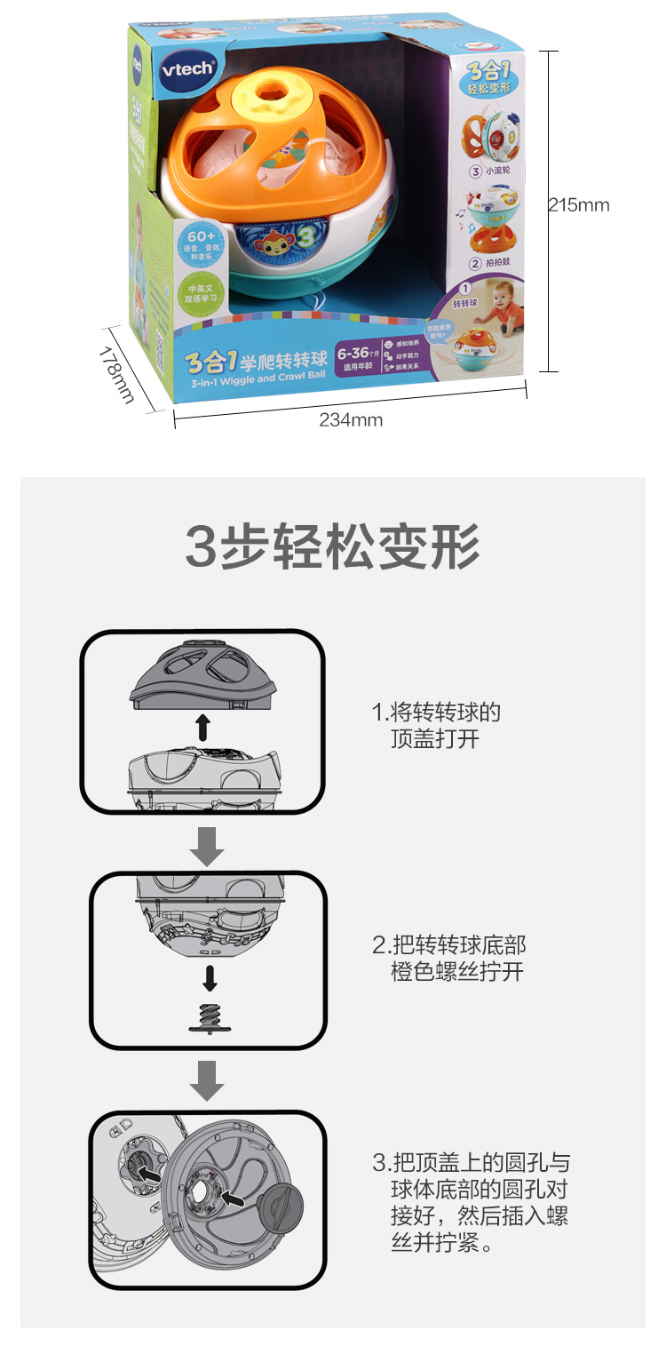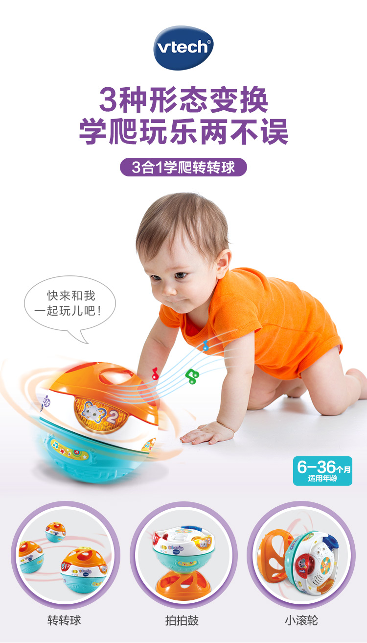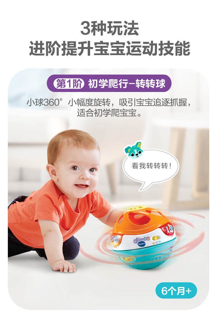 伟易达(Vtech)3合1转转球宝宝爬行玩具0-1岁婴儿爬行引导学爬神器 混色