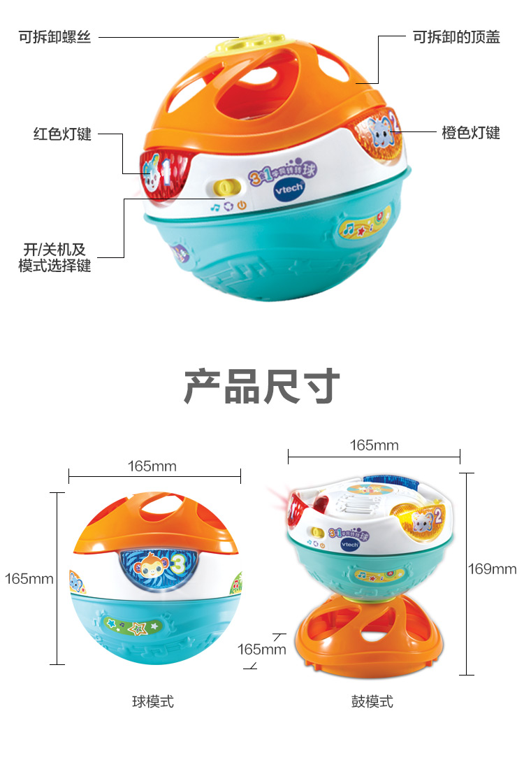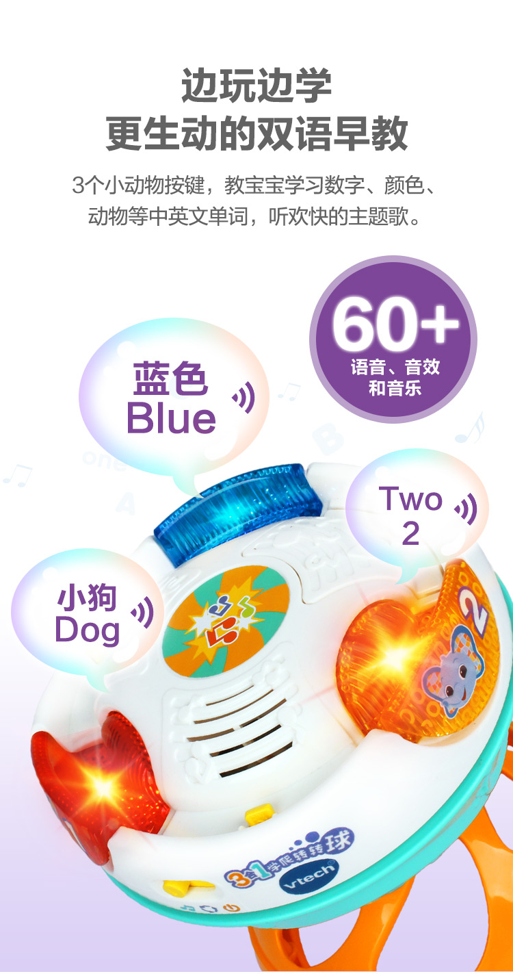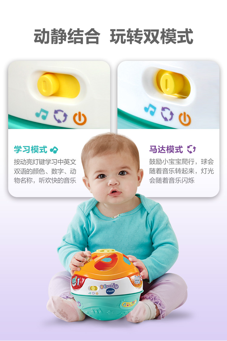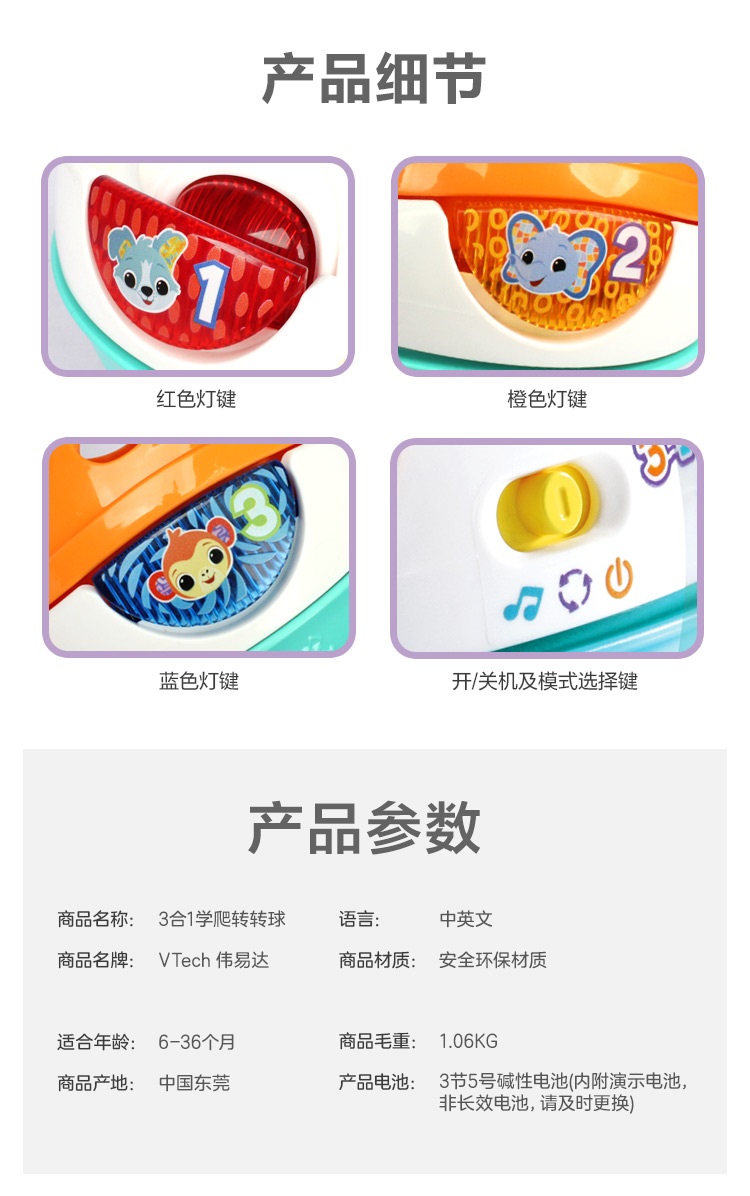 伟易达(Vtech)3合1转转球宝宝爬行玩具0-1岁婴儿爬行引导学爬神器 混色
