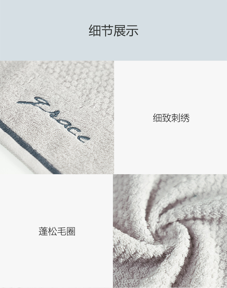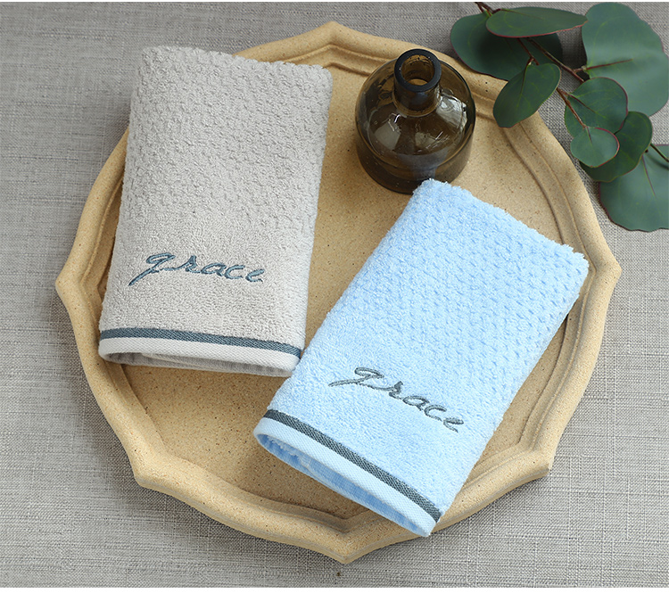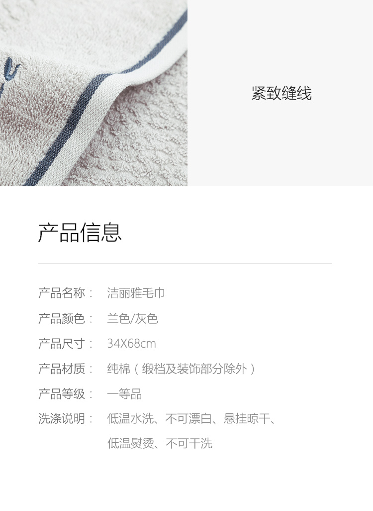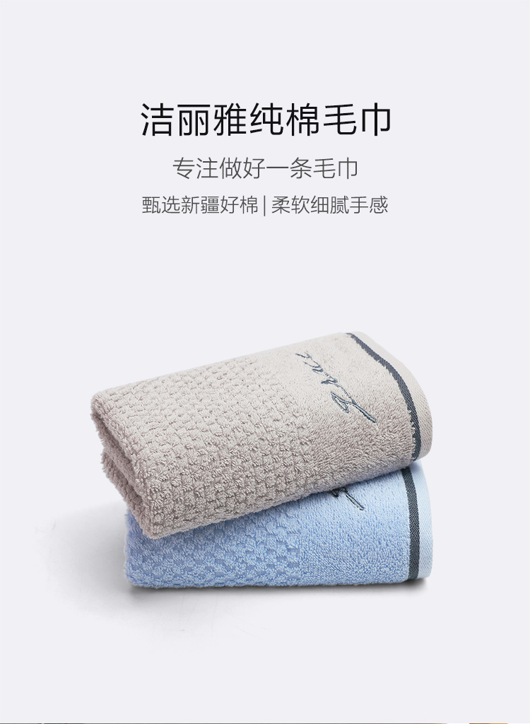 洁丽雅纯棉毛巾2条装 强吸水柔软简约面巾 7253A 蓝色、灰色