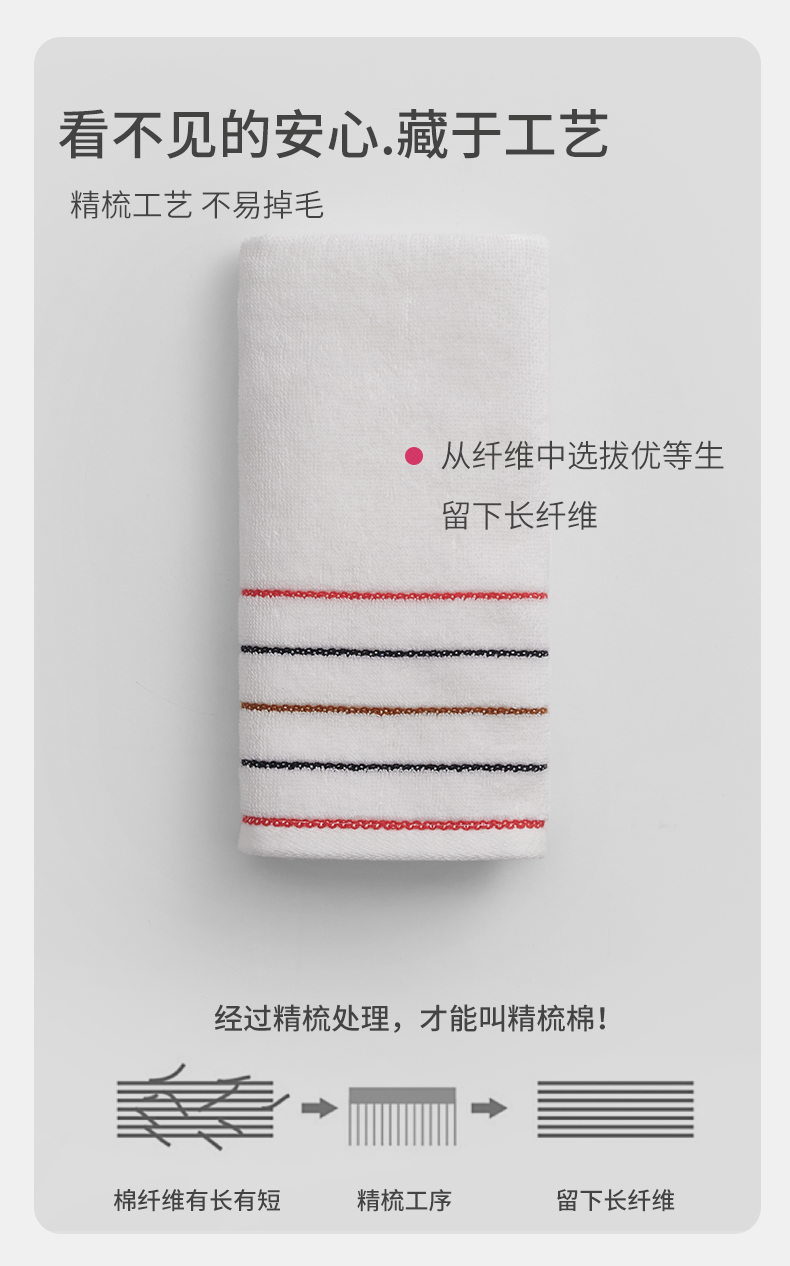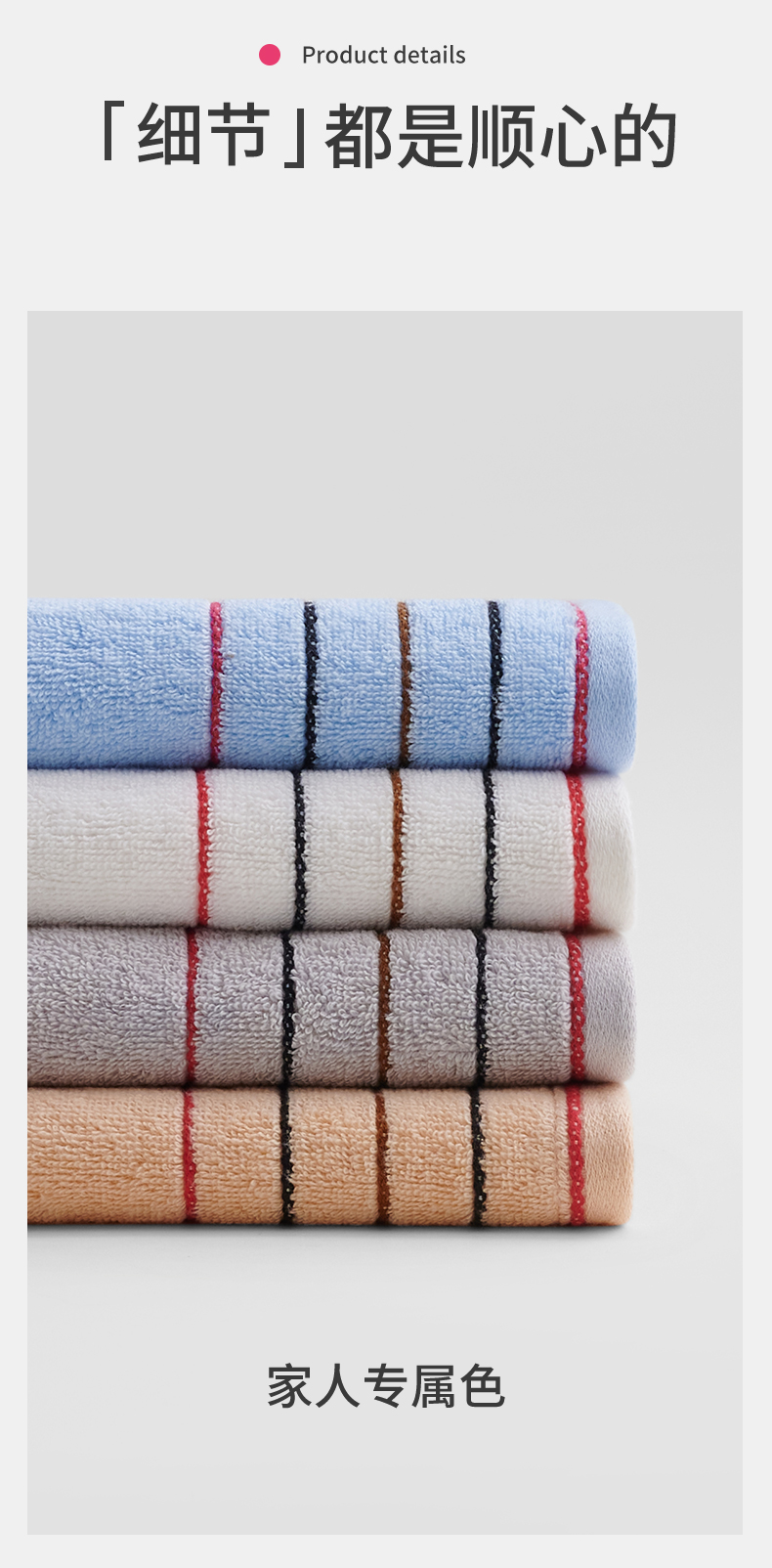 洁丽雅毛巾3条装 纯棉简约条纹舒适面巾 70*34cm/条 7050 混色