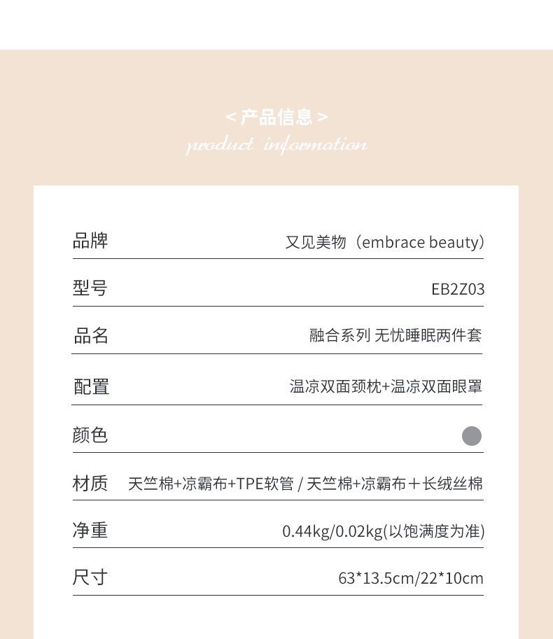 又见美物融合系列无忧睡眠二件套EB2Z03(单位:套) 浅灰色