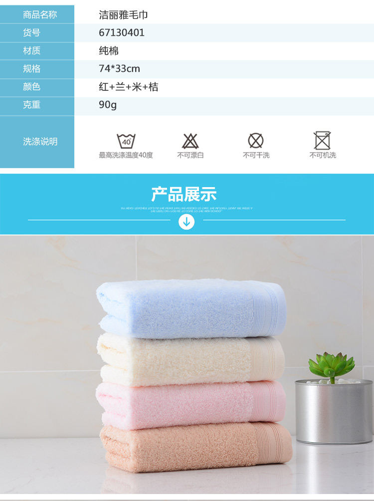 洁丽雅毛巾家纺4条装简爱纯棉舒适毛巾 6713 混色