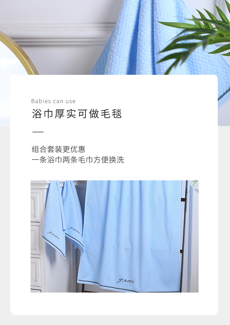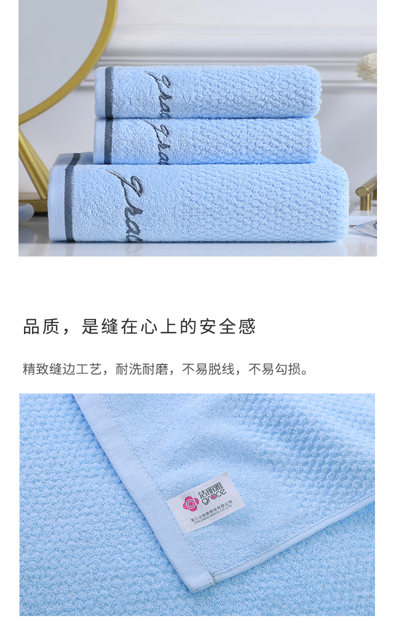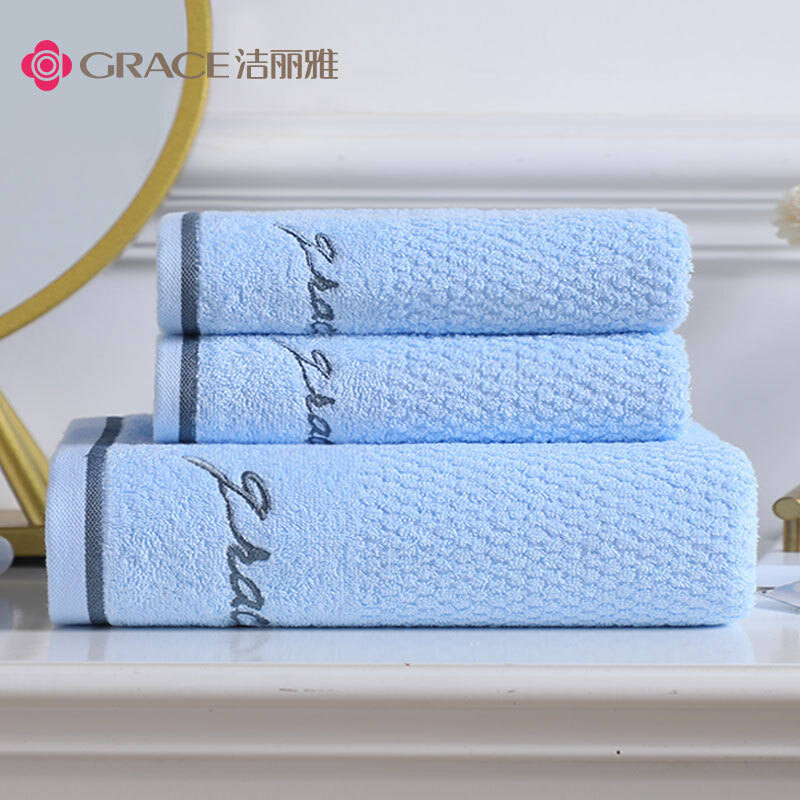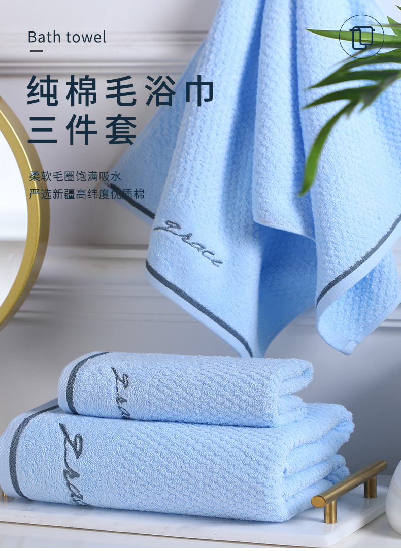 洁丽雅浴巾家用纯棉1浴巾+2毛巾组合装 蓝色