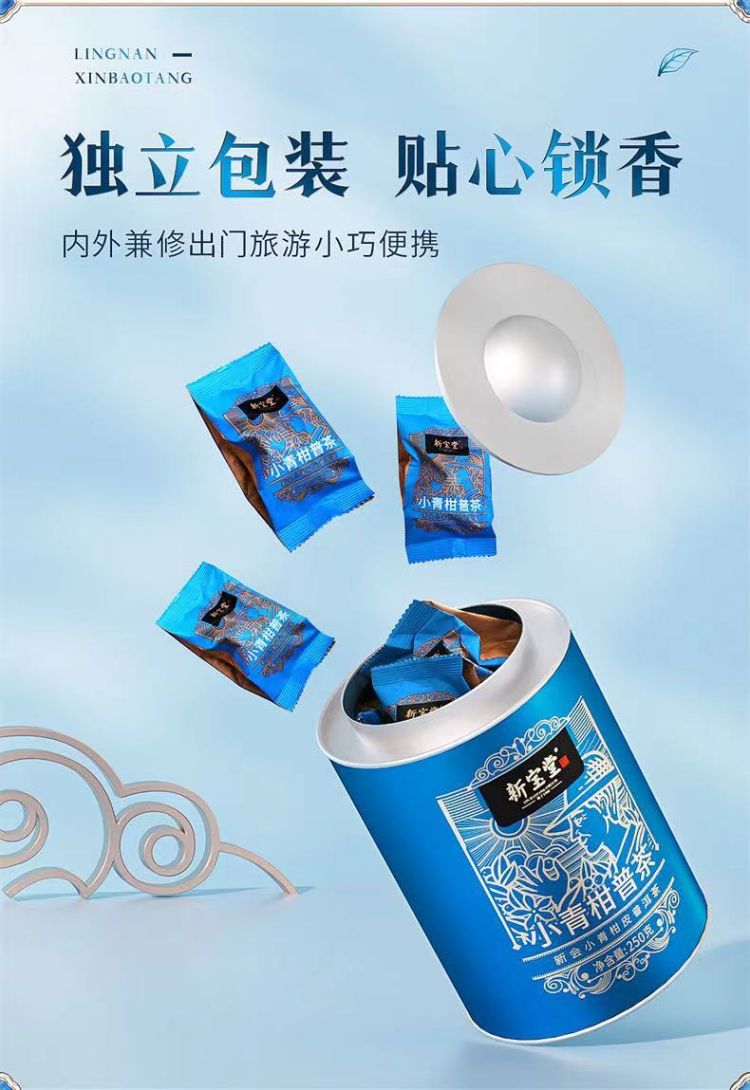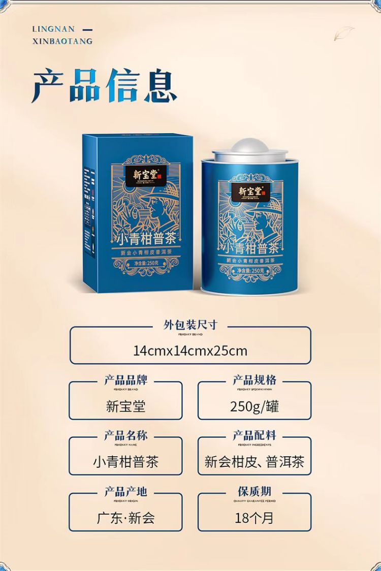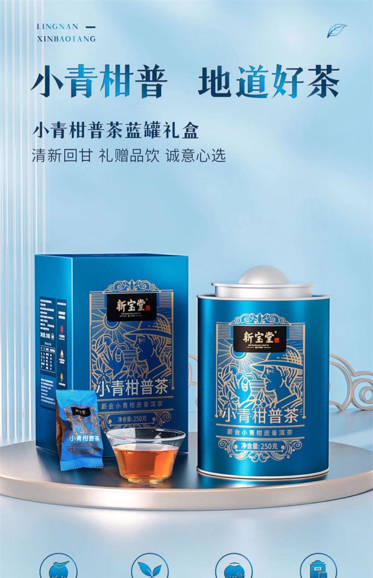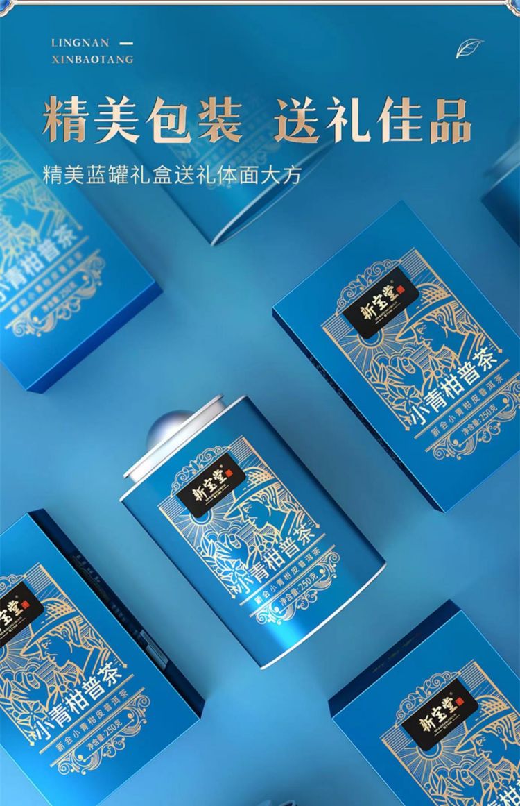 新宝堂 新会小青柑普茶250克 熟茶叶 礼盒蓝罐 自然色