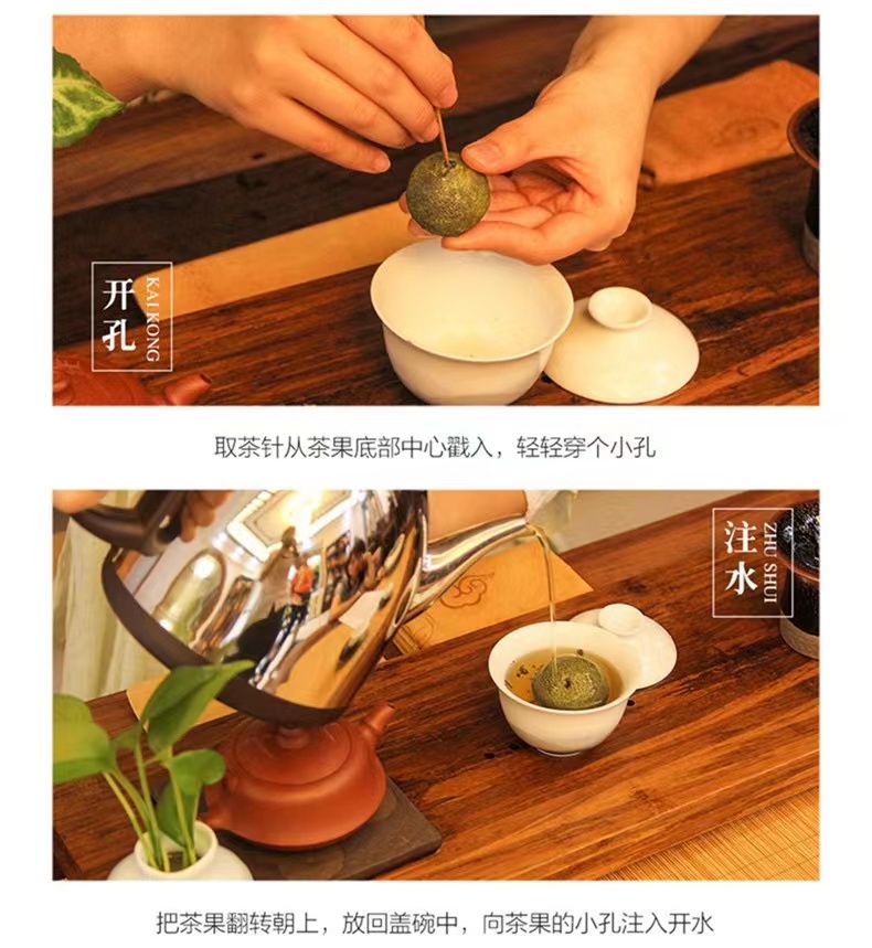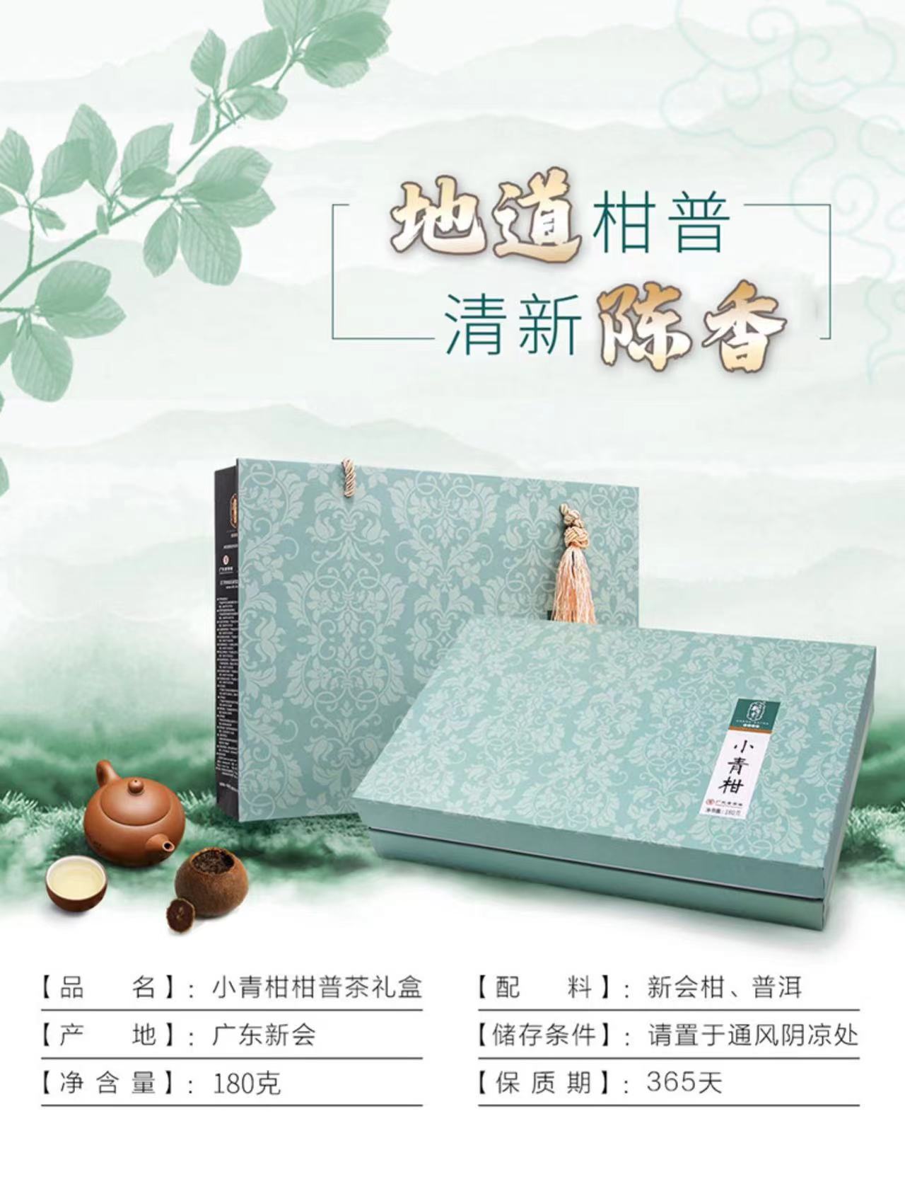 新宝堂小青柑柑普熟茶礼盒180克 自然色