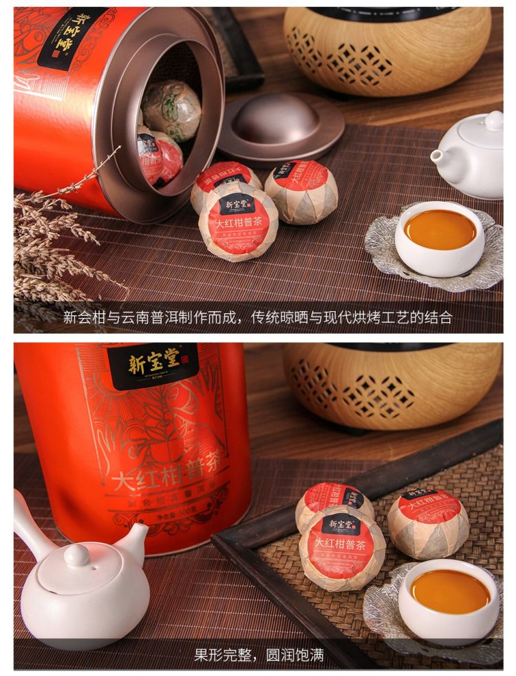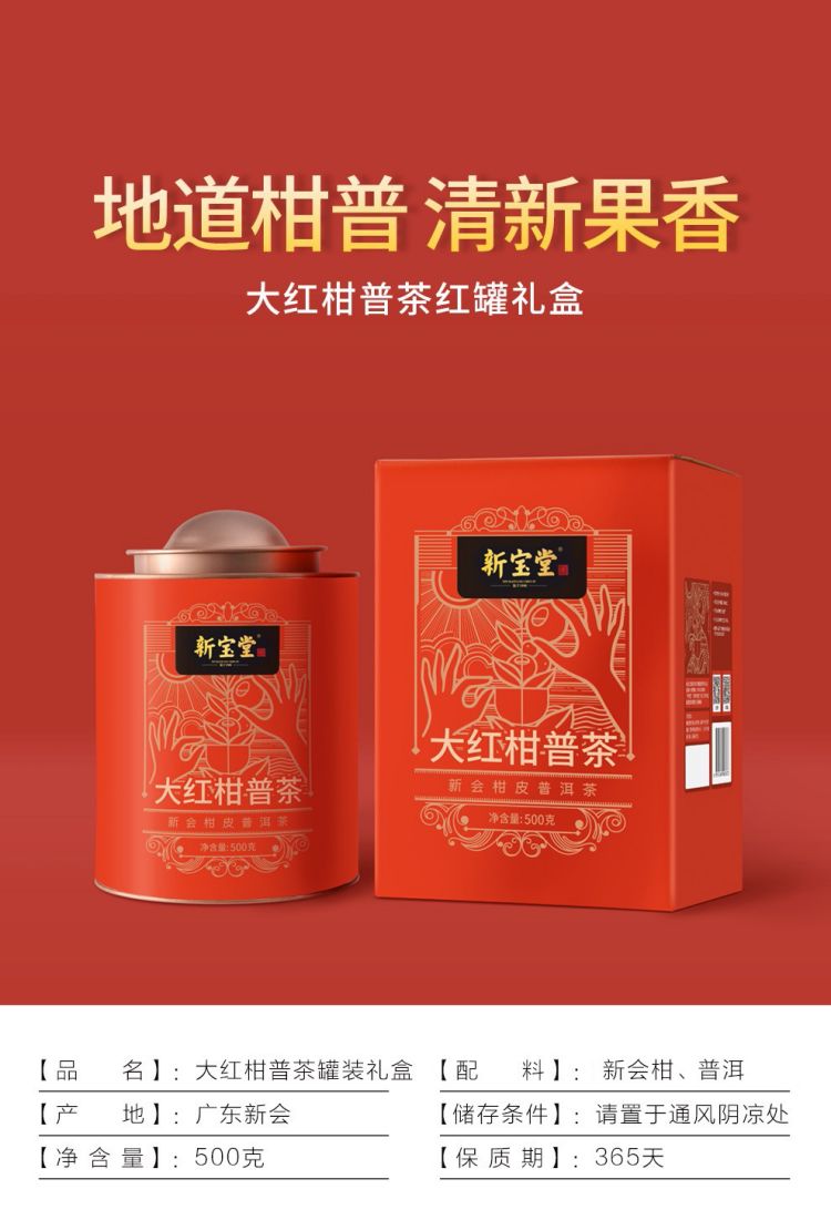 新宝堂 陈皮新会大红柑普茶熟茶叶红罐礼盒500克 自然色