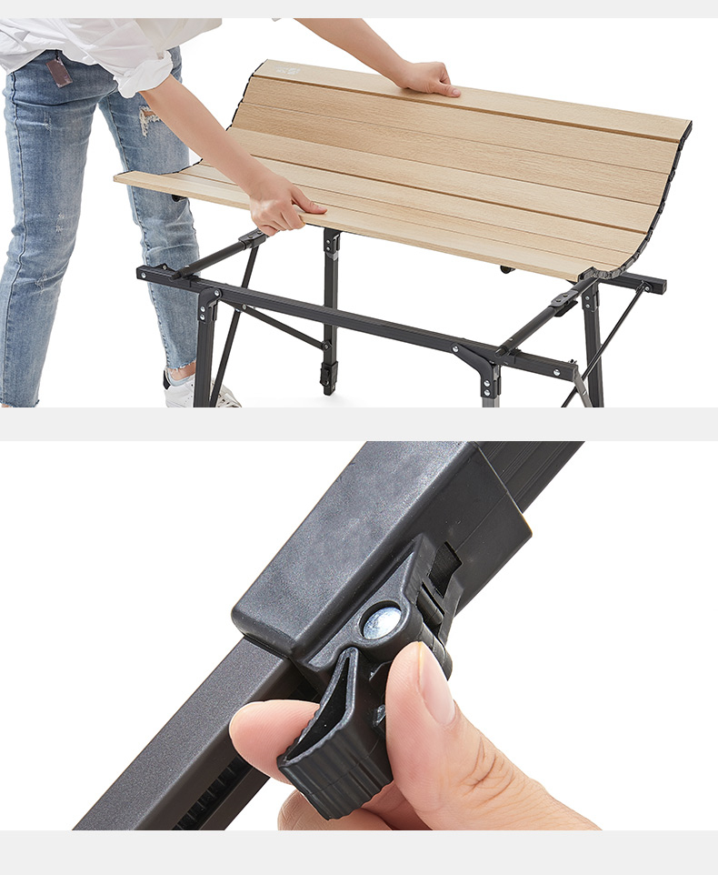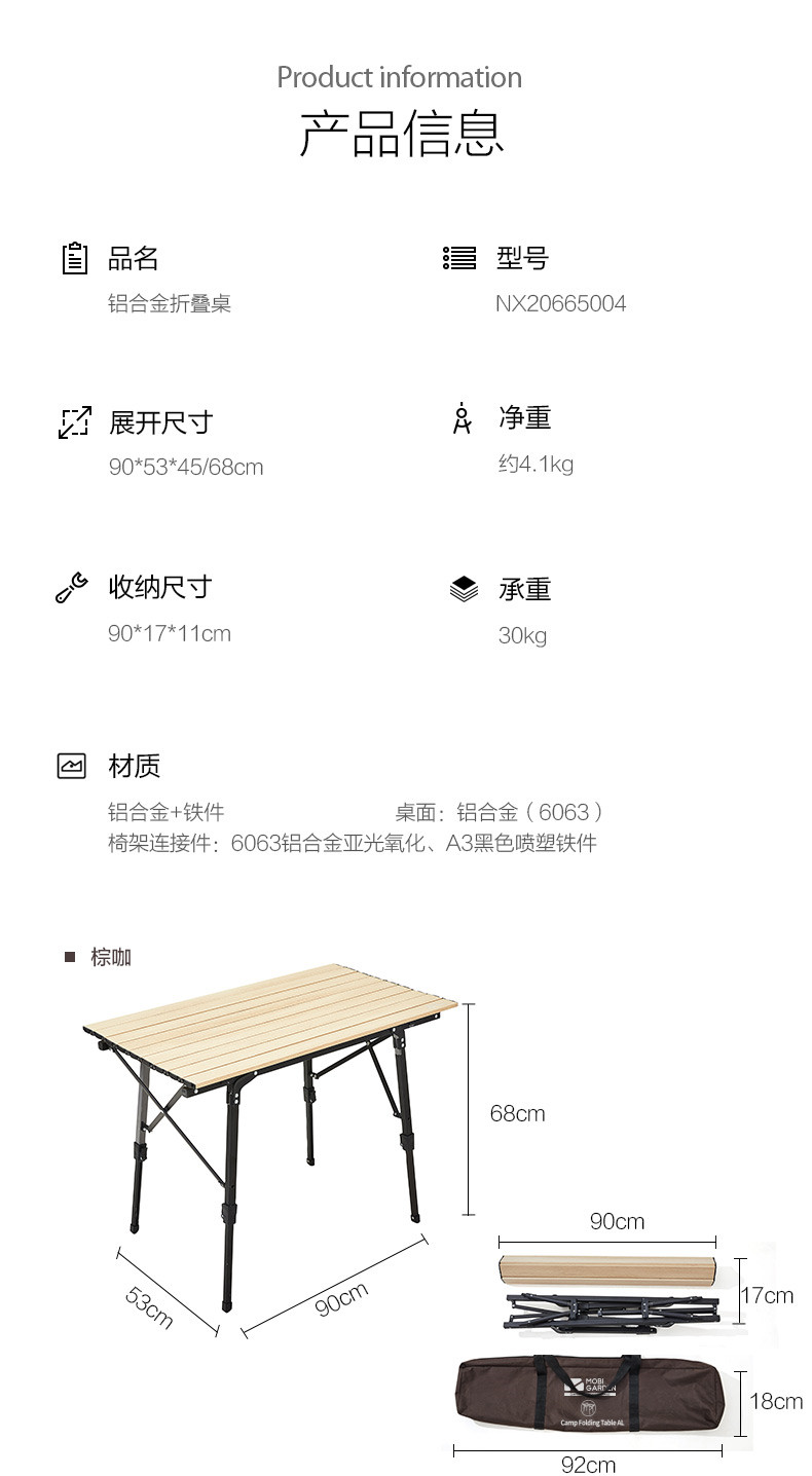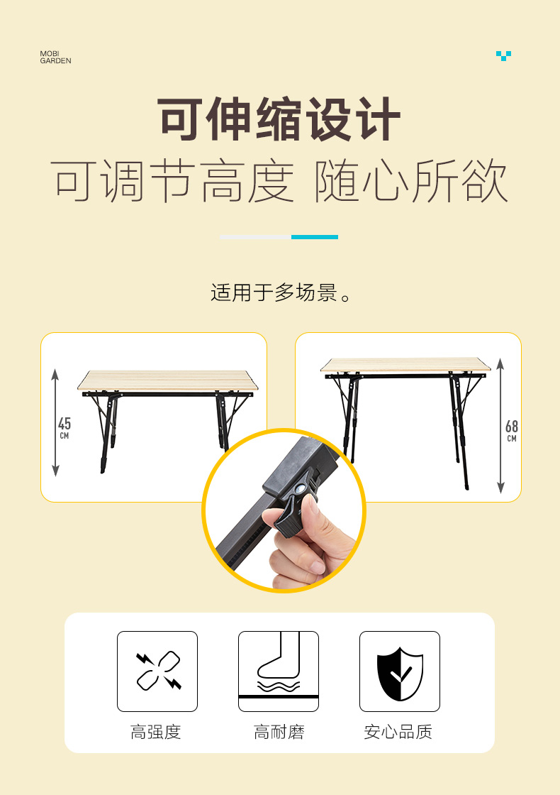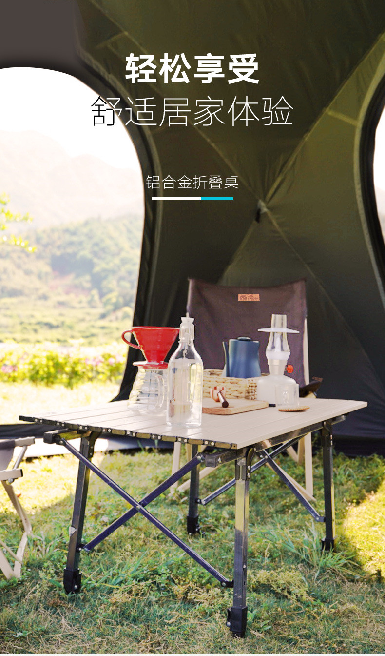 牧高笛 户外便携折叠桌家庭露营休闲铝合金轻便可伸缩桌子便携可折叠餐桌 NX20665004 自然色