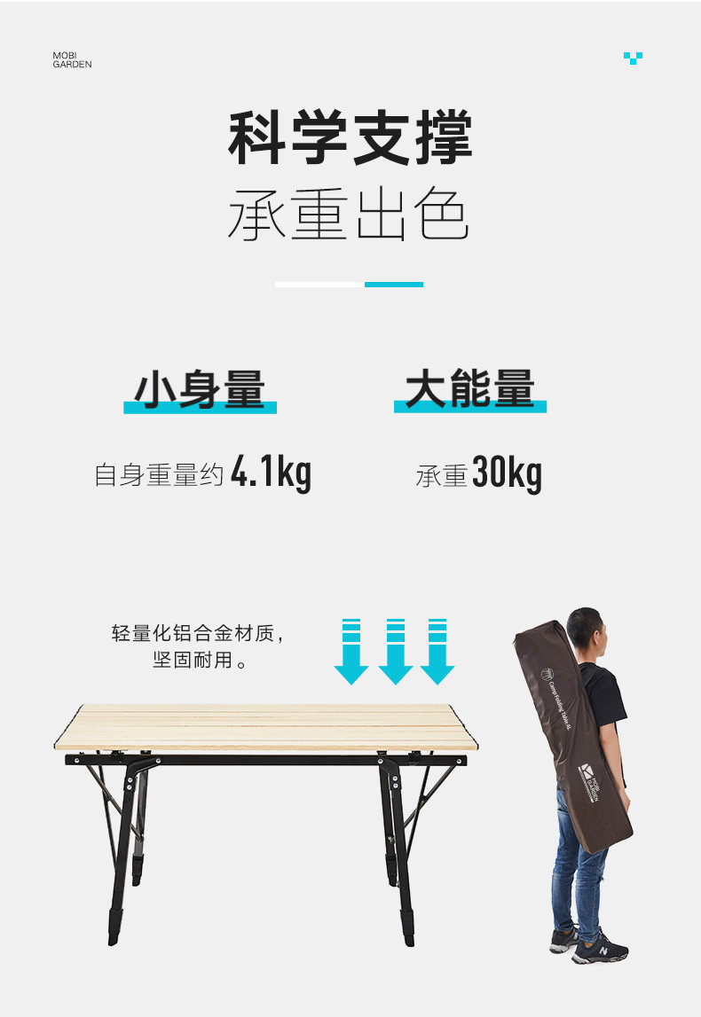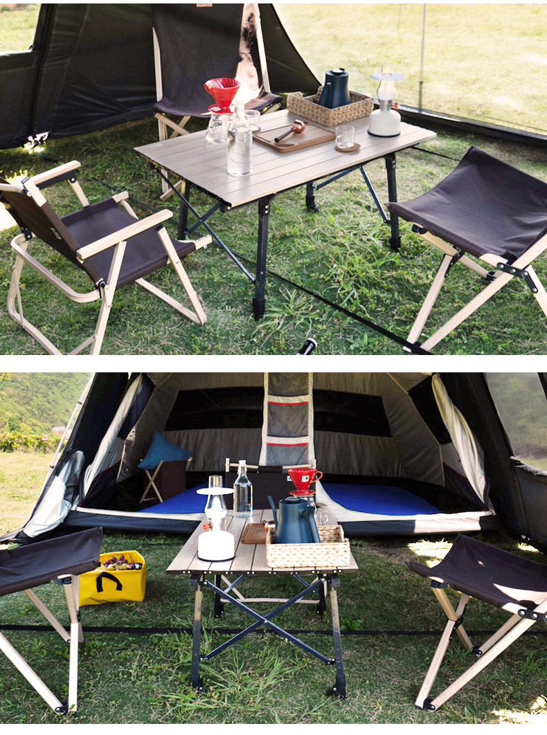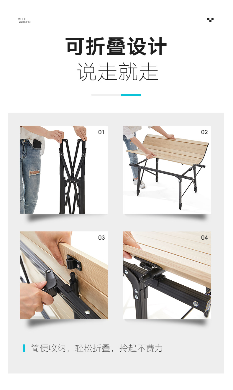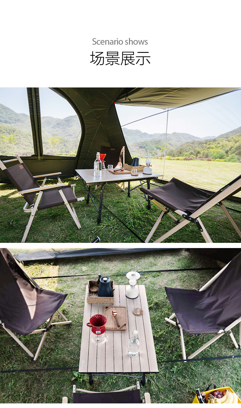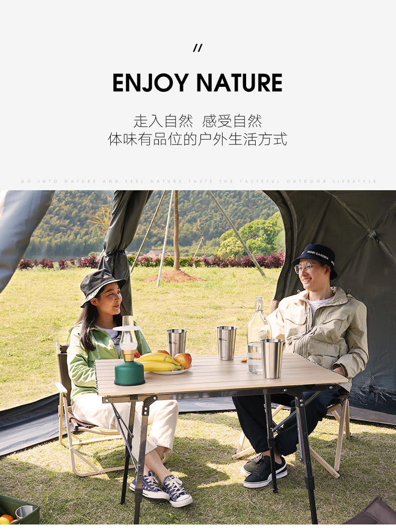 牧高笛 户外便携折叠桌家庭露营休闲铝合金轻便可伸缩桌子便携可折叠餐桌 NX20665004 自然色