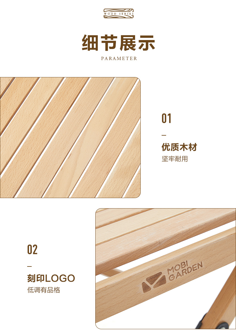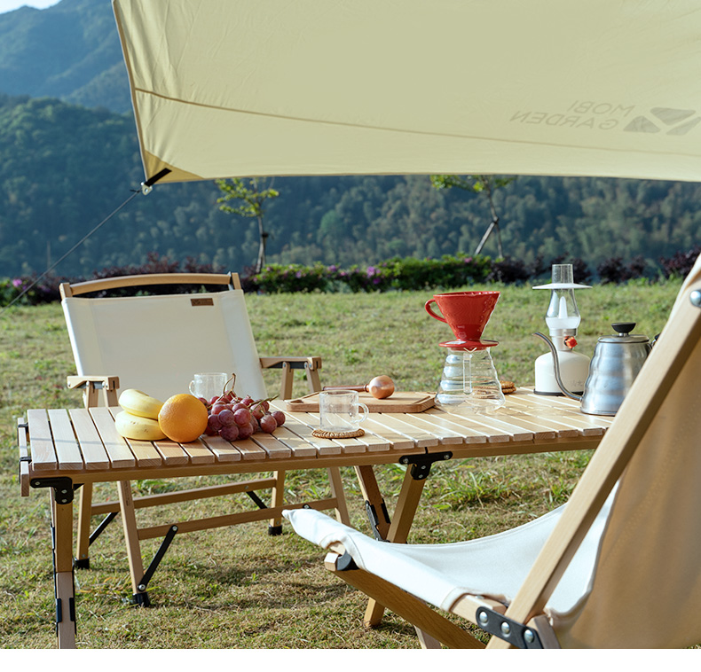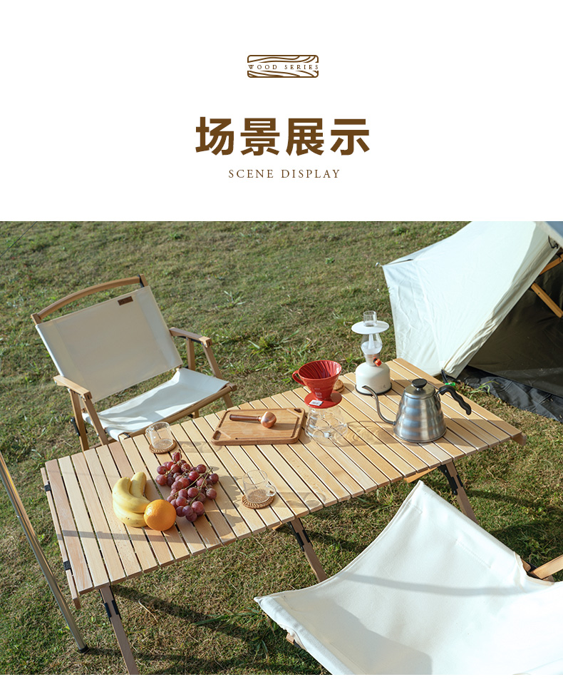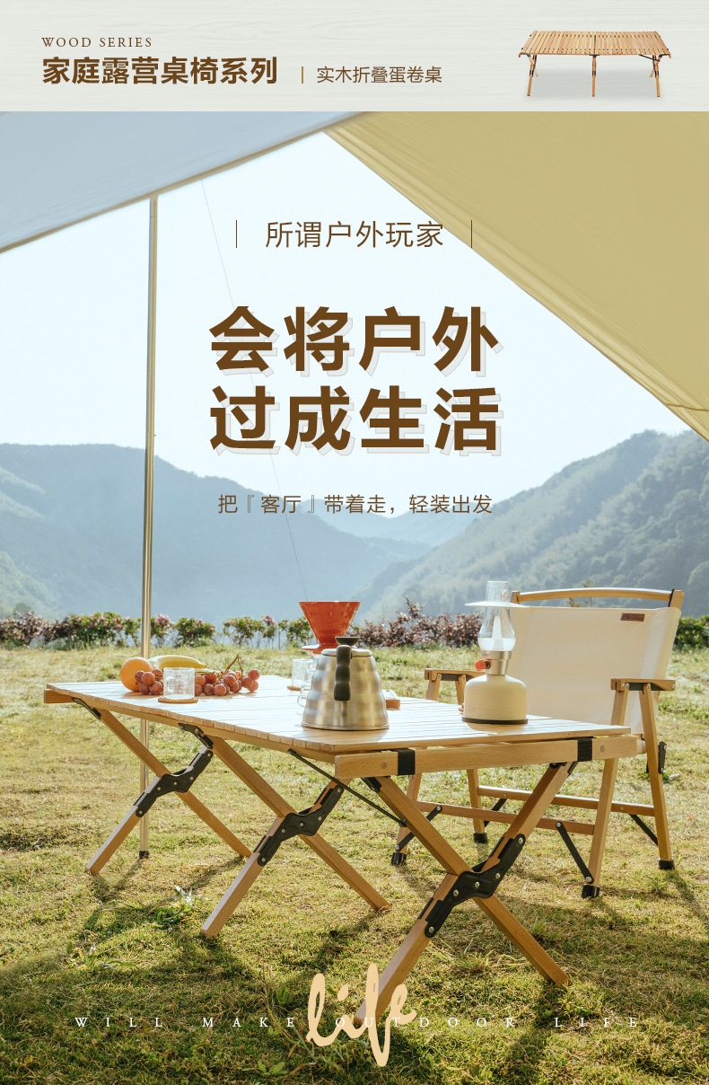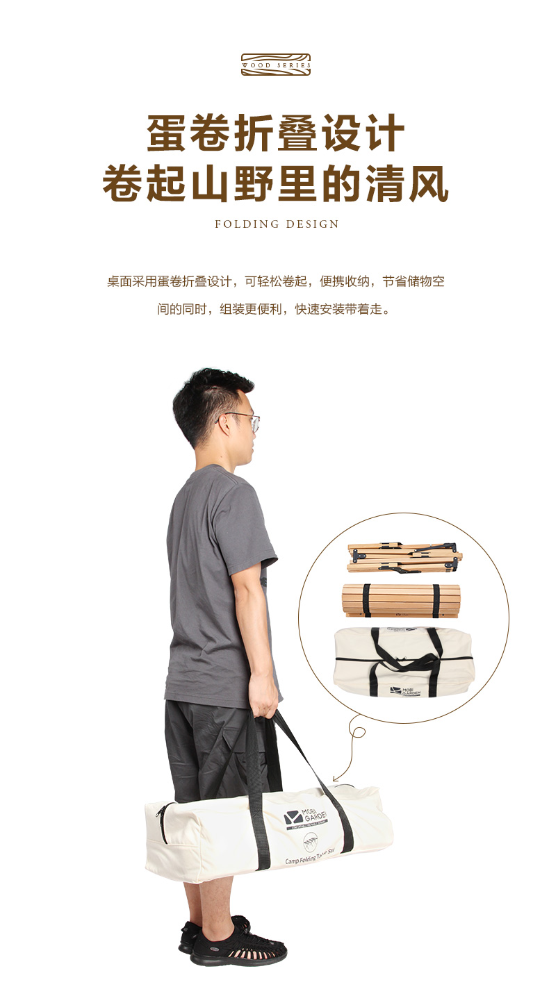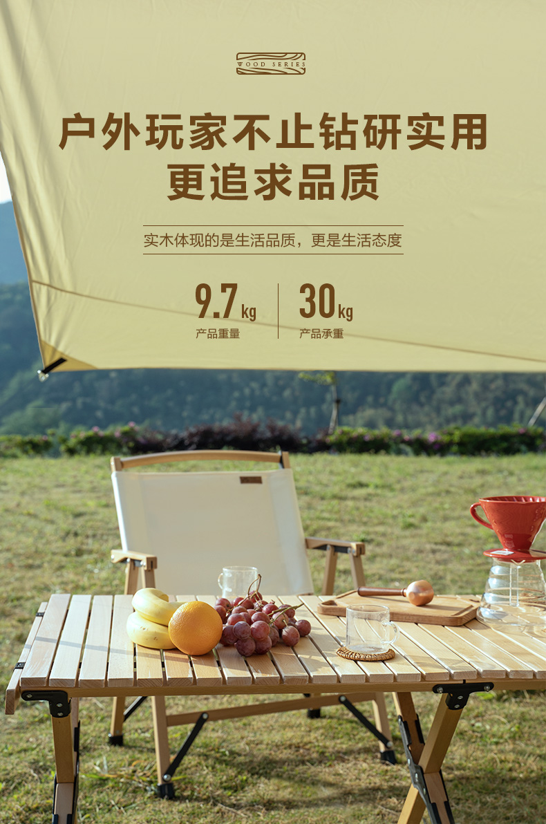 牧高笛(MOBIGARDEN) 户外露营聚会自驾野餐烧烤便携户外折叠桌餐桌实木蛋卷桌 NX21665016 自然色