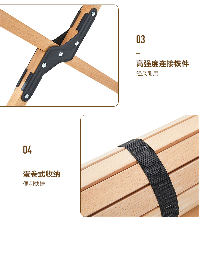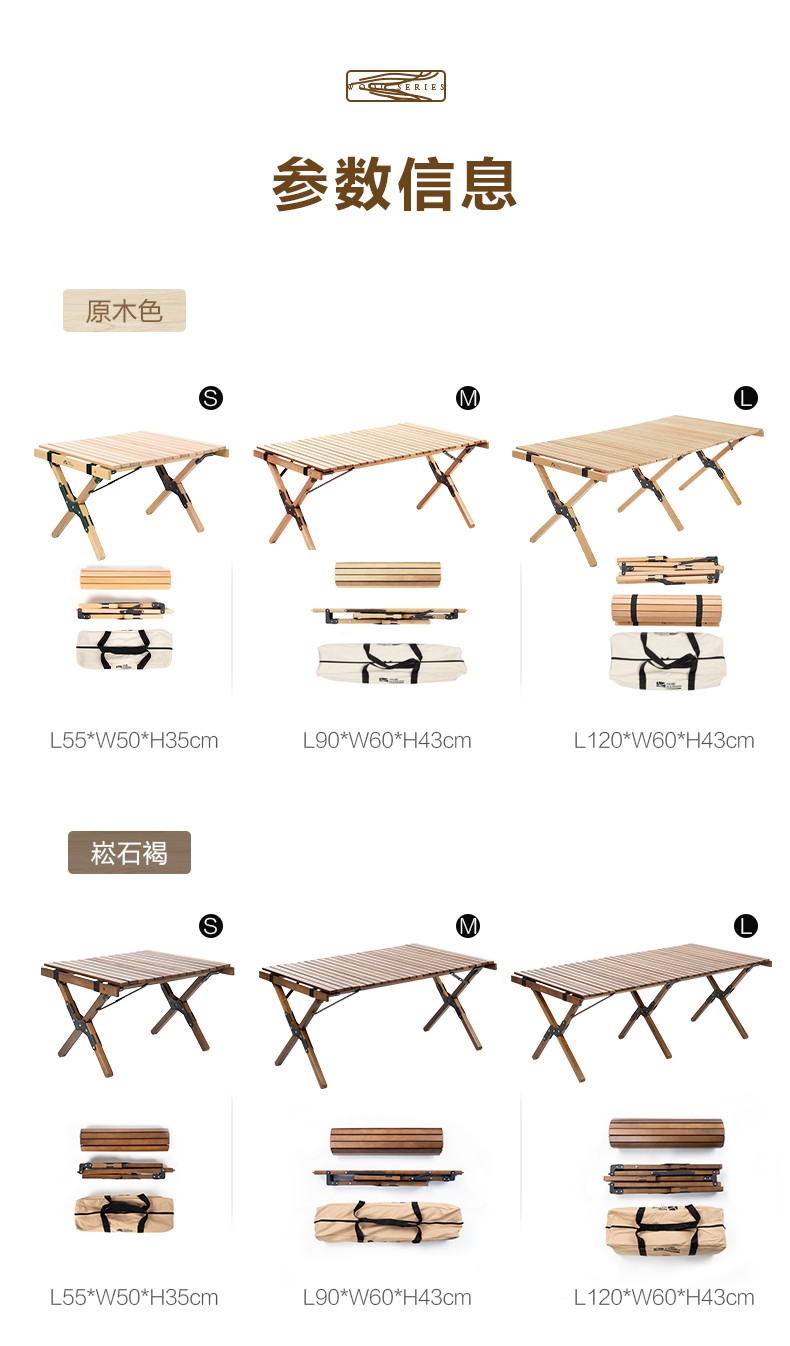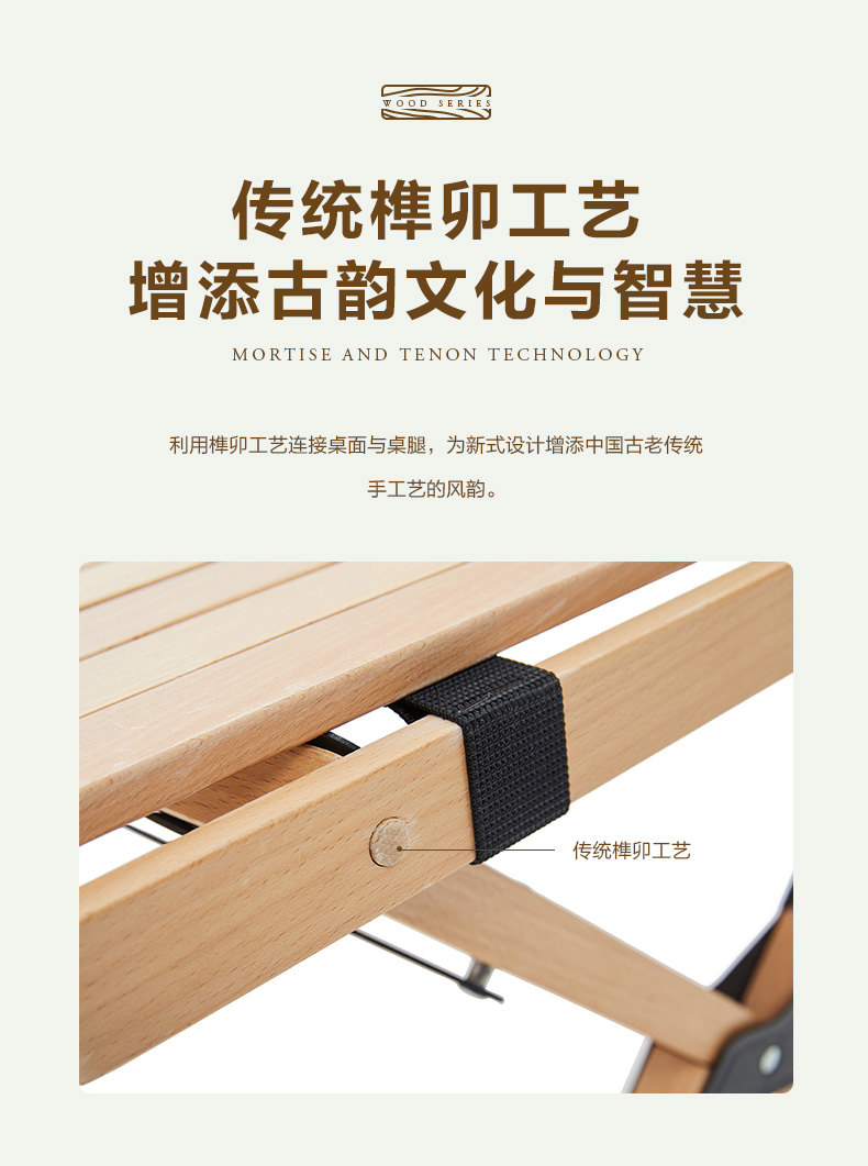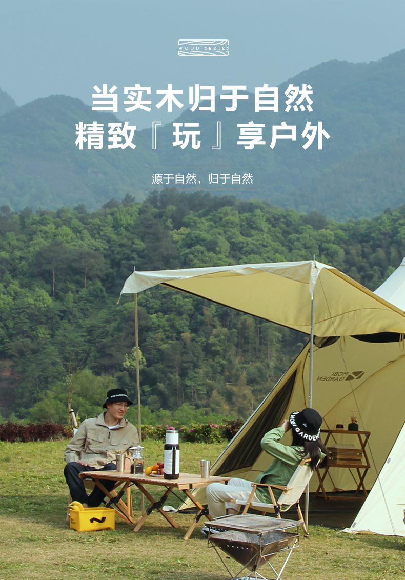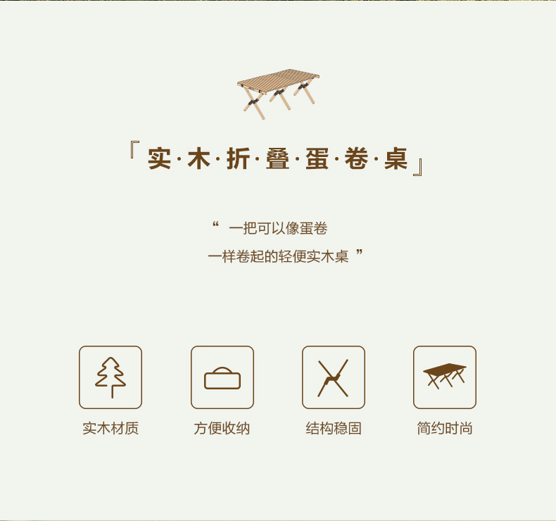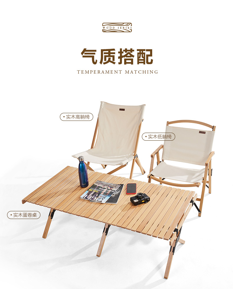 牧高笛(MOBIGARDEN) 户外露营聚会自驾野餐烧烤便携户外折叠桌餐桌实木蛋卷桌 NX21665016 自然色