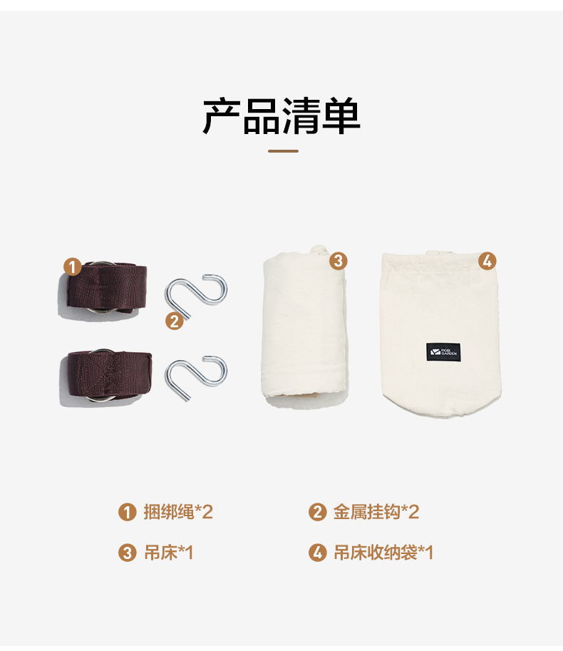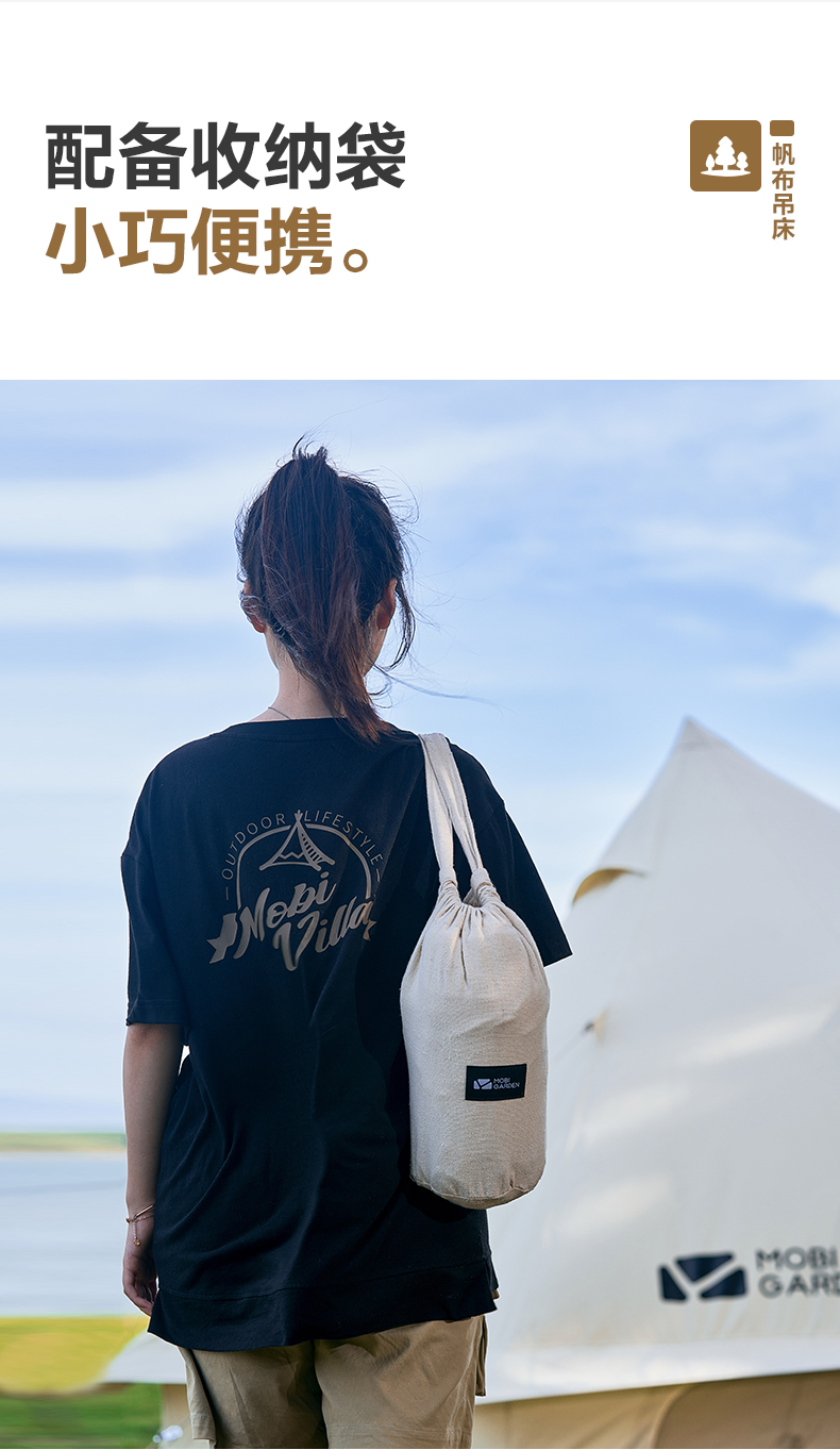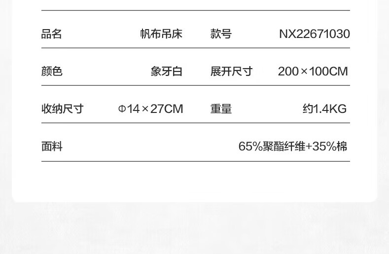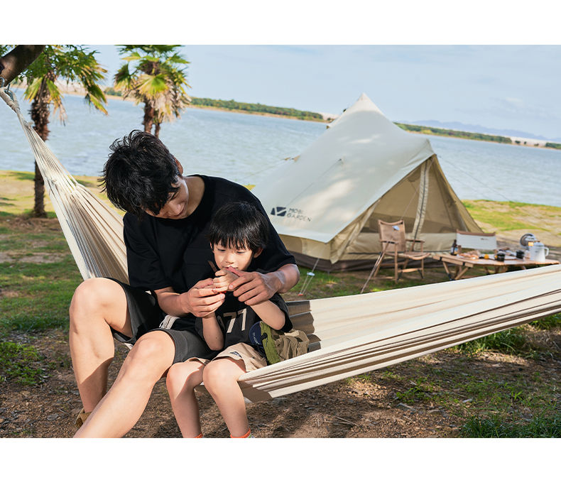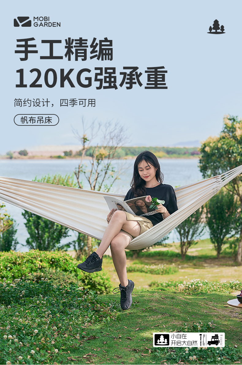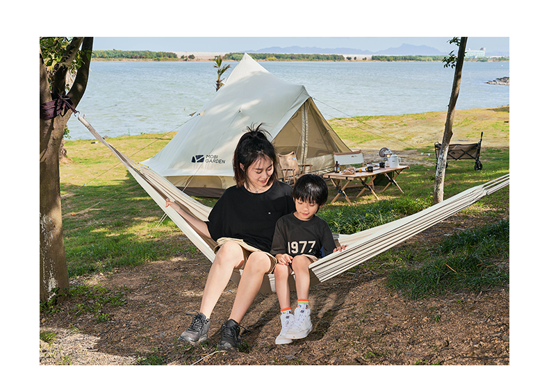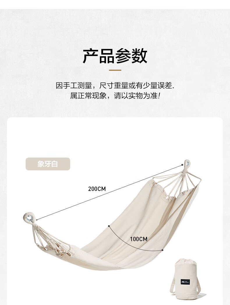 牧高笛(MOBIGARDEN)户外露营精致野餐单人沙滩露营休闲秋千加厚帆布吊床 梦摇 NX22671030 象牙色