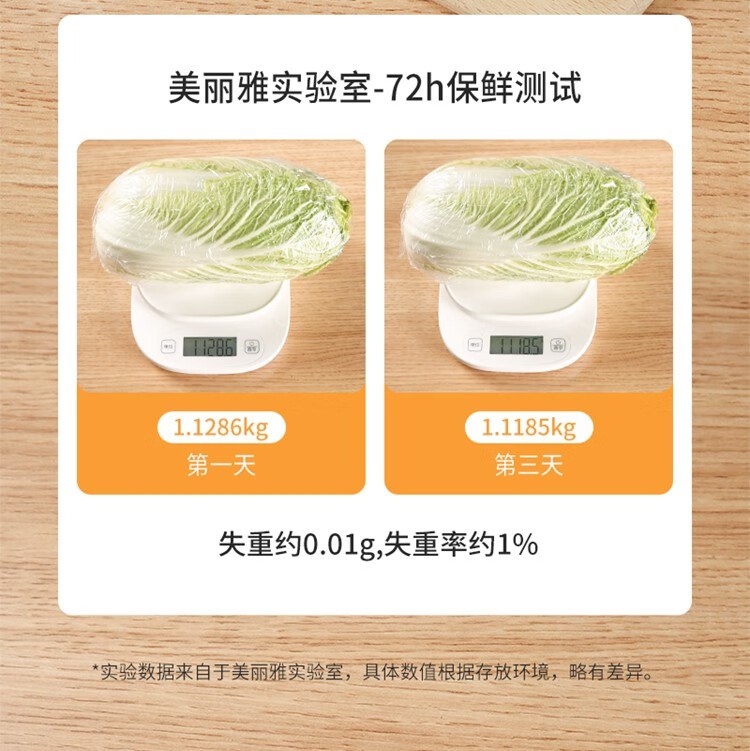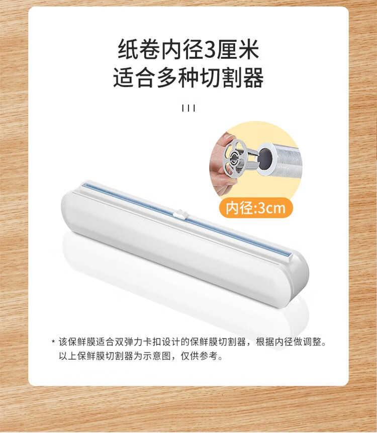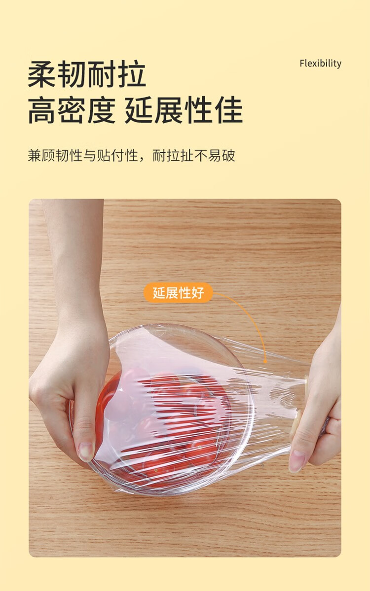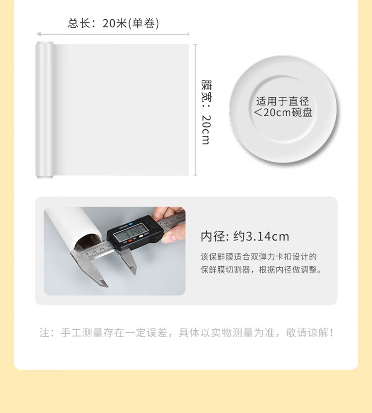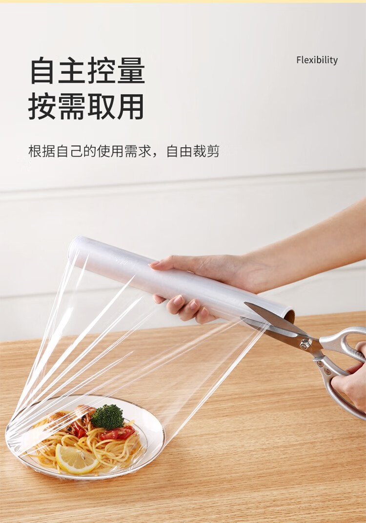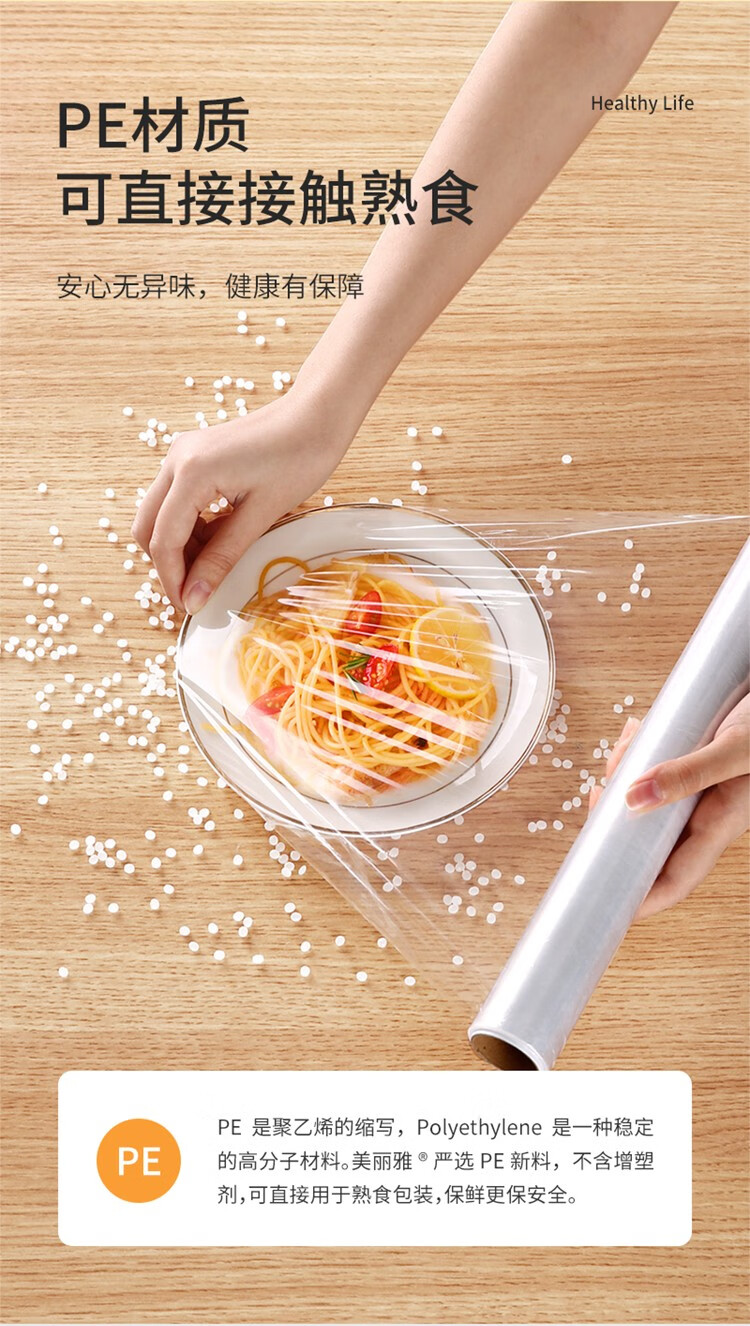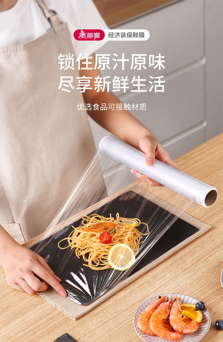 美丽雅 保鲜膜家用经济装 食品用厨房微波冰箱易撕取食品保鲜膜 20cm*20m【5卷共100米】 钢琴白