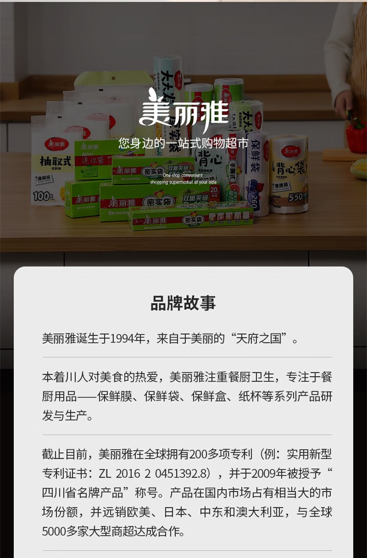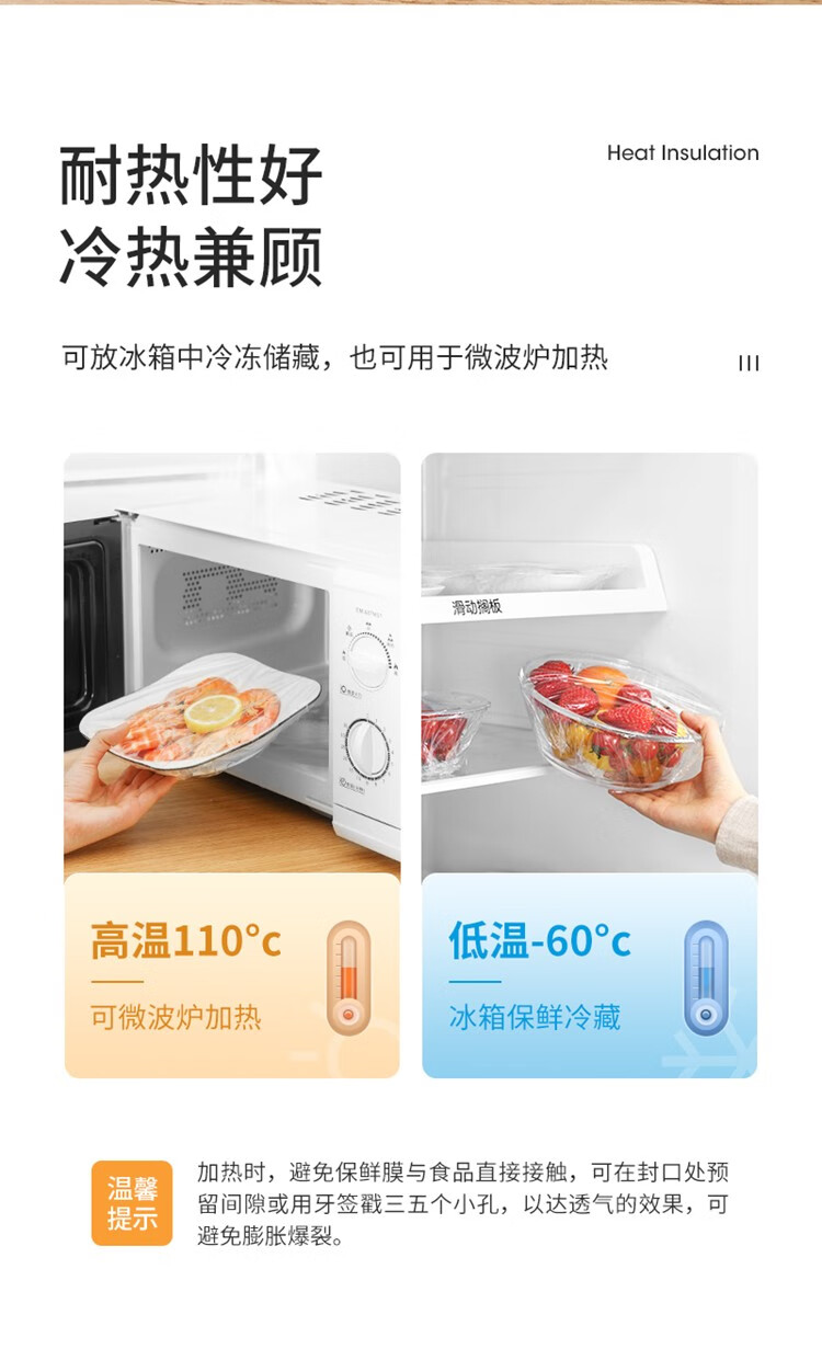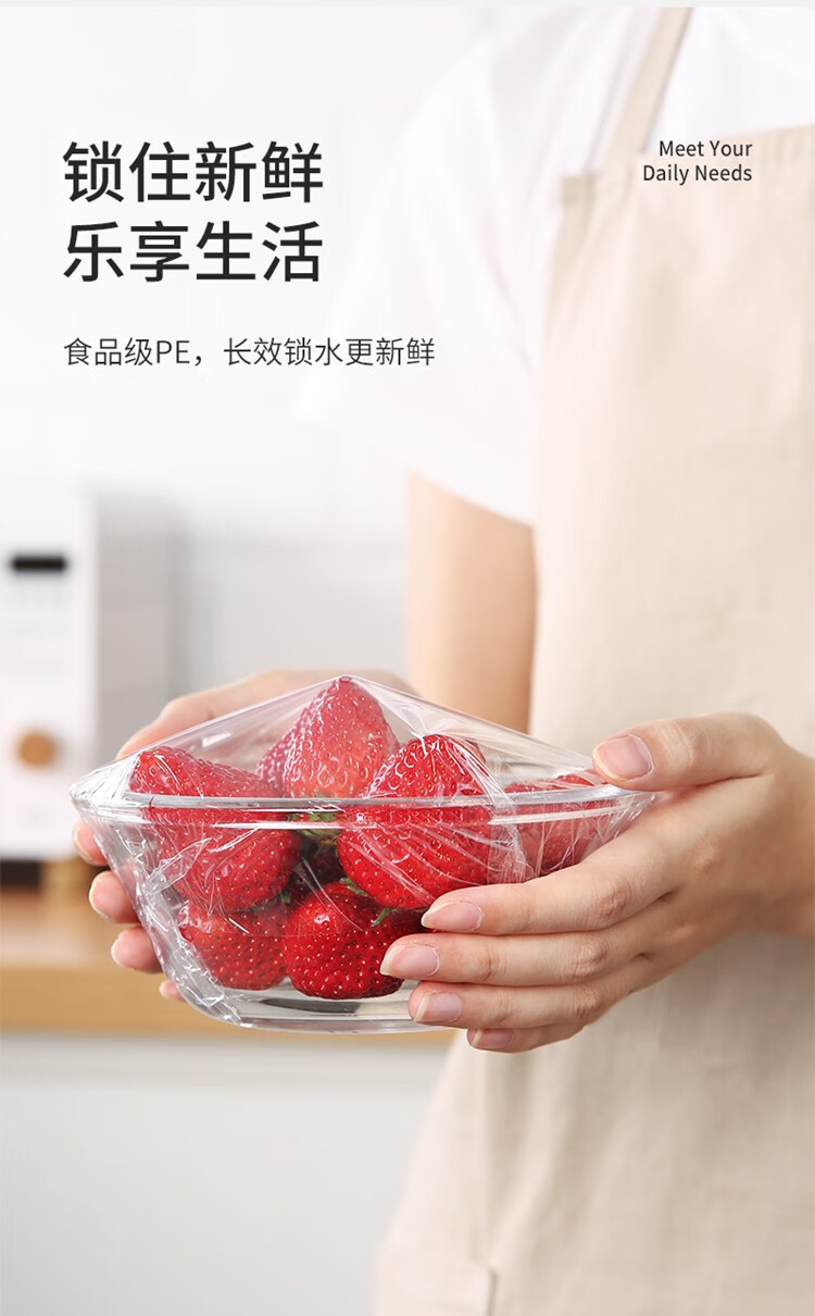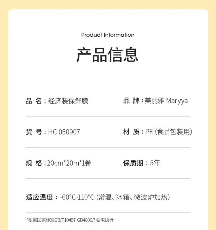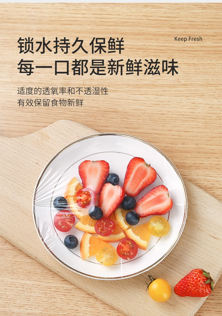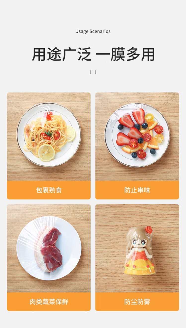 美丽雅 保鲜膜家用经济装 食品用厨房微波冰箱易撕取食品保鲜膜 20cm*20m【5卷共100米】 钢琴白