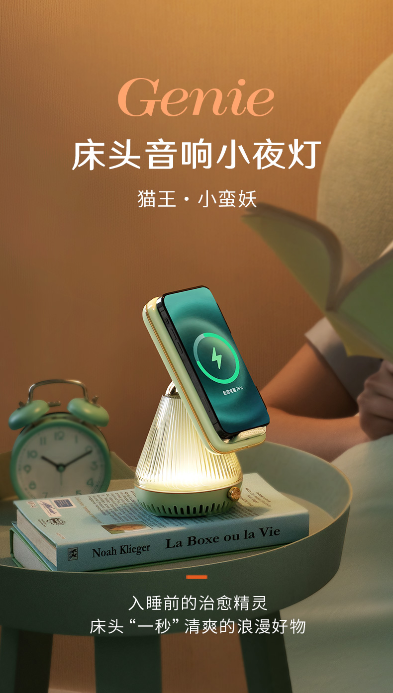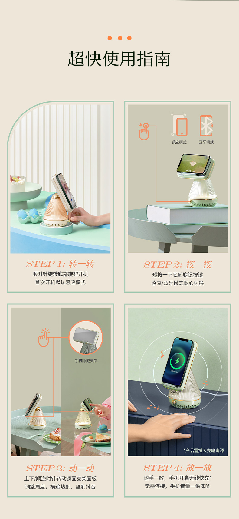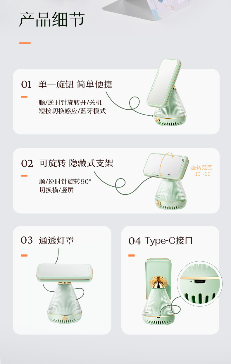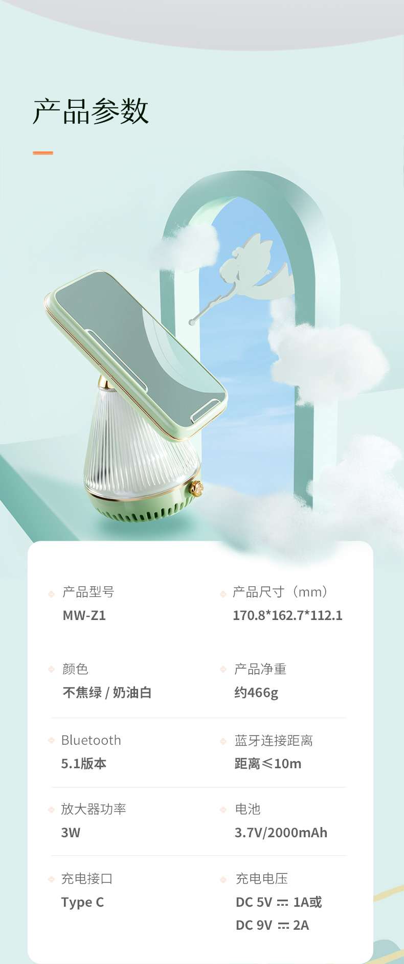 猫王音响小蛮妖六合一无线蓝牙快充手机支架感应音箱MW-Z1 不焦绿 不焦绿