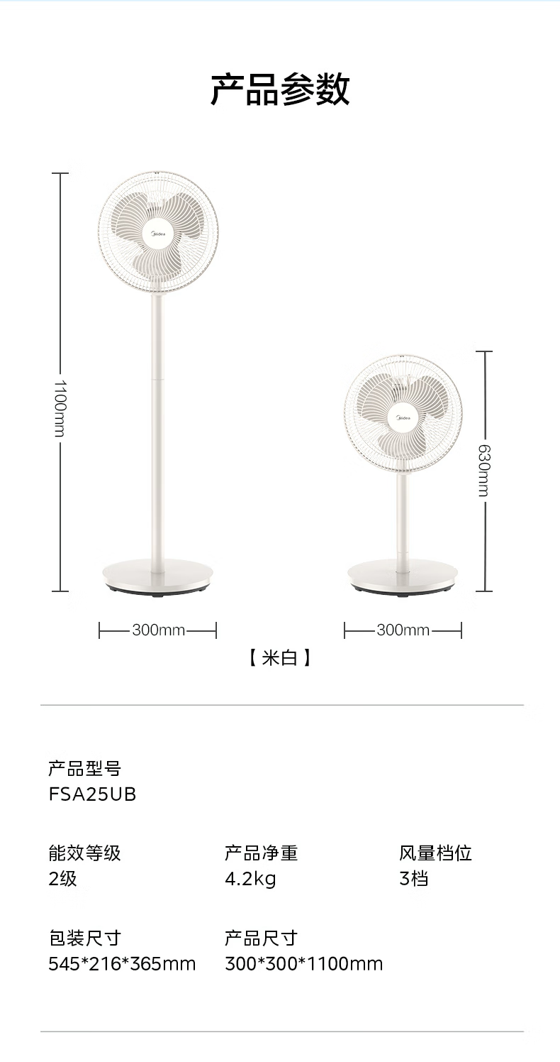 美的(Midea)落地扇电风扇 3叶 FSA25UB(单位:台) 象牙色