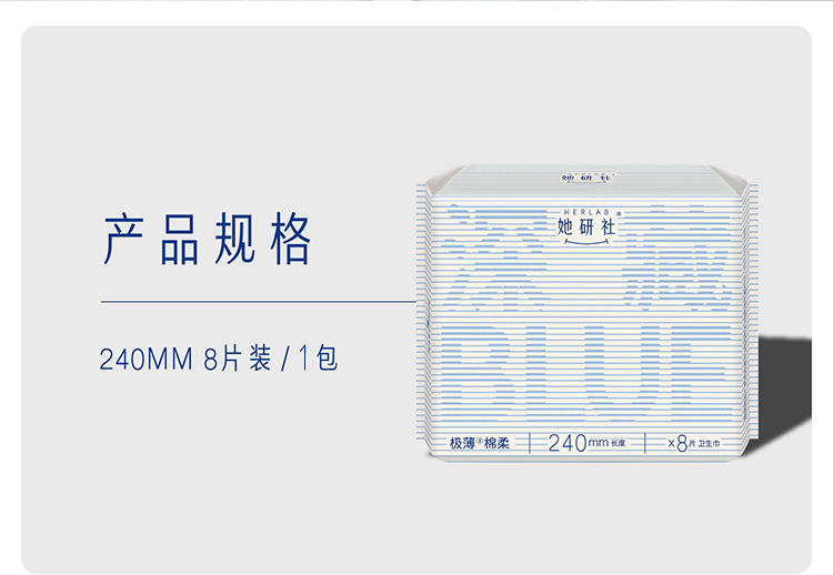 她研社深藏Blue超薄瞬吸卫生巾240mm日用8片 白色