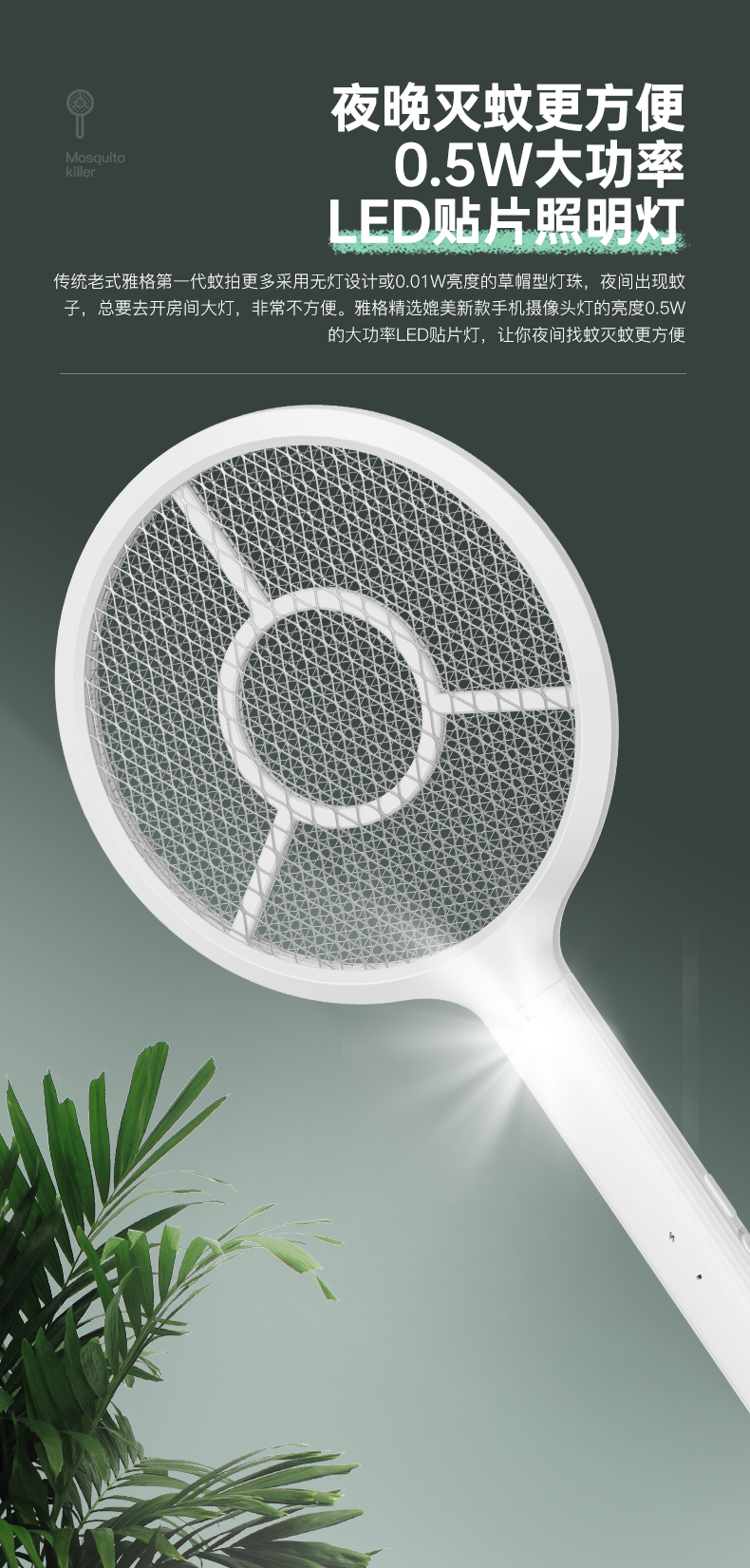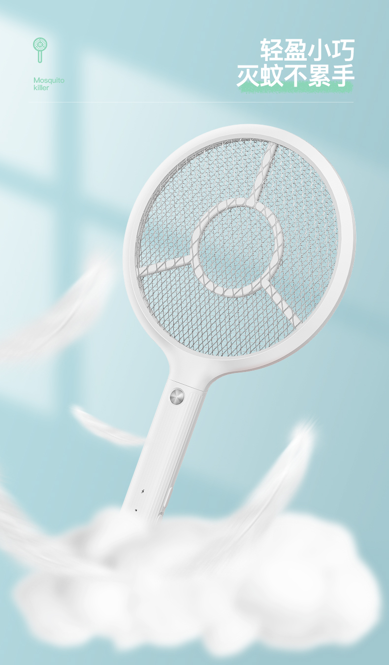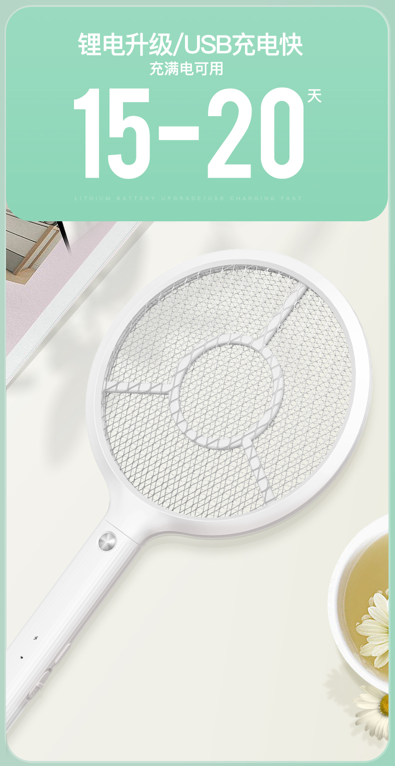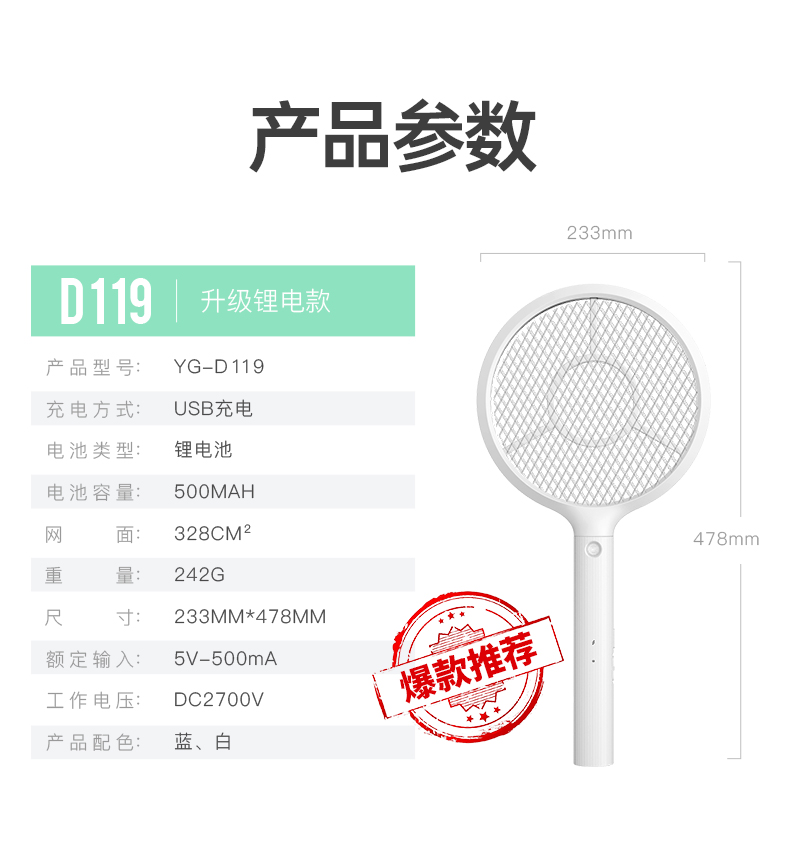 雅格(yage)便携USB充电式锂电电蚊拍YG-D119(个) 白色