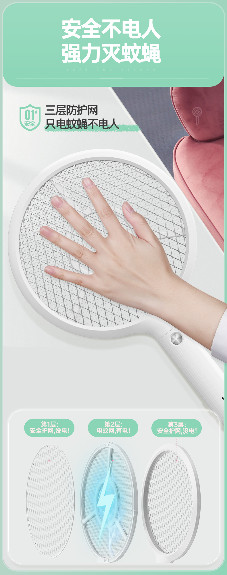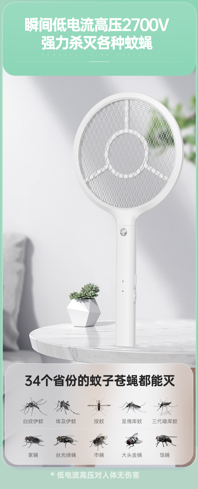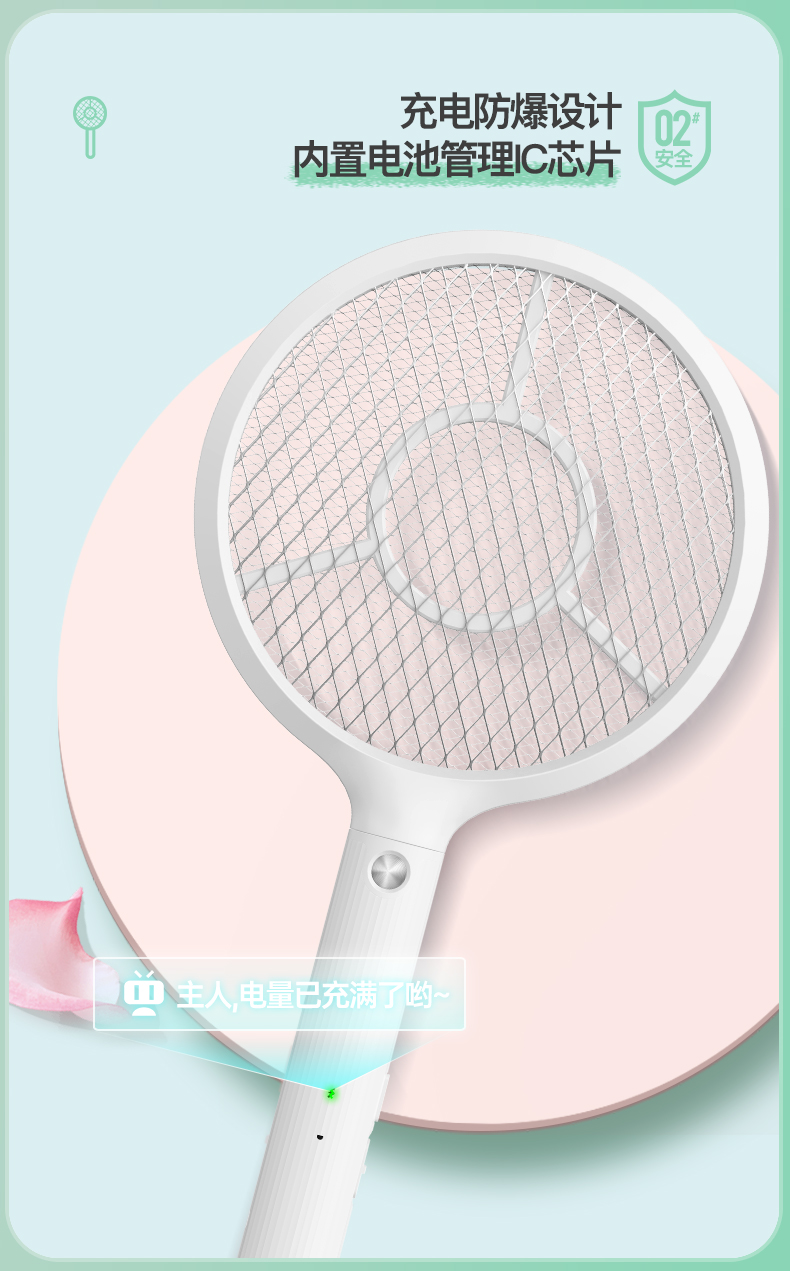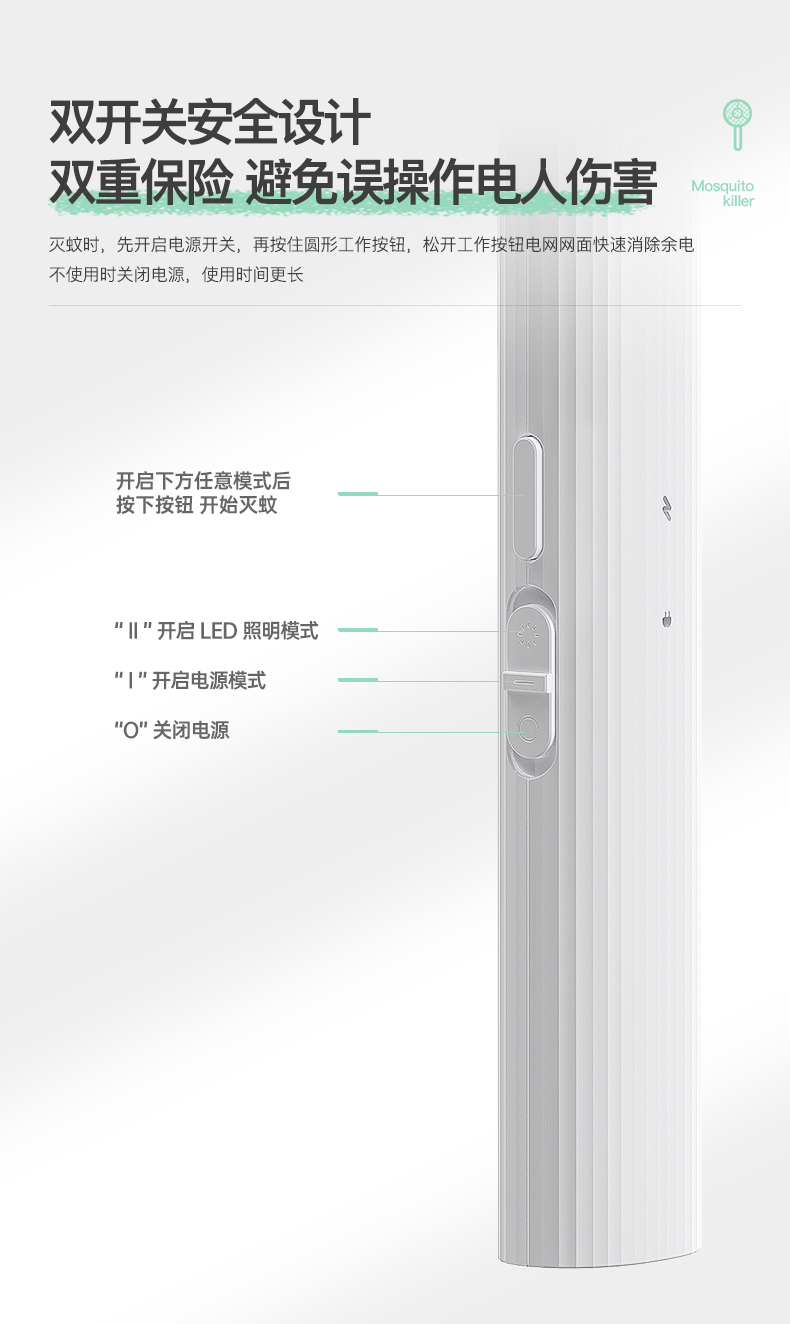 雅格(yage)便携USB充电式锂电电蚊拍YG-D119(个) 白色