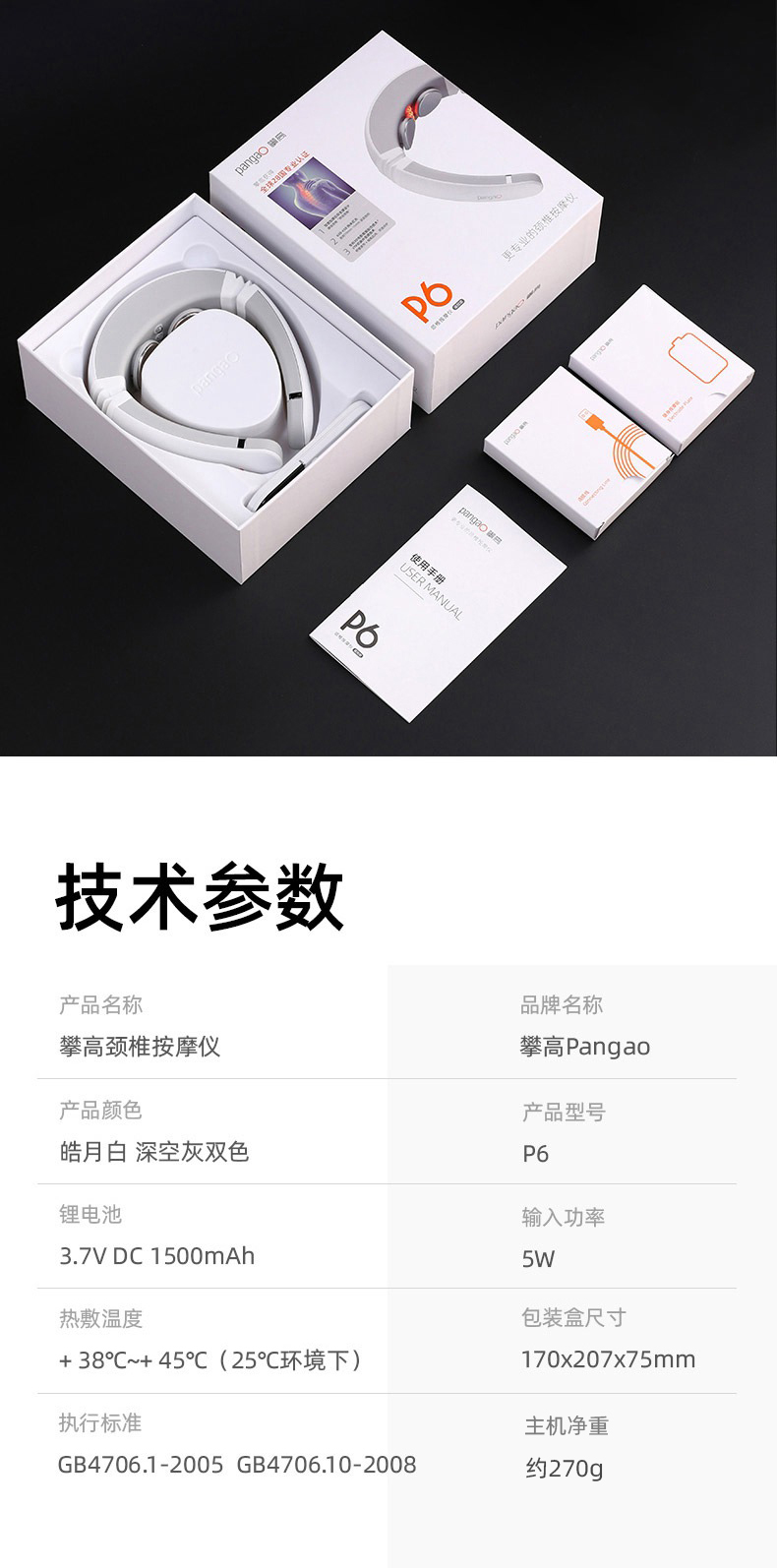 攀高 (PANGAO) 颈椎按摩仪 遥控款 Neck-P6(单位:台) 白色 中码