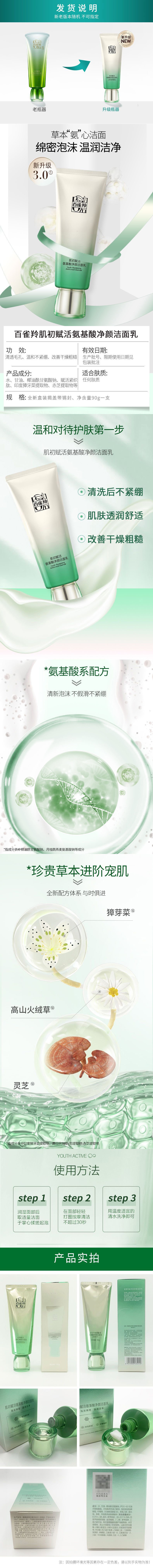 百雀羚肌初赋活氨基酸净颜洁面乳(90g)(单位:支) 绿色