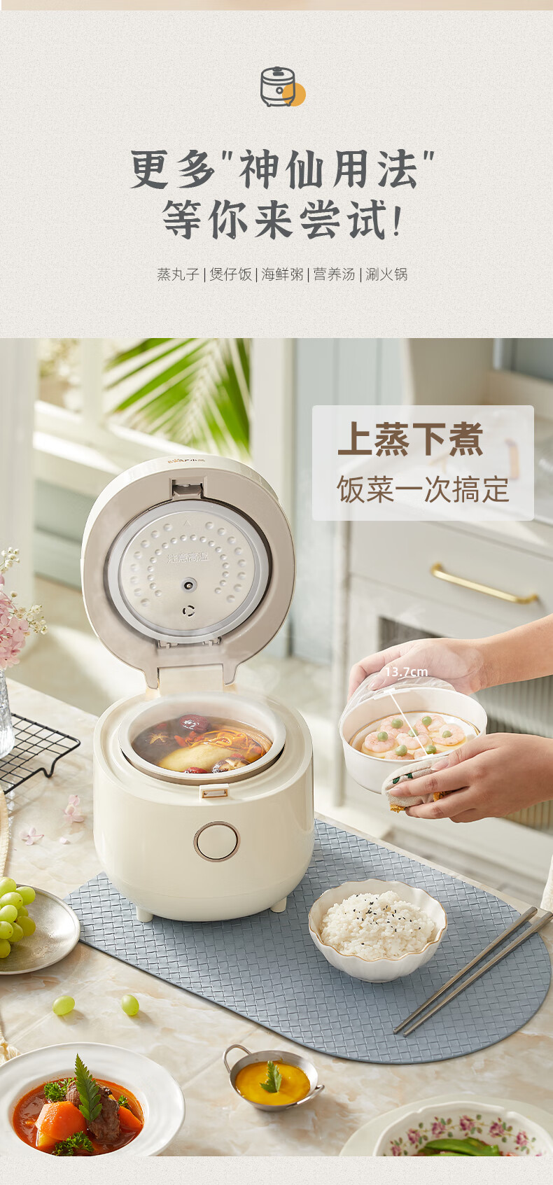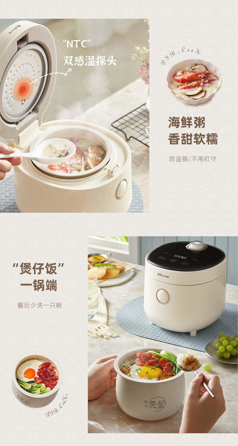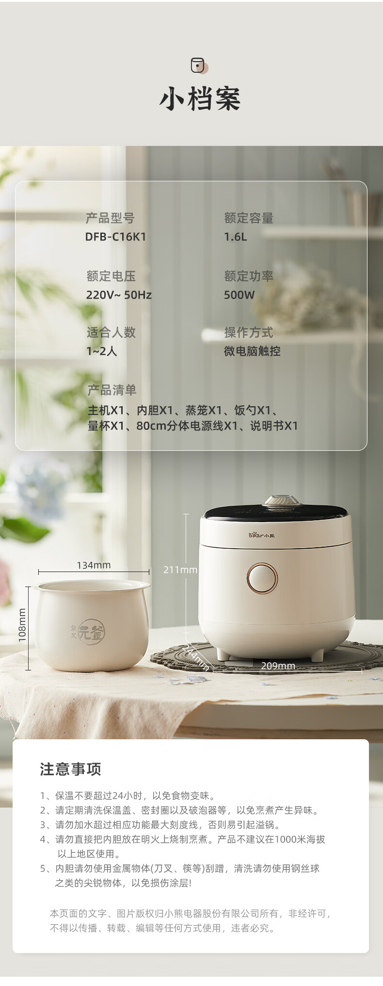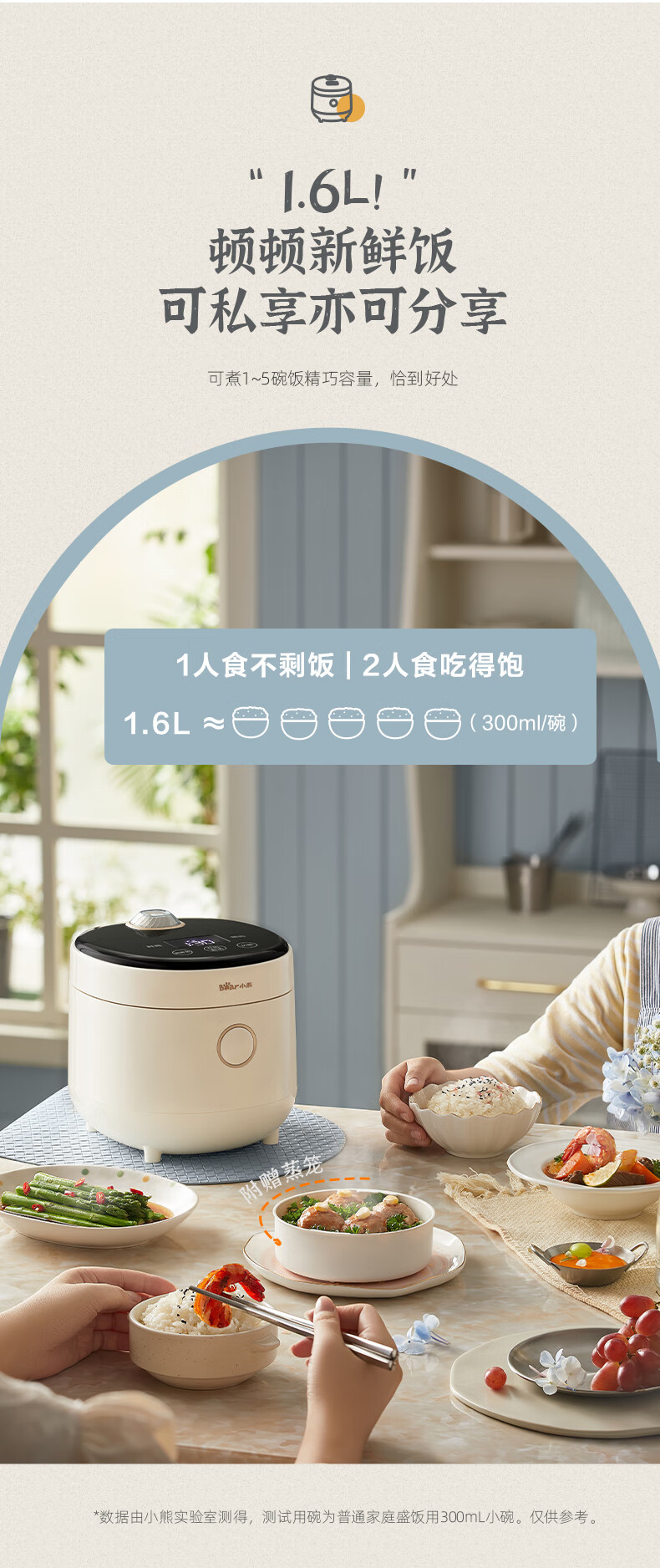 小熊(Bear)电饭煲 电饭锅迷你家用小容量 配蒸笼1.6L蒸饭DFB-C16K1(单位:台) 米白色