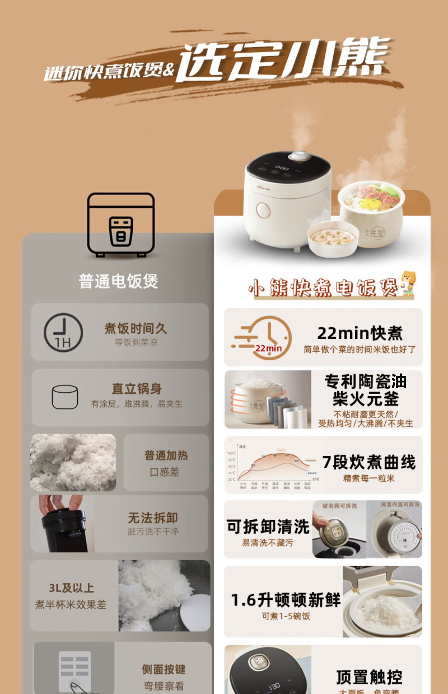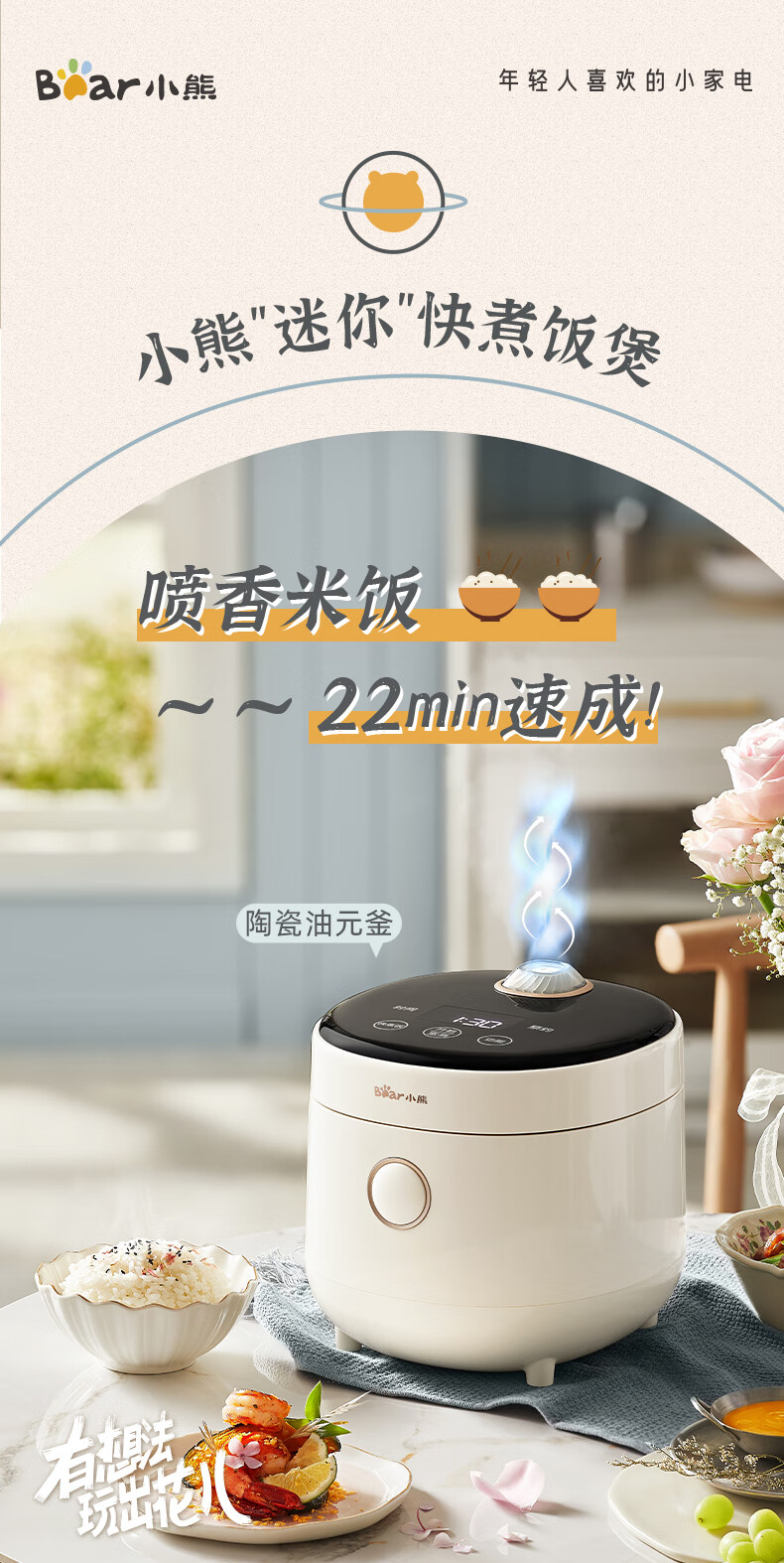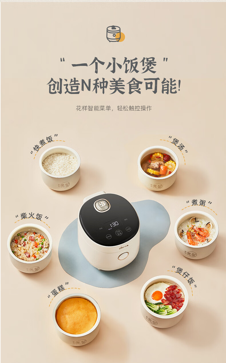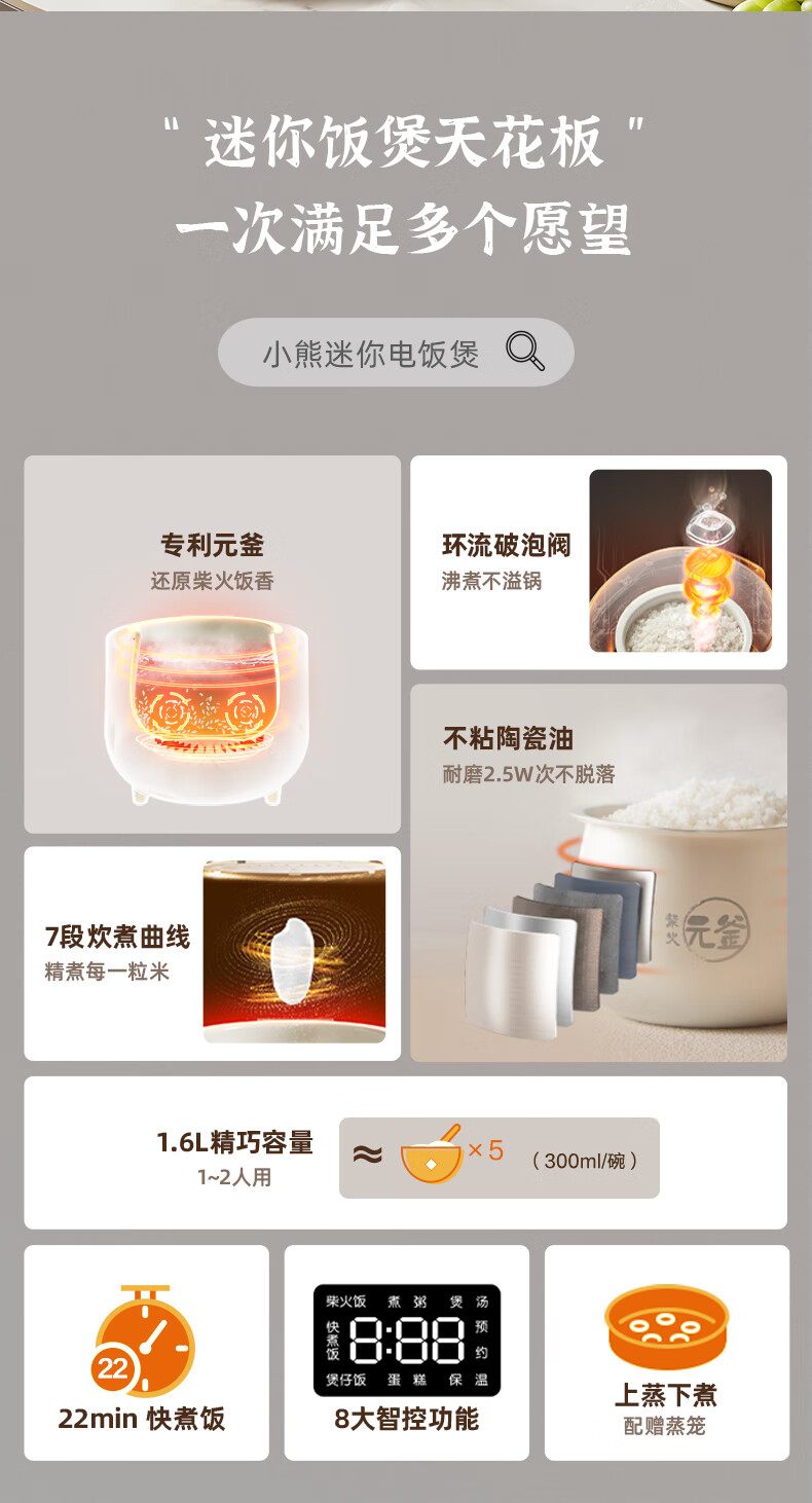 小熊(Bear)电饭煲 电饭锅迷你家用小容量 配蒸笼1.6L蒸饭DFB-C16K1(单位:台) 米白色
