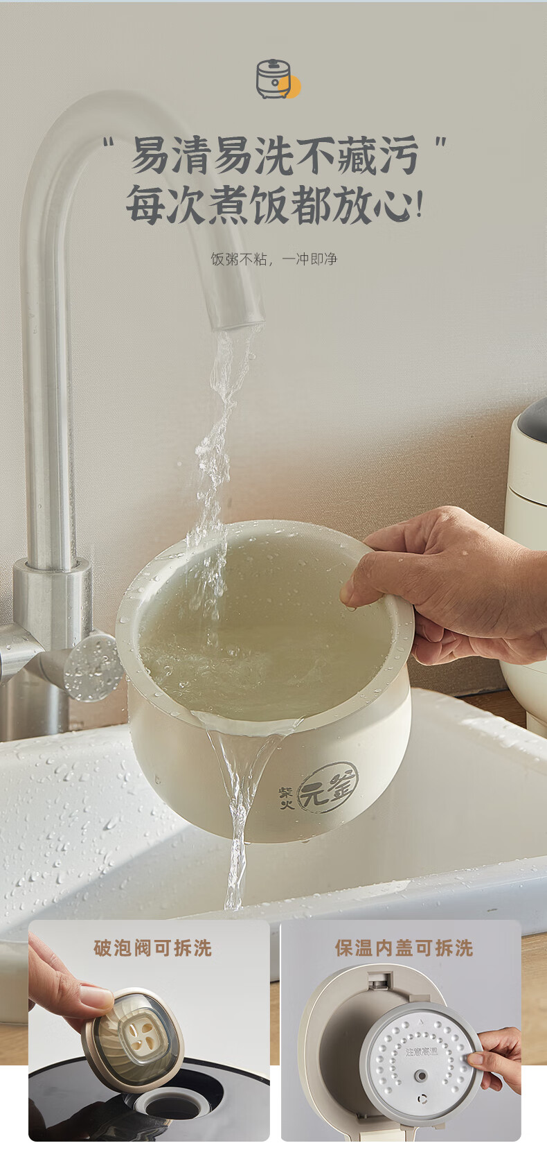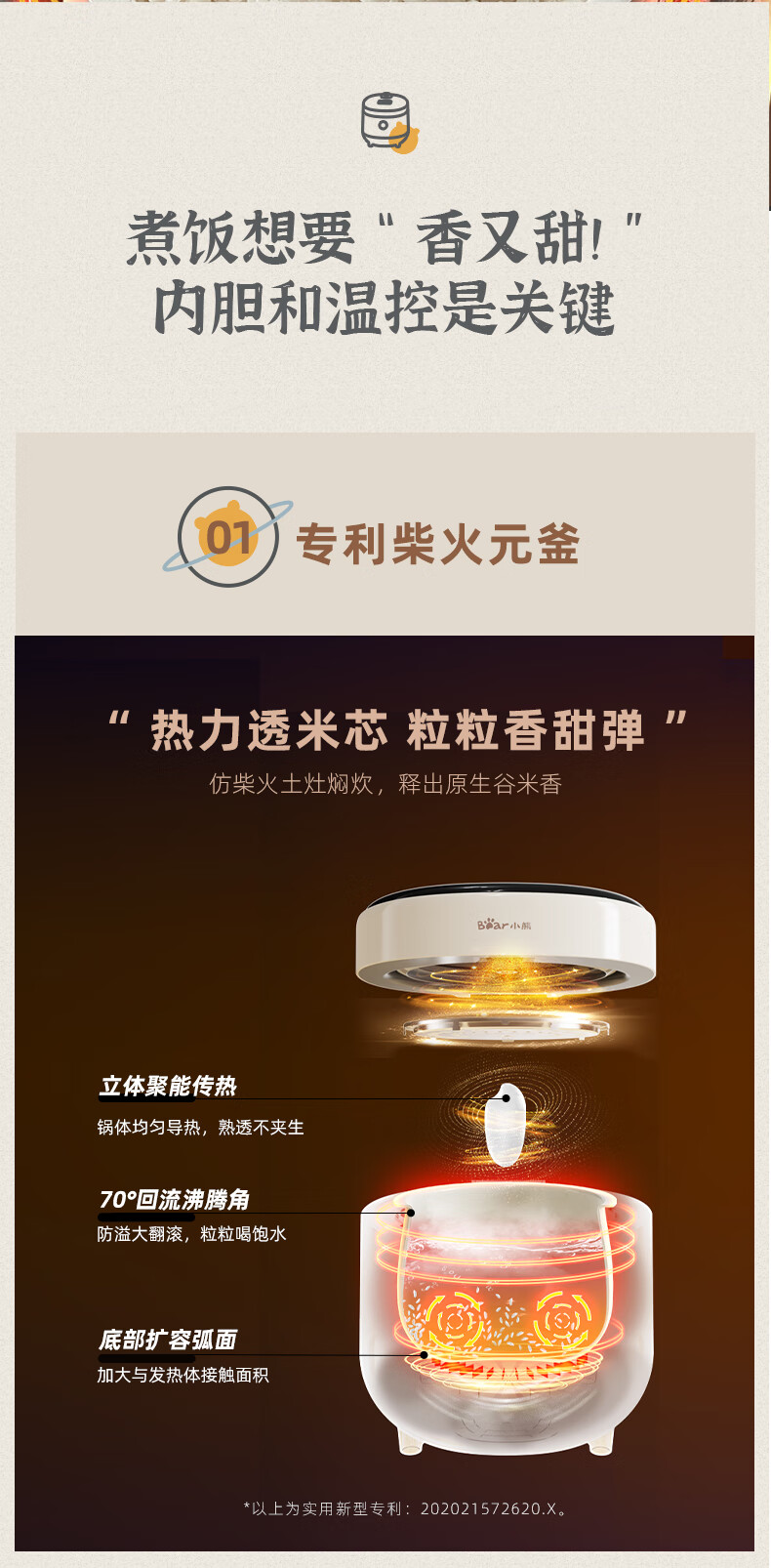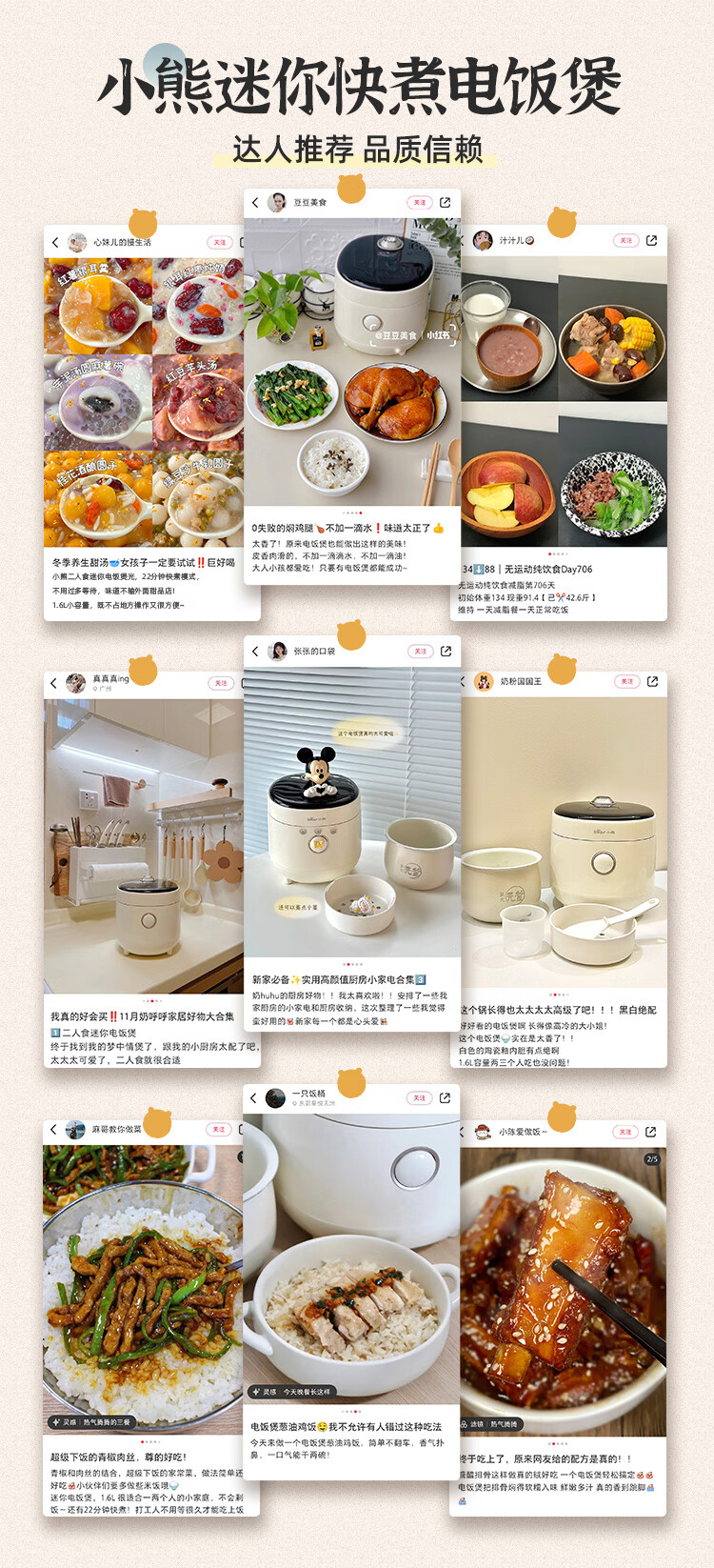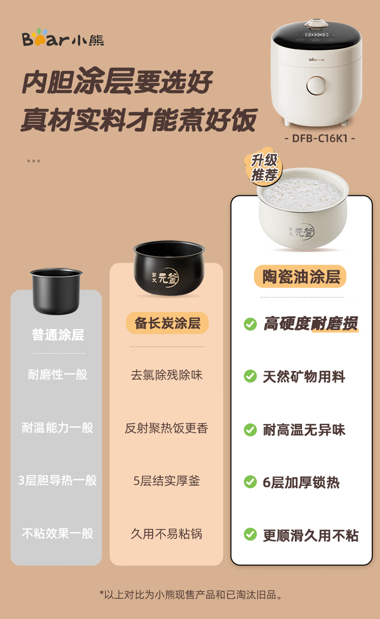 小熊(Bear)电饭煲 电饭锅迷你家用小容量 配蒸笼1.6L蒸饭DFB-C16K1(单位:台) 米白色