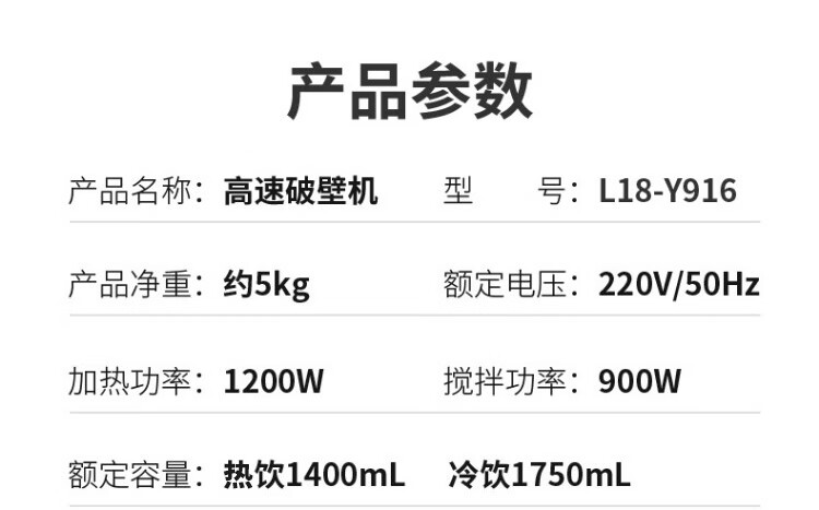 九阳 破壁机 L18-Y916 1.75L(单位:台) 金属色