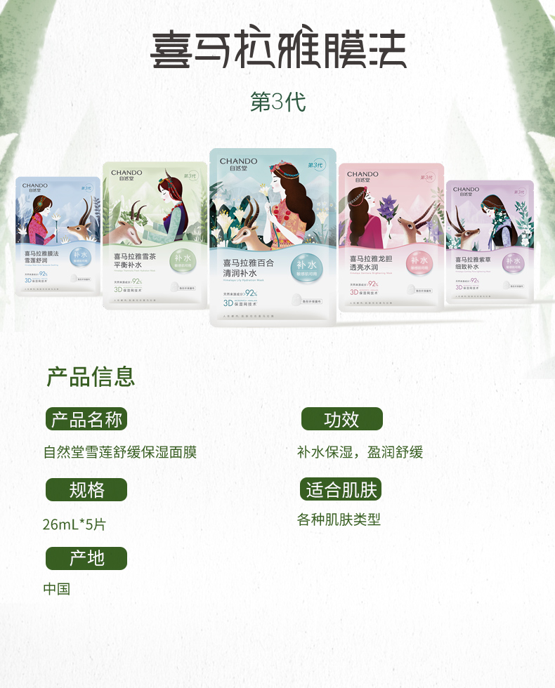 自然堂5盒面膜组合(雪域百合补水*2盒+雪莲舒缓保湿面膜2盒*雪域紫草细致毛孔面膜1盒)(单位:盒)) 白色