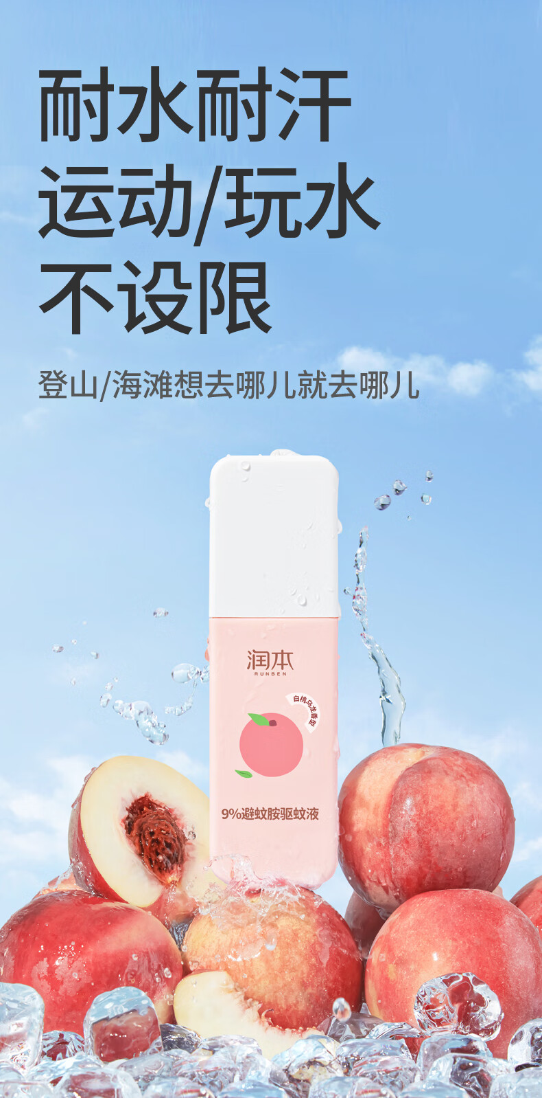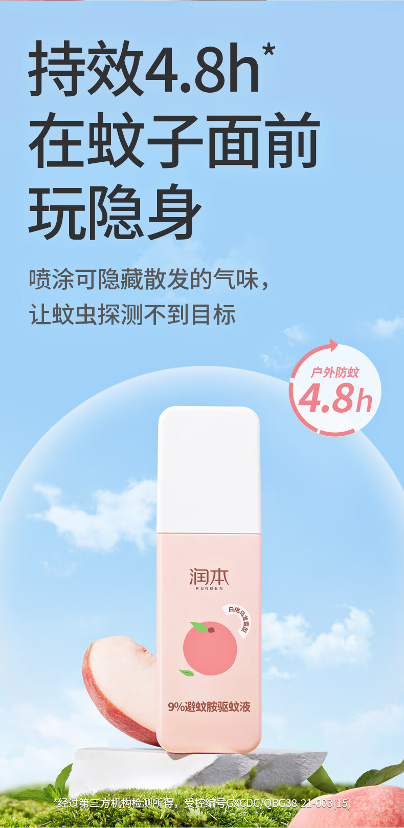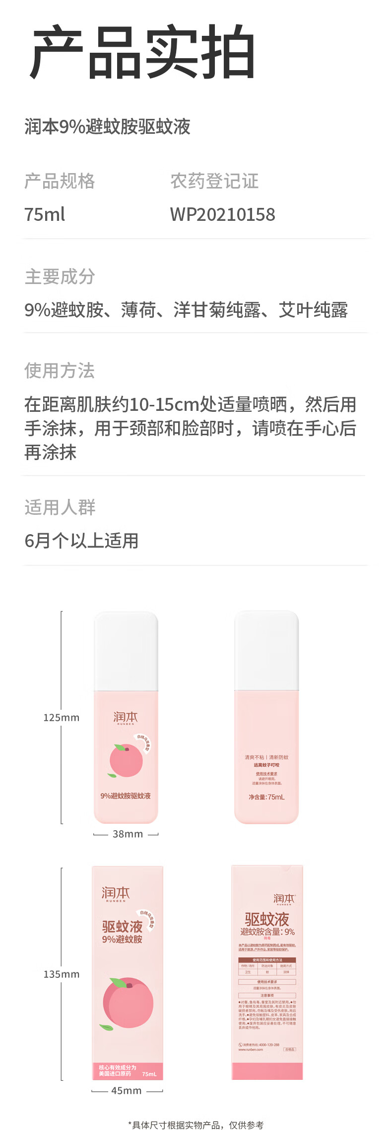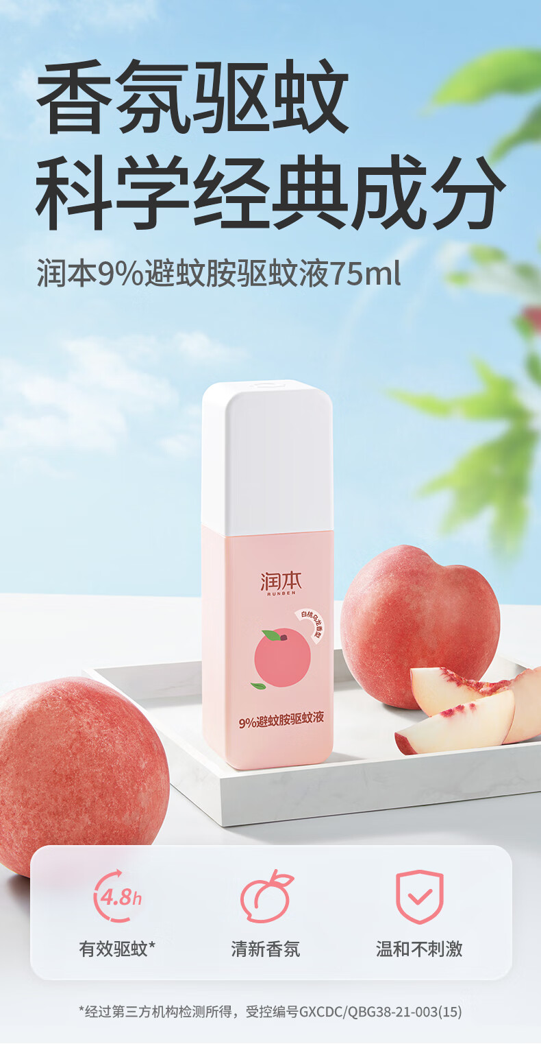 润本9%避蚊胺驱蚊液75ml(白桃乌龙)-2023版(单位:瓶) 粉色