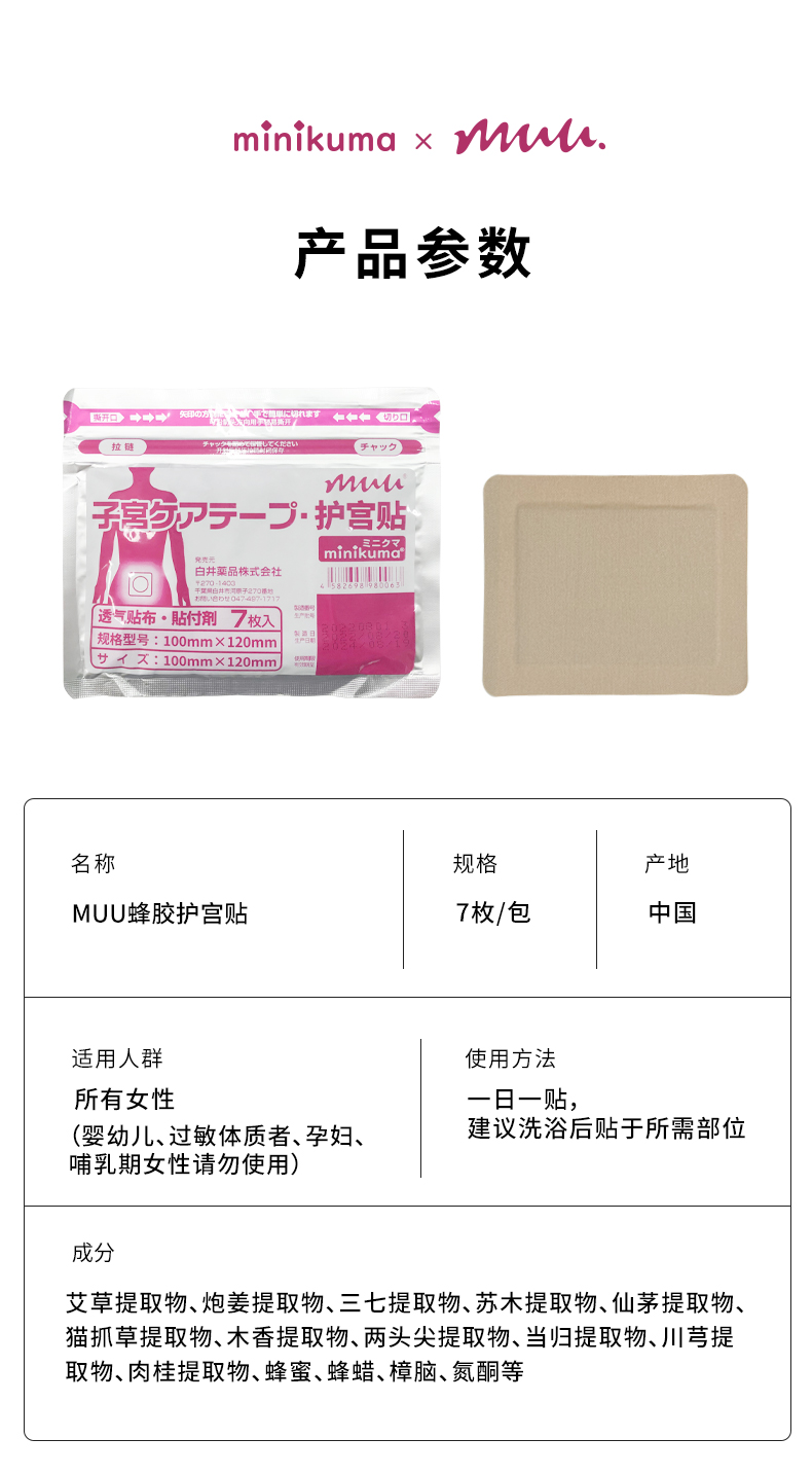 minikuma/迷你熊 蜂胶护宫贴 7枚/包 枫叶色