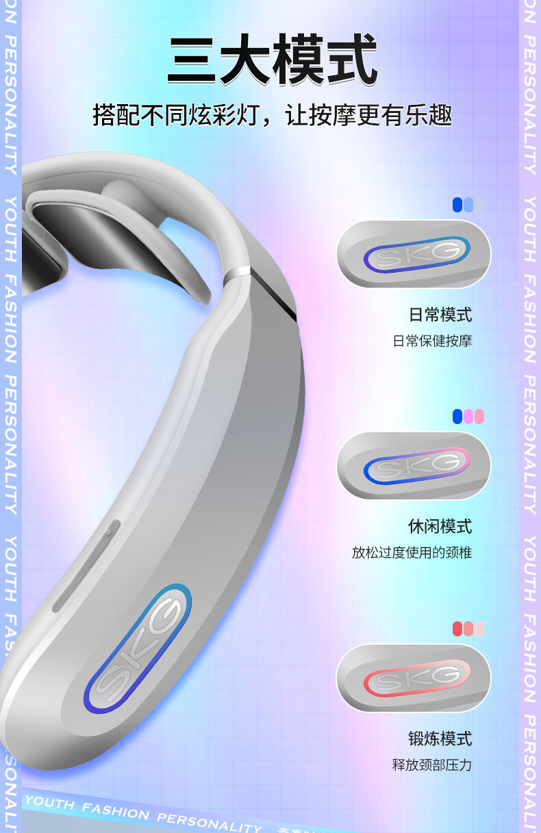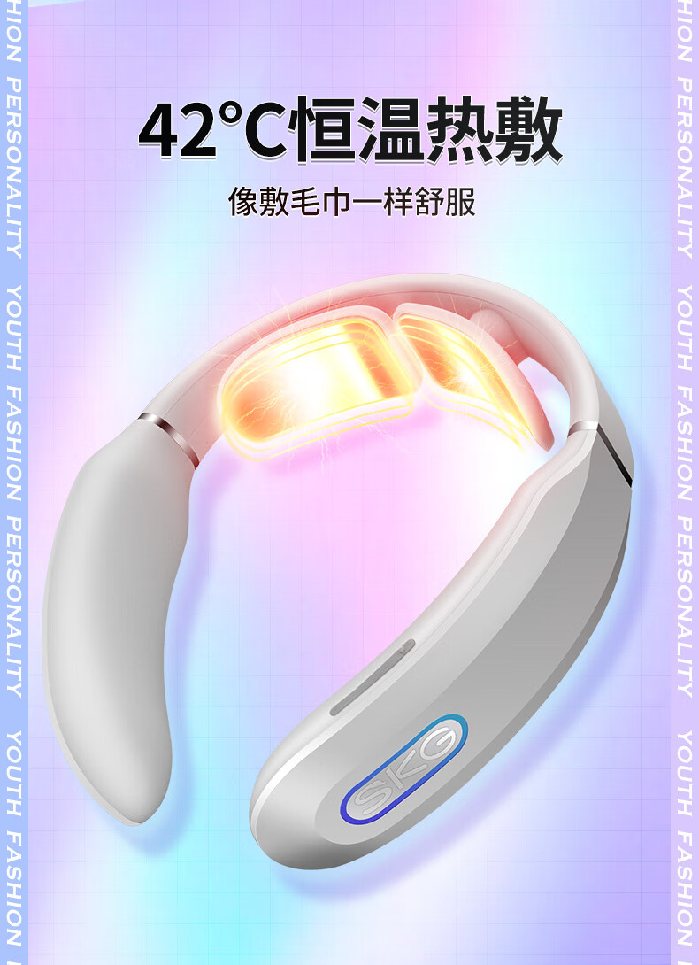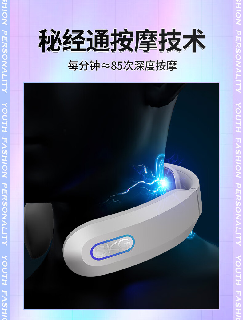 SKG颈椎按摩器 颈部按摩仪 脖子劲部肩颈护颈仪热敷 K3 浅灰色