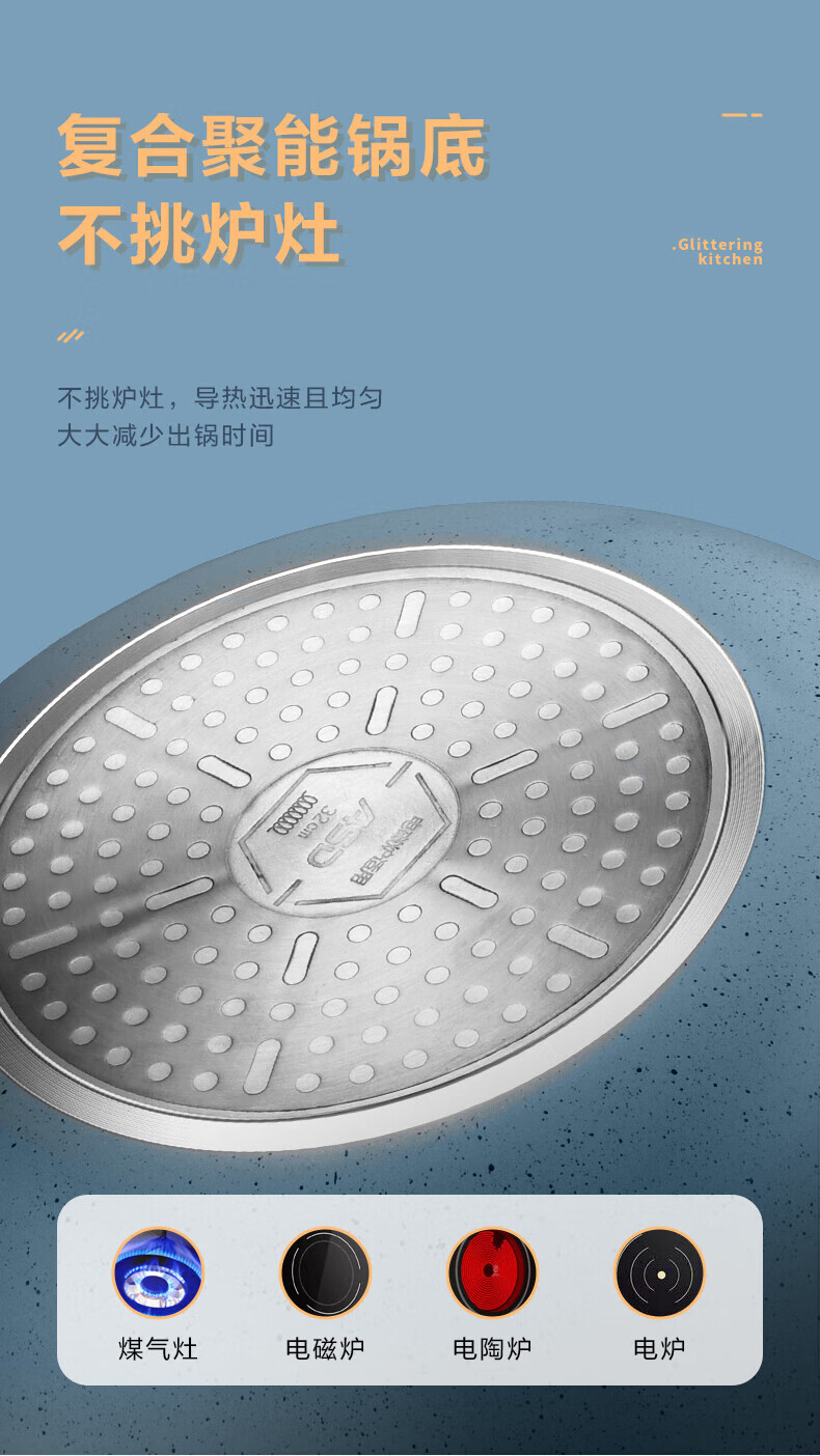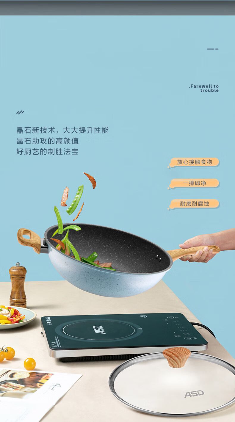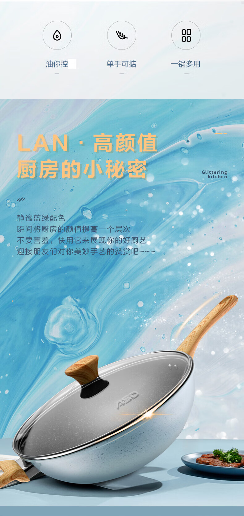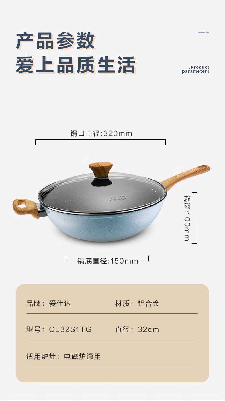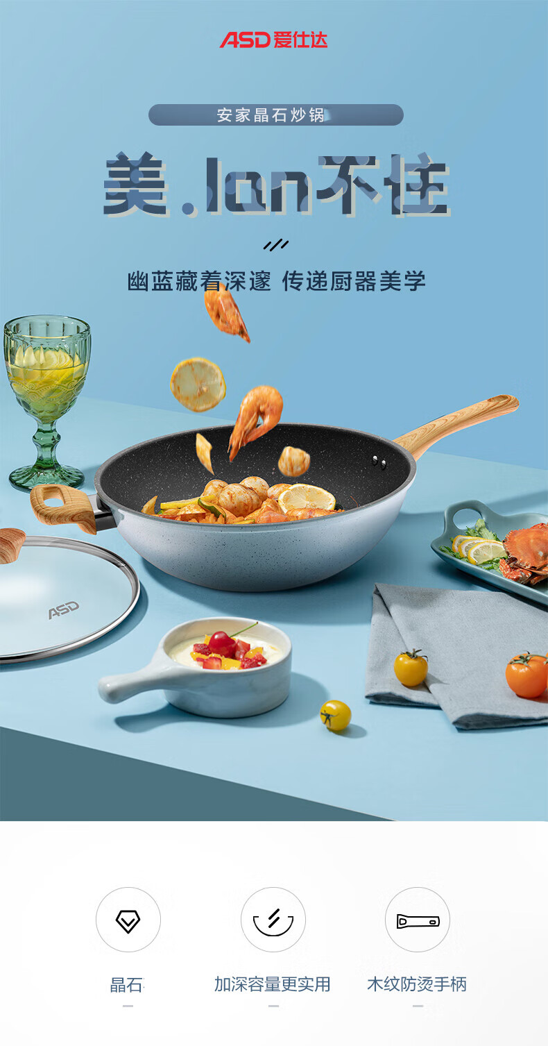爱仕达安家晶石不粘炒锅CL32S1TG(单位:个) 蓝色