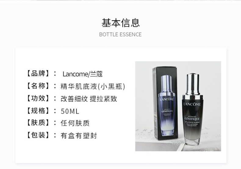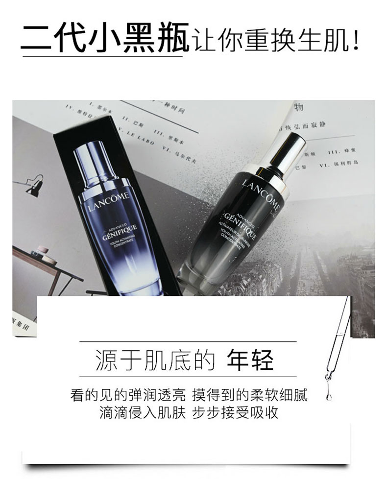 Lancome兰蔻小黑瓶精华肌底液50ml/瓶【全新第二代】 曜石黑