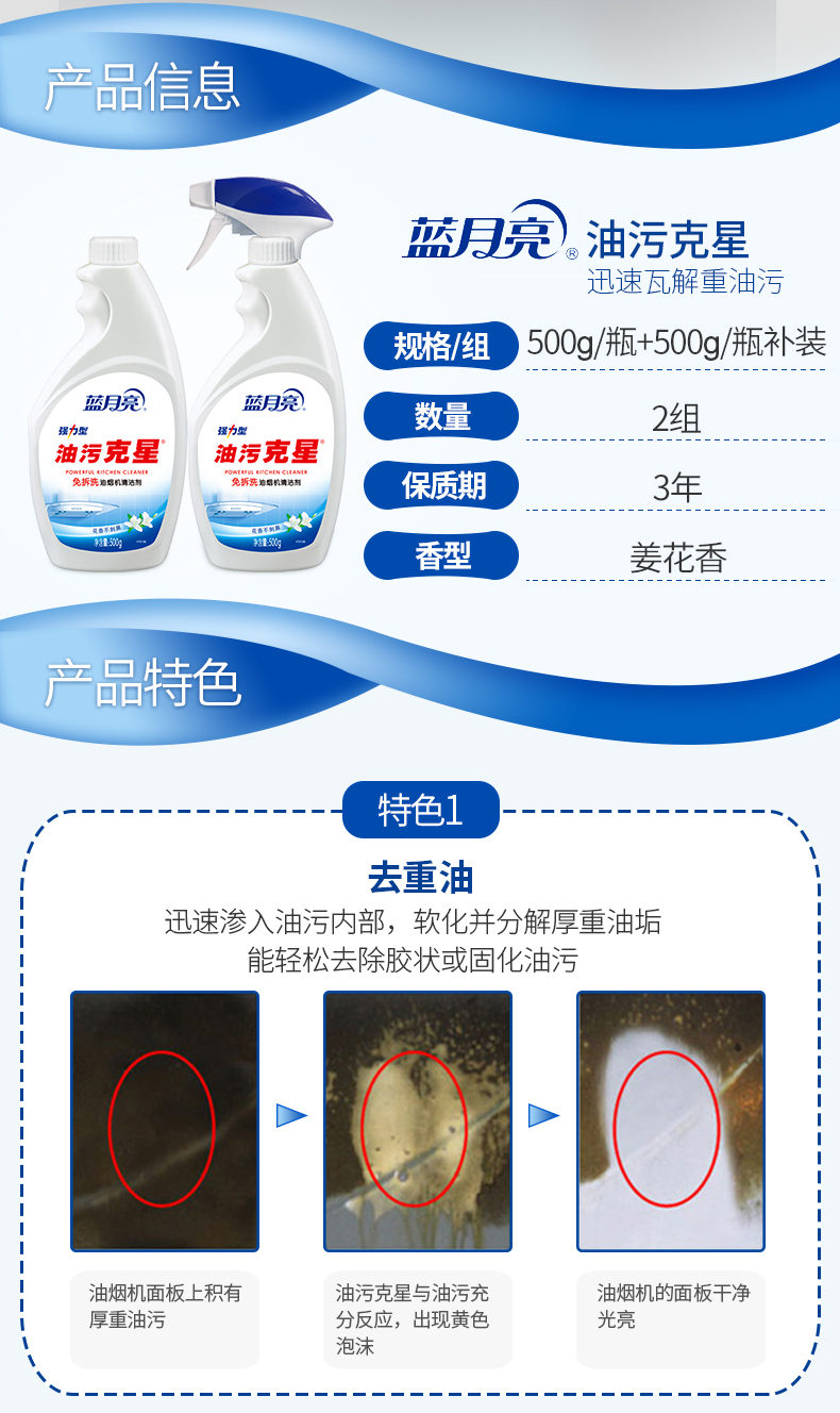 蓝月亮油污克星组合:强力型油污克星500g*2+强力型油污克星500g瓶补*2 10001035 套 白色