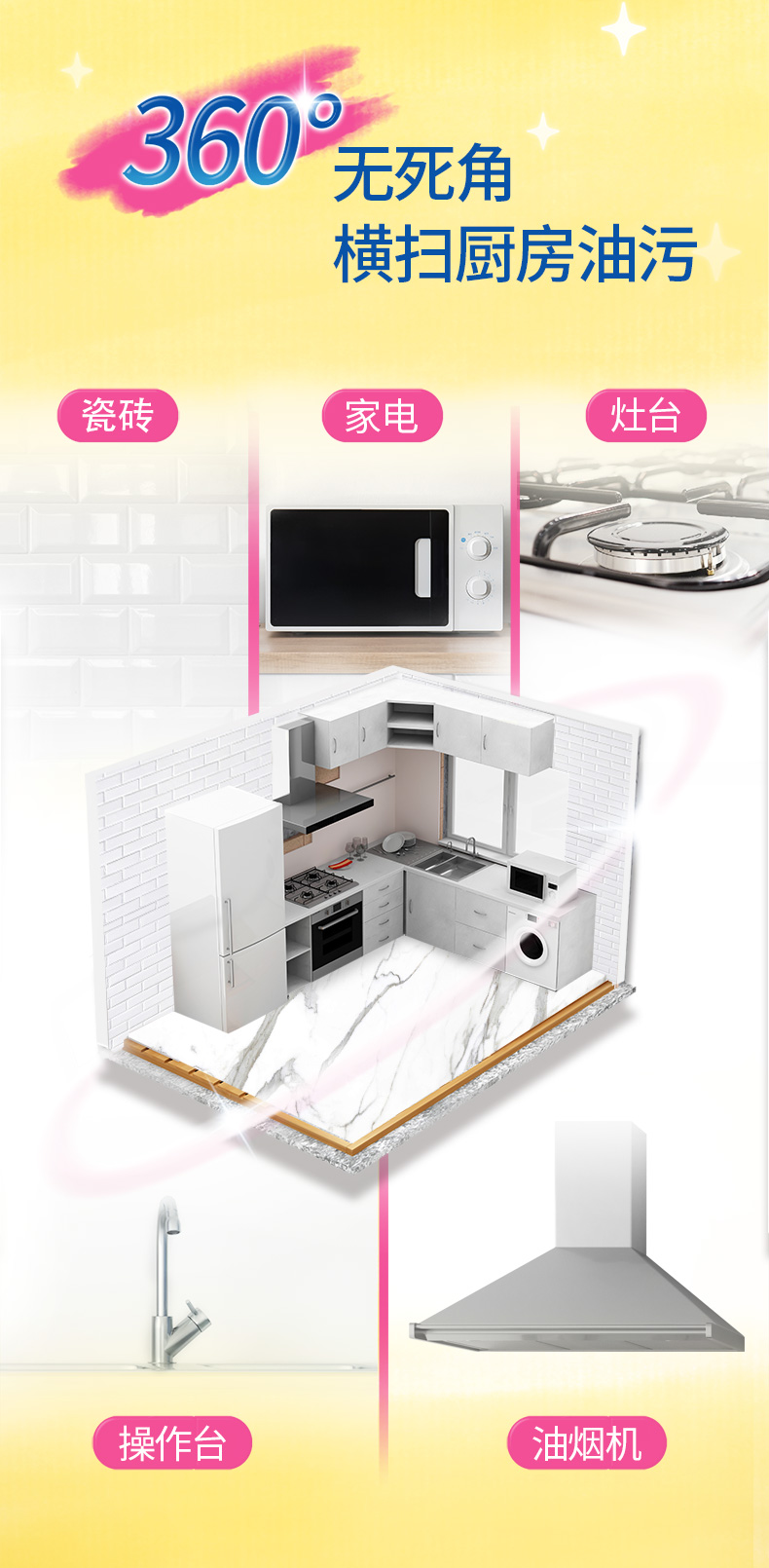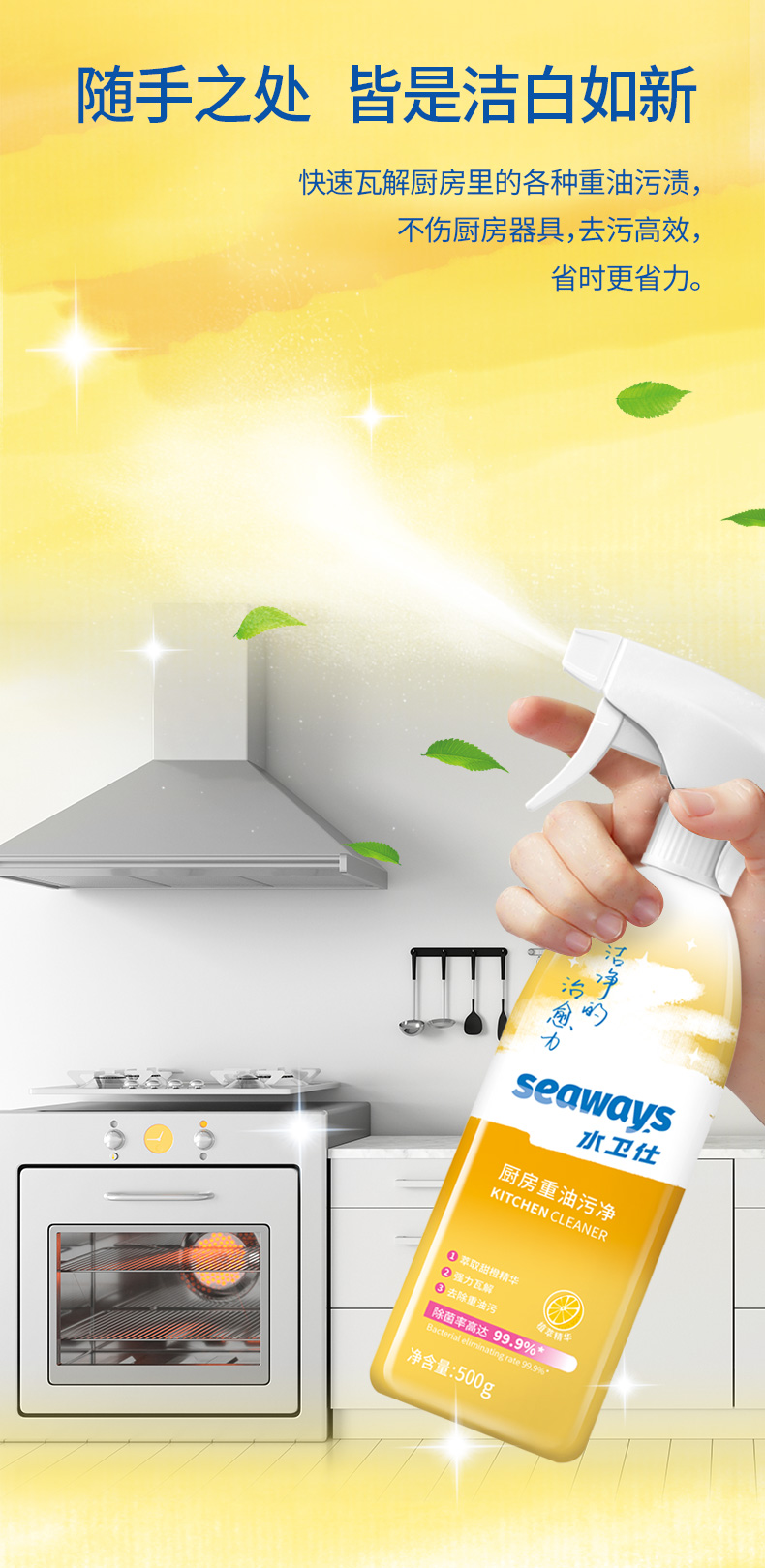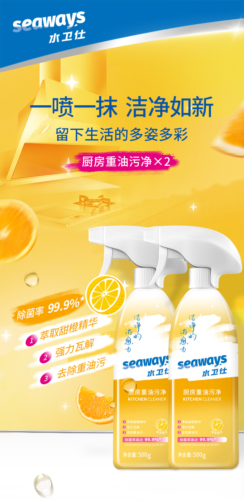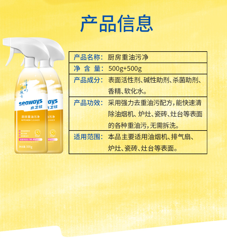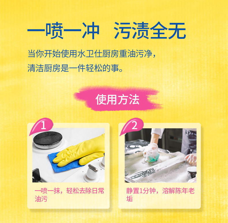 水卫仕厨房重油污净500g×2瓶 香槟黄
