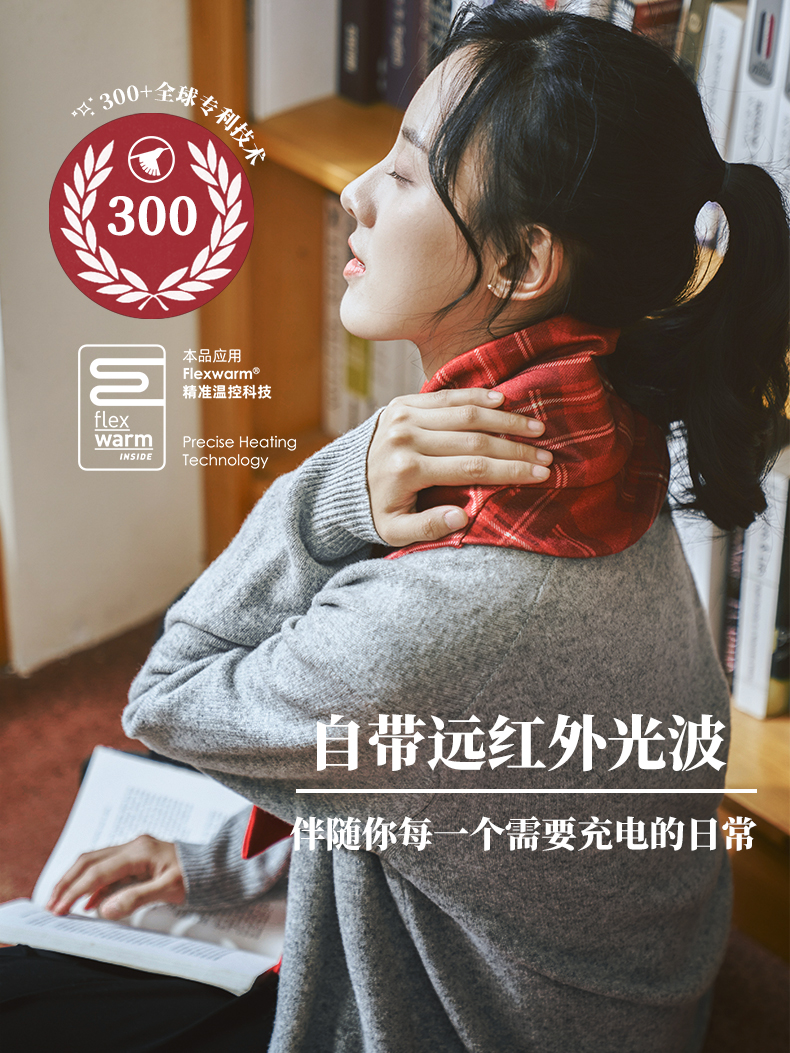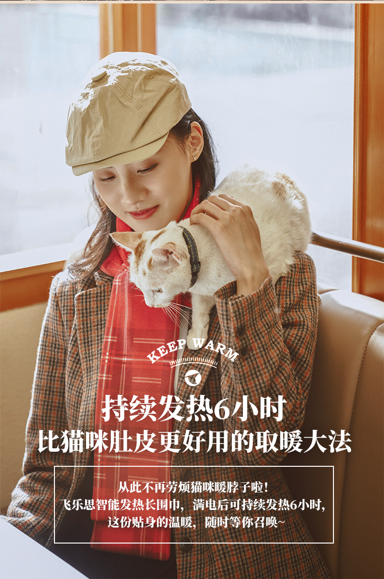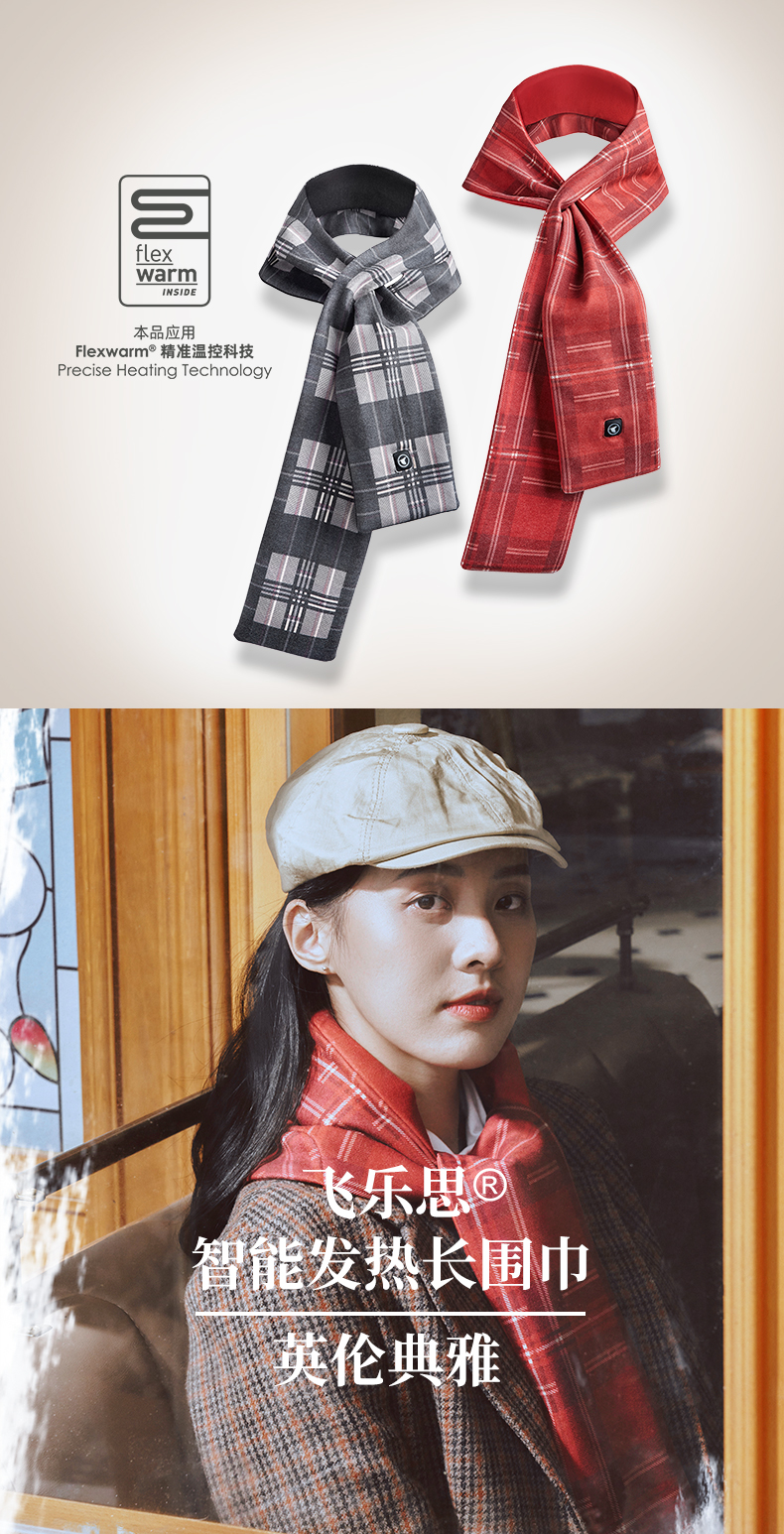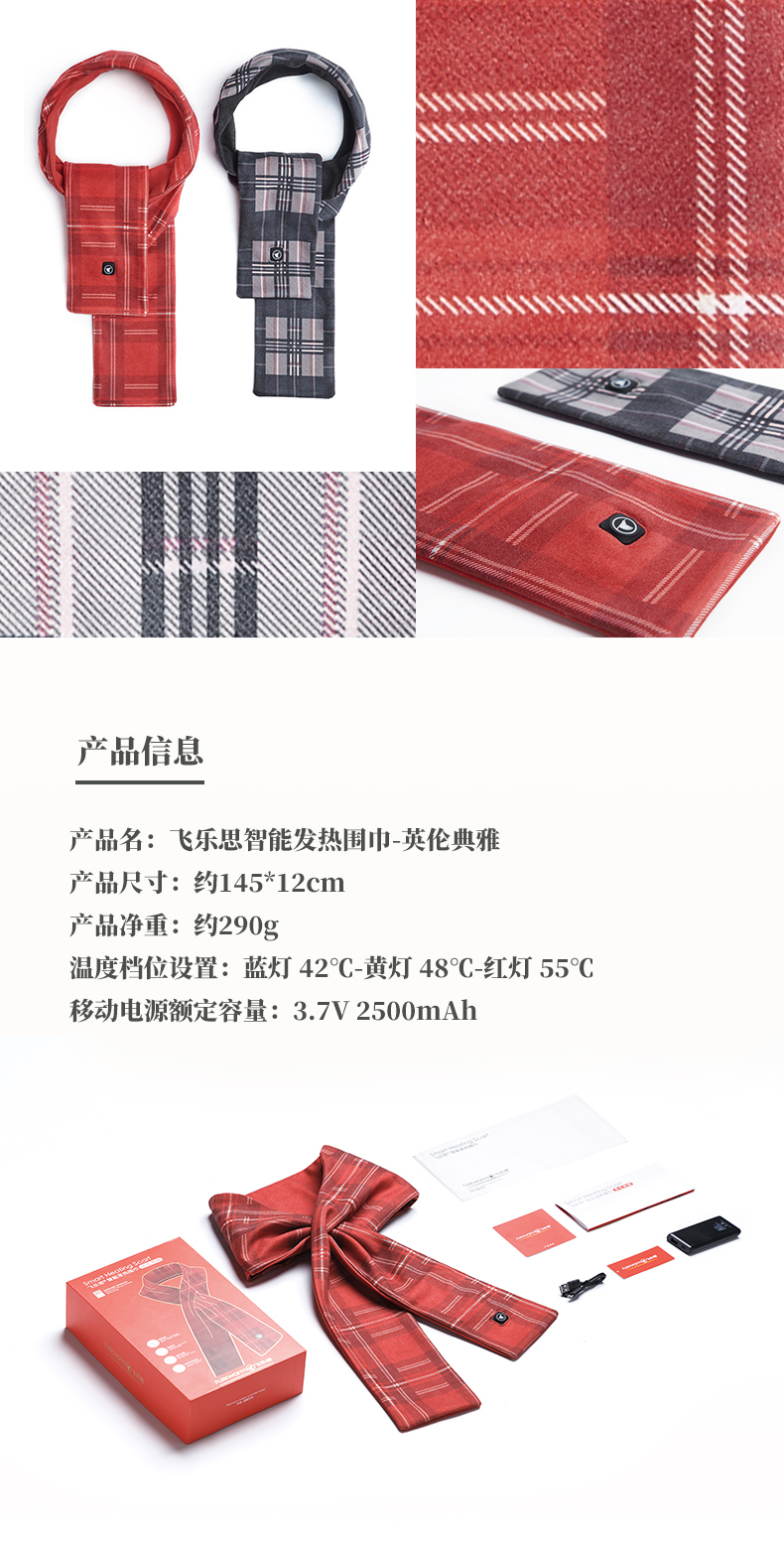 飞乐思智能电发热围巾女男秋冬英伦百搭长款保暖加厚电热围脖 英伦典雅-红